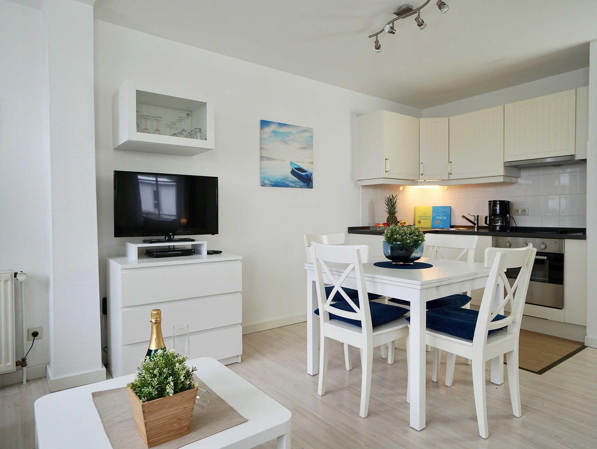 Das gemütlich eingerichtete Ferienappartement Mönchgut (A) bietet auf 44 m² eine moderne Unterkunft für bis zu 4 Gäste. Es verfügt über einen Wohn-Schlafraum mit Doppelbett und einem Schlafsofa für weitere zwei Gäste. Entspannen Sie vor dem Flachbild-TV oder ziehen Sie sich mit einem guten Buch in den bequemen Lesesessel in den integrierten Wintergarten zurück.Der WLAN-Zugang und ein SodaStream steht Ihnen kostenfrei zur Verfügung. Die hübsche Landhausküche ist mit allem ausgestattet, um Ihre Mahlzeiten zuzubereiten. Der Essbereich ist ebenfalls in diesem Wohn-Schlafraum. Zur Wohnung gehört ein helles Tageslicht-Duschbad. Ein Fön gehört ebenfalls zur Ausstattung. Ein Kinderreisebett (bis zwei Jahre) kann bei Bedarf bereit gestellt werden.