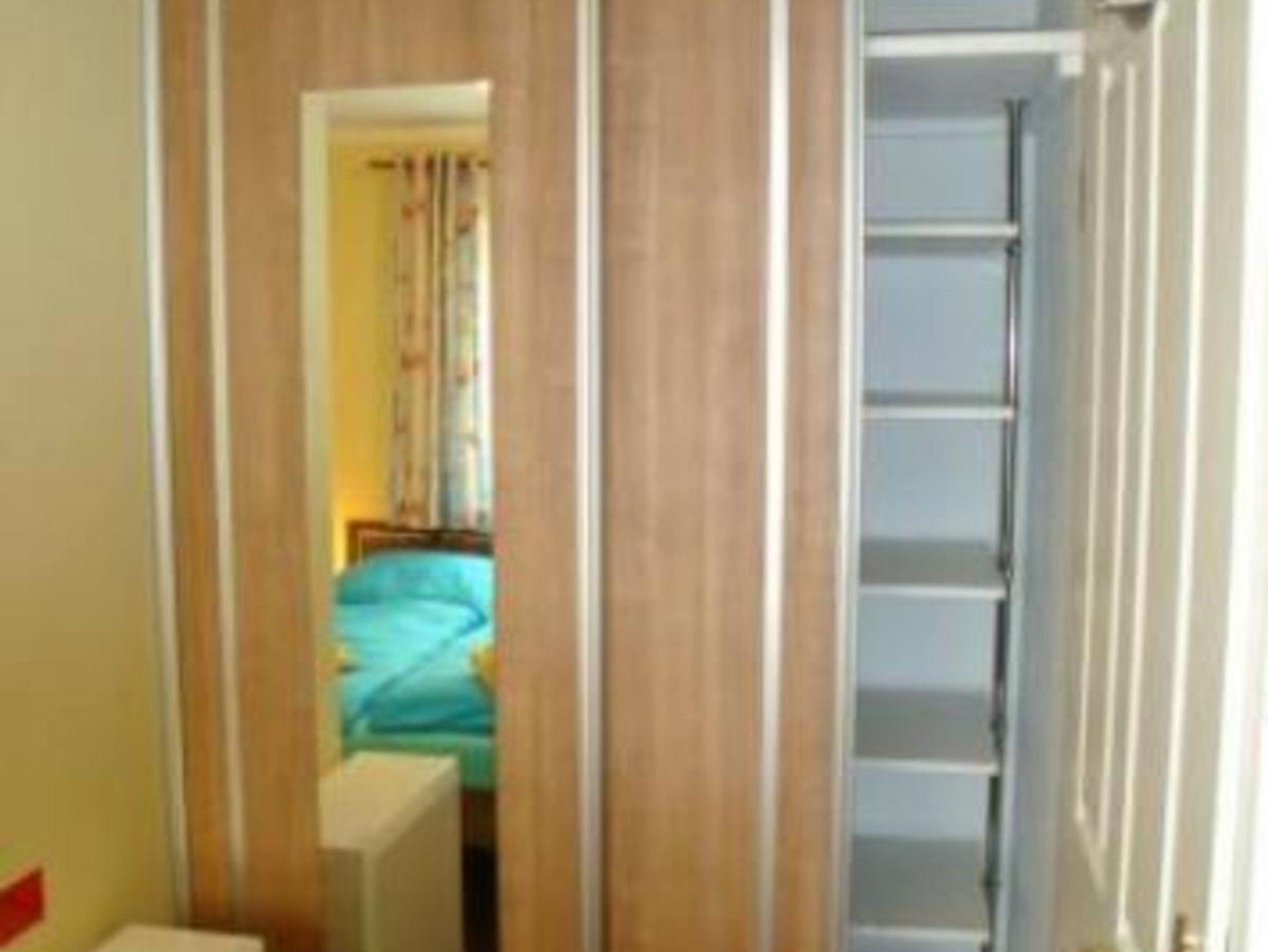 Im separaten Schlafzimmer ist das Doppelbett und ein geräumiger Wandschrank.