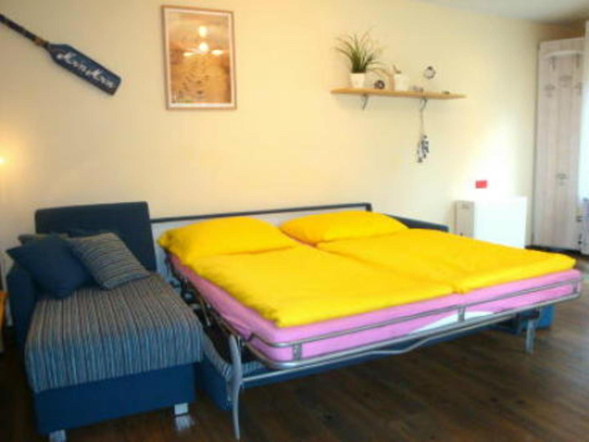 Ferienwohnung 1 verfügt über eine Aufbettung für 2 Personen im Wohnzimmer in Form einer Klappcouch mit Madratze.