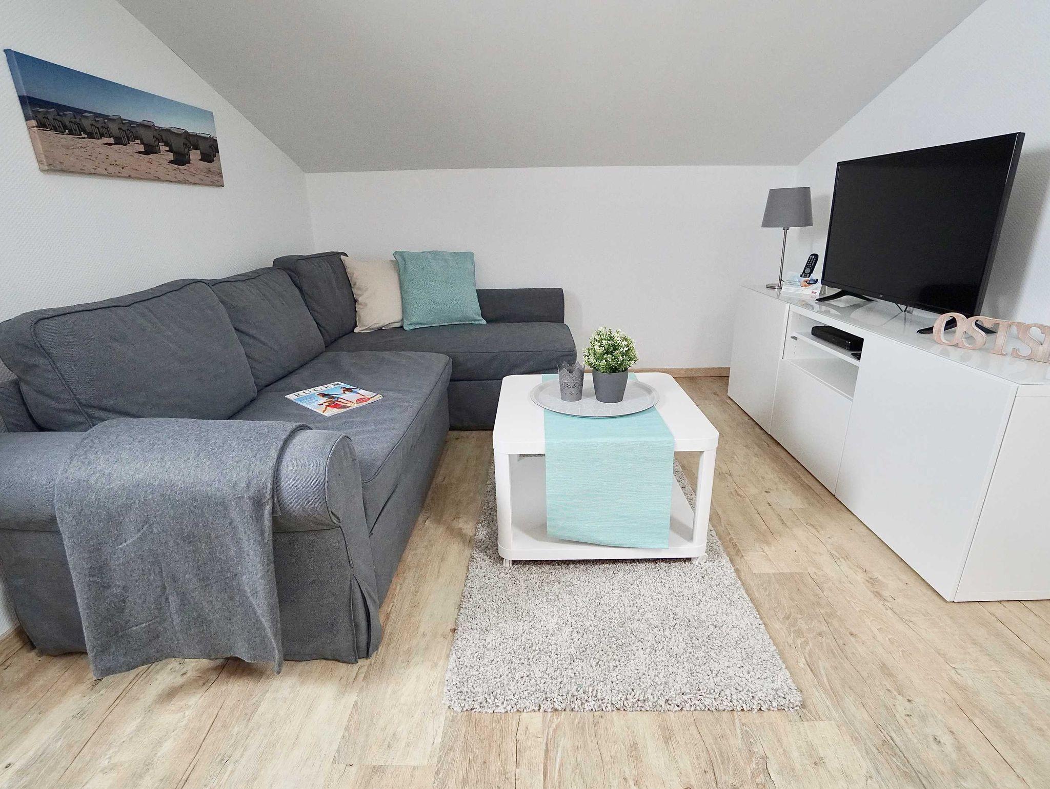 Dieses große Ferienappartement bietet Ihnen mit seinen 85- 90 m² sehr bequem Platz für bis zu sechs Personen. Das Appartement Wittow liegt im Dachgeschoss und erstreckt sich über zwei Ebenen. Somit haben 6 Urlaubsgäste sehr großzügig Platz zur Erholung. Das Haus verfügt über keinen Aufzug. Der WLAN-Zugang und ein SodaStream steht Ihnen kostenfrei zur Verfügung. Auf der unteren Ebene finden Sie einen großzügigen Wohnbereich, der über ein Schlafsofa verfügt, auf dem je 1-2 Personen einen Schlafplatz finden können oder einfach vor dem Flachbild-Fernseher entspannen können. Direkt von hier haben Sie einen Zugang zum schönen gemütlichen Balkon, der zu dieser Wohnung gehört.