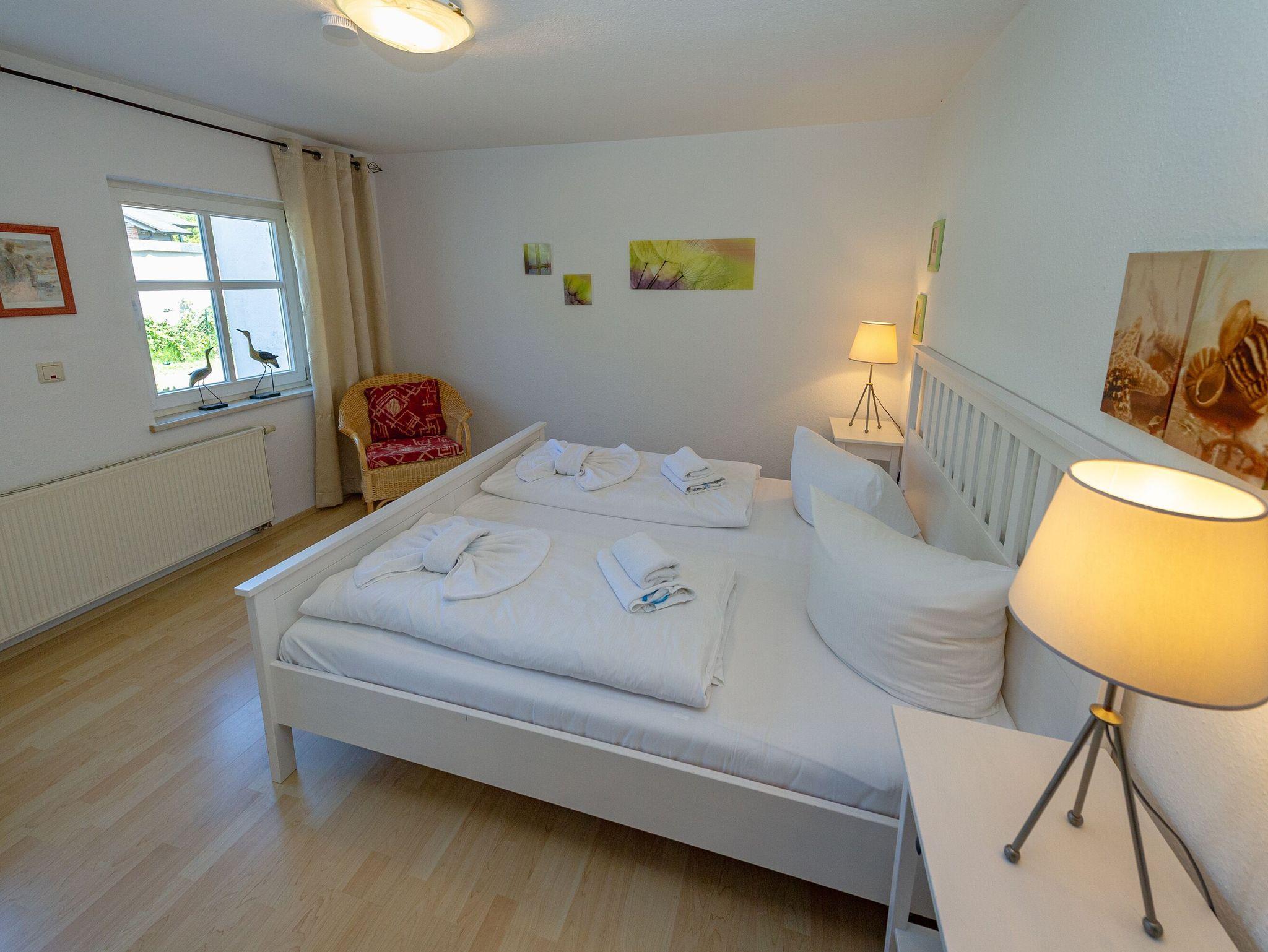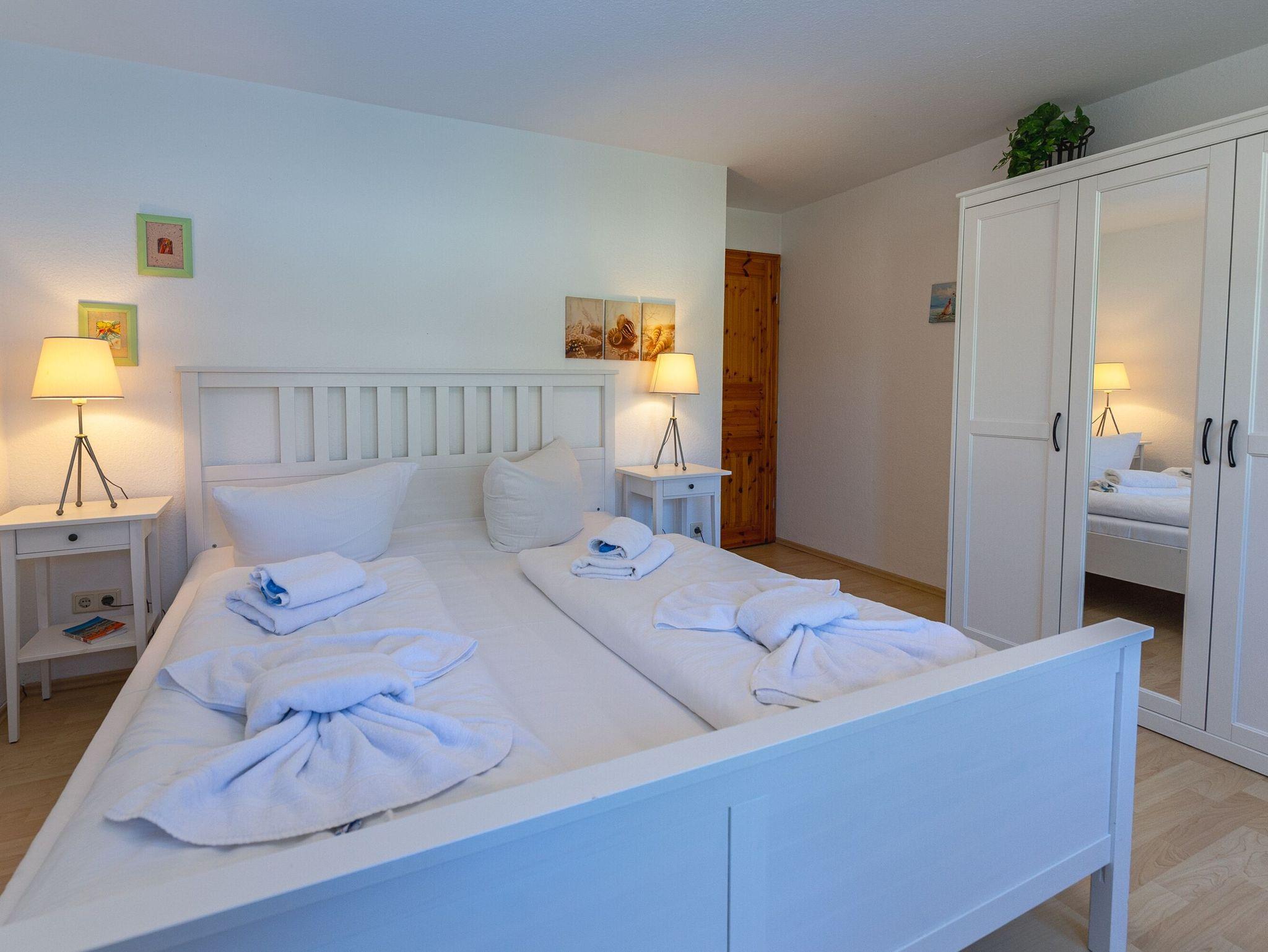 Die Fewo verfügt über drei separate Schlafzimmer mit jeweils einem Doppelbett. Eines der Schlafzimmer ist ein Durchgangszimmer zum zweiten Schlafzimmer.