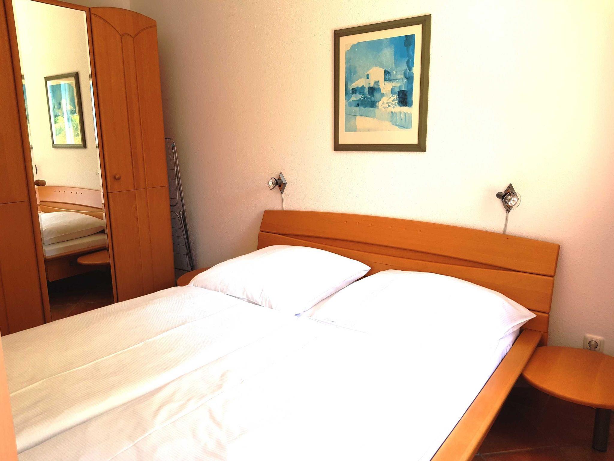 • Schlafzimmer mit Doppelbett sowie Kleiderschrank.