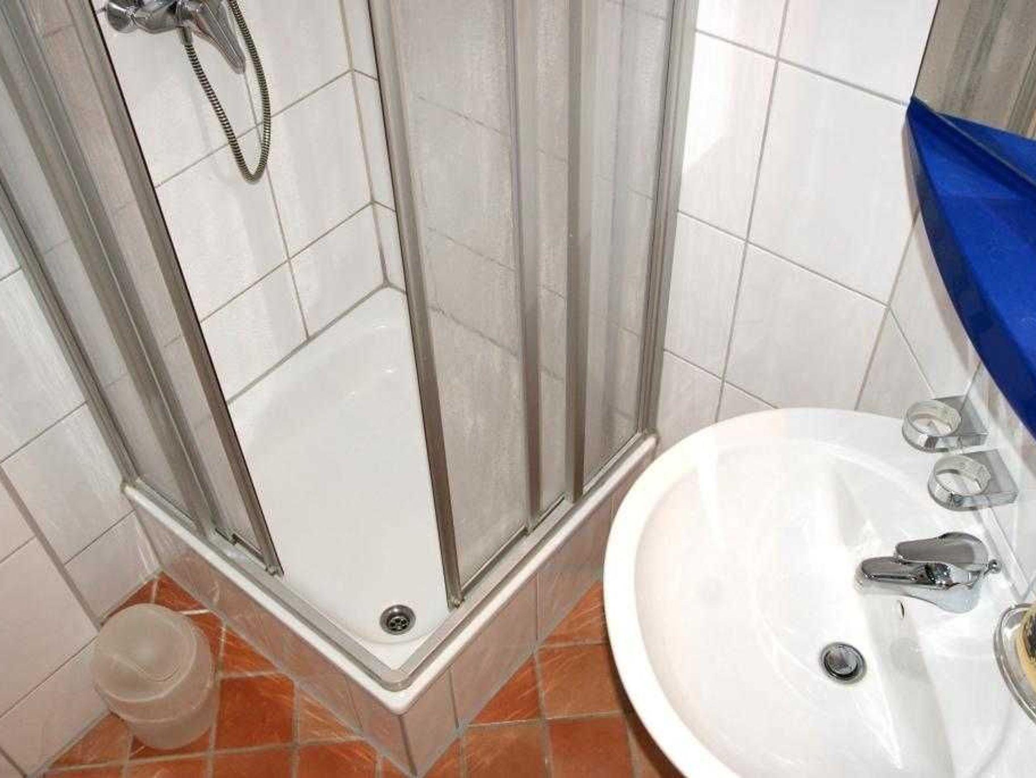 • Bad mit Dusche und WC.