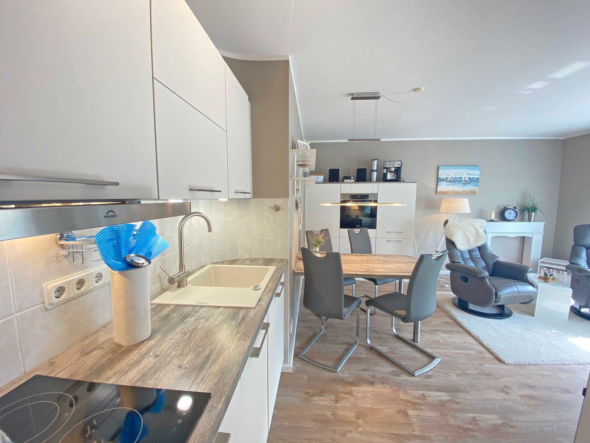 Die liebevoll und hochwertig eingerichtete 2-Zimmer-Nichtraucher-Ferienwohnung 01 im Hochparterre des ?Haus Holstein? bietet auf ca. 38 qm für max. 2 Personen einen komfortablen Wohnbereich mit 2 Relax-Sesseln aus Leder, eine Radio/CD-Anlage mit USB-Anschluss sowie einem Smart-TV inkl. Soundsystem. Für ein gemütliches Ambiente sorgen eine Stehlampe und die Kaminumrandung. In den Wohnbereich integriert verfügt die Wohnung auch über eine kleine, voll ausgestattete Küchenzeile mit einem Backofen, einem 2 Zonen-Induktions-Kochfeld mit Dunstabzugshaube, einem Geschirrspüler, einer Kühl-/Gefrierkombination sowie einen Sitzbereich. Genießen Sie Ihren Kaffee aus der Filterkaffeemaschine oder aus dem De Longhi Kaffeeautomat mit frisch gemahlenen Kaffeebohnen. Ein Wasserkocher, ein Eierkocher und ein Toaster ergänzen die Ausstattung. Vom Wohnbereich aus gelangen Sie auf Ihren Balkon (Ostausrichtung) mit kleiner Sitzgruppe, auf dem sich auch, falls gewünscht, der Sonnenschirm oder der Wäscheständer aufstellen lassen. Für einen erholsamen Schlaf steht Ihnen im Schlafzimmer ein 1,80m x 2,00m - Bett mit verstellbarem Lattenrost, zwei Nachttischablagen, eine Verdunklungsmöglichkeit sowie ein Insektenschutzgitter zur Verfügung. Ihre Kleidung verstauen Sie gern im großen Kleiderschrank mit Spiegeltür. Das Bad ist mit einem WC, einer Dusche, einem Waschtisch und auch einem kleinen Fenster ausgestattet. Hier finden Sie neben zwei kleinen Badschränken auch einen Fön. Zur Wohnung gehört ein kostenfreier PKW-Stellplatz Nr. 01, der sich am Haus befindet. Im Keller des Gebäudes stehen für Sie eine Waschmaschine und ein Trockner gegen Gebühr zur Verfügung. Auch für Ihre Fahrräder finden Sie geschützte Abstellmöglichkeiten. Haustiere sind nicht erlaubt. Die Erstausstattung eines Wäschepaketes (komplette Bettwäsche, 1 Duschhandtuch, 2 kleine Handtücher) können Sie bis 14 Tage vor der Anreise gegen einen Aufpreis dazu buchen oder durch eigene ergänzen. Ab 2 gebuchten Paketen erhalten Sie einmalig 1 Geschirrtuch und einen Duschvorleger dazu.