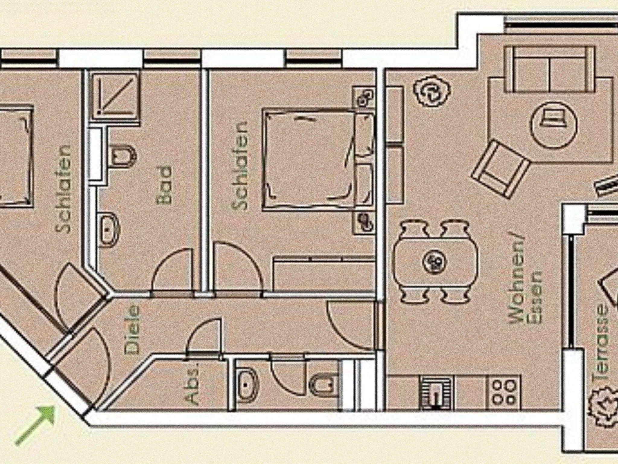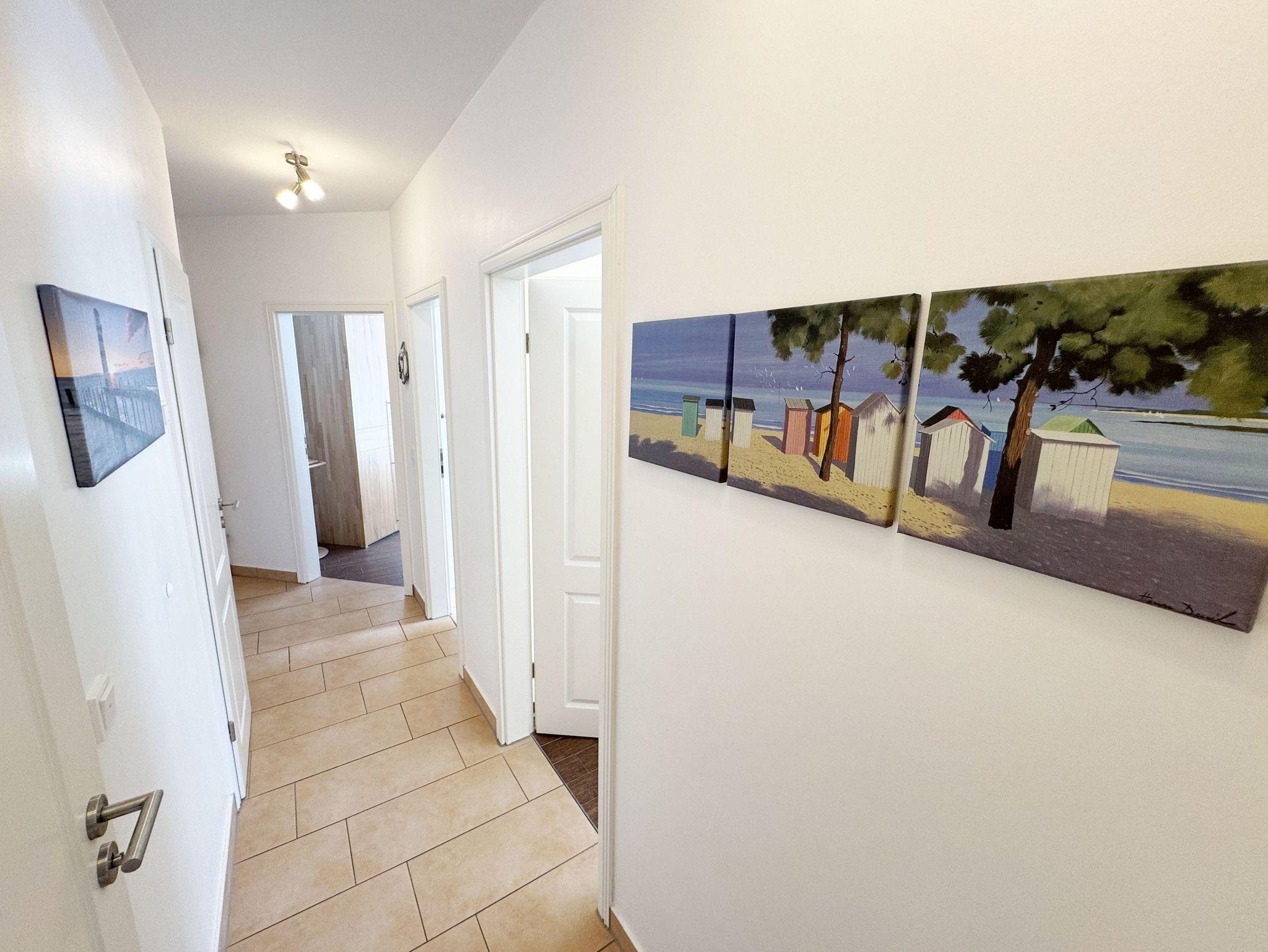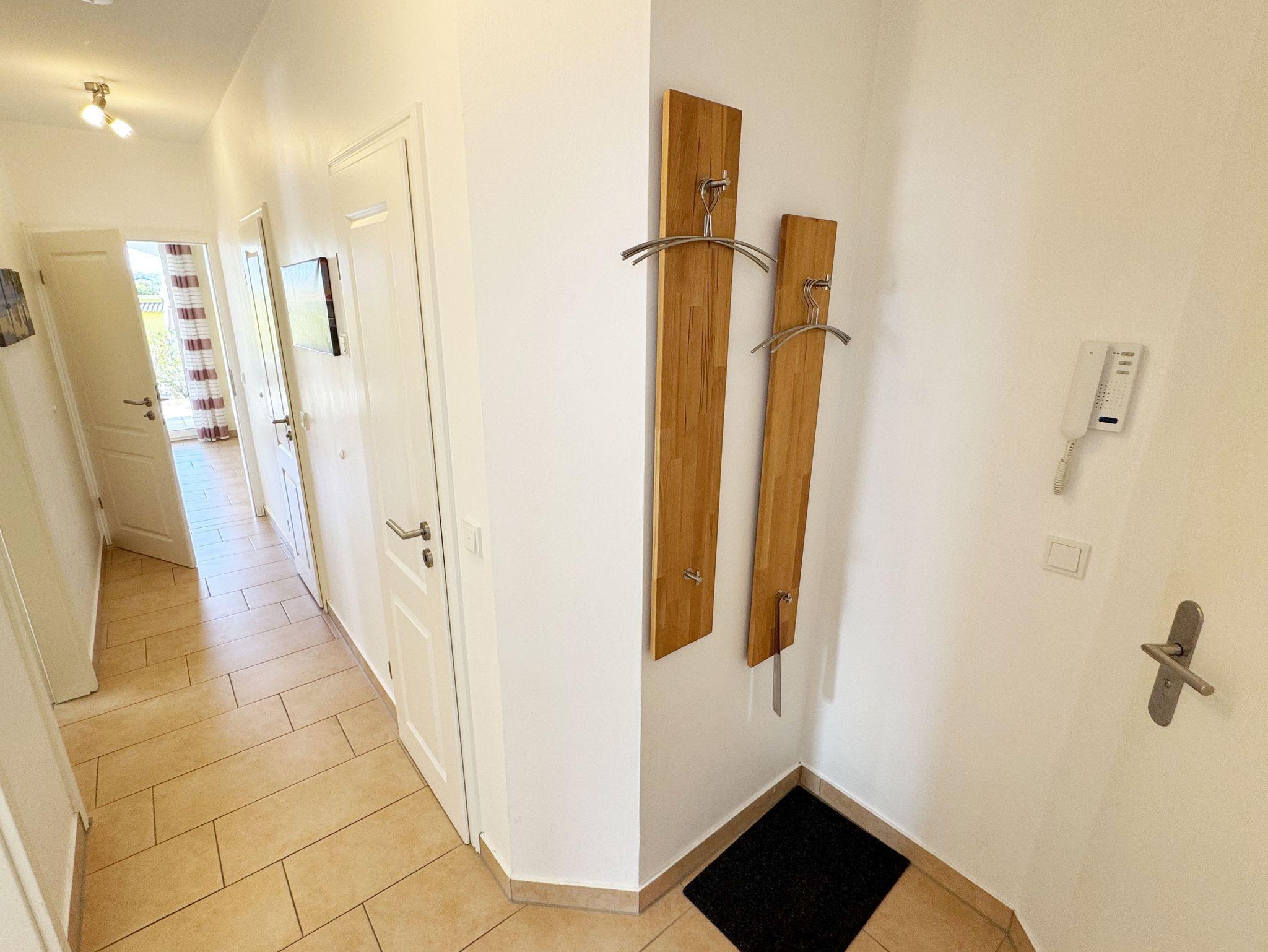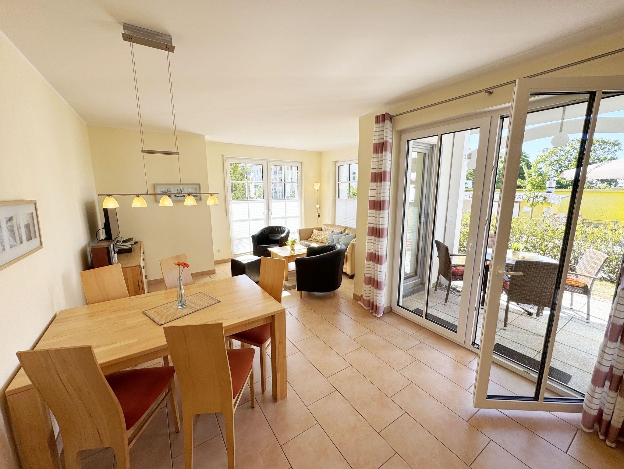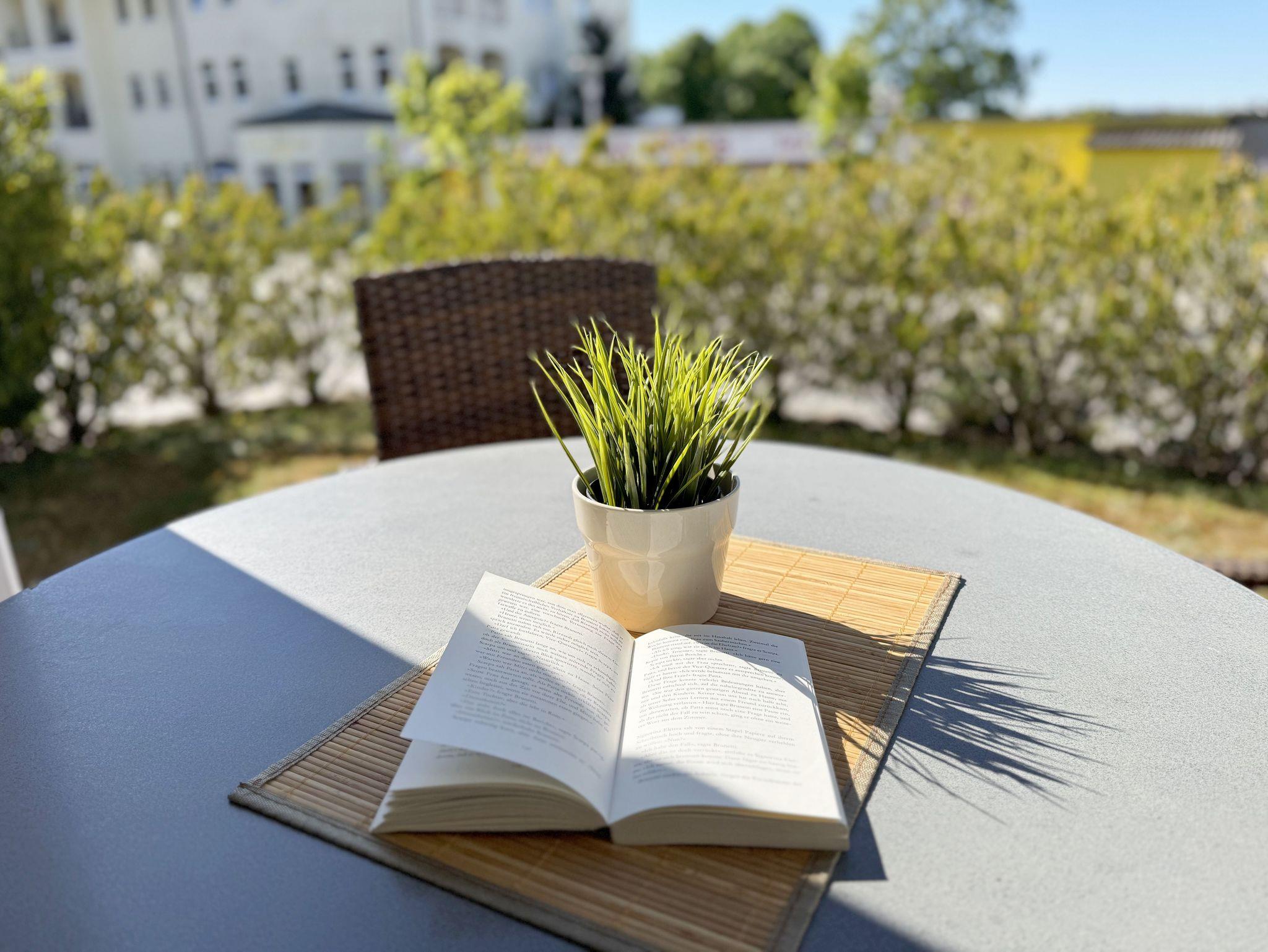Die modern und gemütlich eingerichtete 3-Raumwohnung Nr. 01 (Nichtraucherwohnung) befindet sich im Erdgeschoss und umfasst eine Wohnfläche von ca. 70 qm und bietet ausreichend Platz für 2 bis 5 Erwachsene. Alle Fenster sind zur Verdunkelung mit Rollladen versehen. Der Wohnbereich ist mit einem Ledersofa mit integriertem Vollbett (Liegefläche 1,50m x 2,00m), 2 Sesseln, Smart-TV, Heimkinoanlage und einer Küchenzeile ausgestattet. Die Küchenzeile ist komplett eingerichtet und beinhaltet Ceranfeld, Backofen, Geschirrspüler, Mikrowelle, Kühlschrank mit Gefrierfach und diversen Küchenutensilien. Ein Essplatz mit einem Tisch und 5 Stühlen ist vorhanden. Das Bad verfügt über eine Dusche (90cm x 90cm), WC, Waschbecken, Kosmetikspiegel, Handtuchtrockner und einem Haar Fön. Ein Gäste-WC mit Waschbecken rundet den Sanitärbereich ab. Die beiden Schlafzimmer bestehen jeweils aus einem Doppelbett (2 x 0,90 m x 2,00m), verstellbare Lattenroste mit Nachttischkonsolen und einem Kleiderschrank (1,50m breit). In einem der Schlafzimmer befindet sich ein Flachbildschirm. In allen Räumen sorgt eine Fußbodenheizung für angenehme Wärme. Die zu der Wohnung gehörende Terrasse mit Terrassentisch, Korbsesseln mit Auflagen zeigt Richtung Süd/West und lädt bei Sonnenschein zum Verweilen ein. An die Terrasse grenzt ein kleiner mit umlaufenden Sträuchern dicht eingefriedeter Garten zur Alleinbenutzung/Südlage. Ein eigener PKW-Stellplatz (Nr.01) ist für Sie in der hauseigenen Tiefgarage (Einfahrtshöhe 1,90m) vorhanden, sowie eine Fahrradabstellmöglichkeit auf dem Areal und der in der Tiefgarage. Auch im Urlaub brauchen Sie in der Wohnung nicht auf einen Internetanschluss (WLAN/LAN) verzichten. Dieser ist für Sie inklusive! Ein Haustier ist in der Wohnung nicht erlaubt. Die Erstausstattung eines Wäschepaketes (komplette Bettwäsche, 1 Duschhandtuch, 1 kleines Handtuch) können Sie bis 14 Tage vor Anreise gegen einen Aufpreis dazu buchen oder durch eigene ergänzen. Ab 2 gebuchten Paketen erhalten Sie einmalig 1 Geschirrhandtuch und 1 Duschvorleger hinzu.