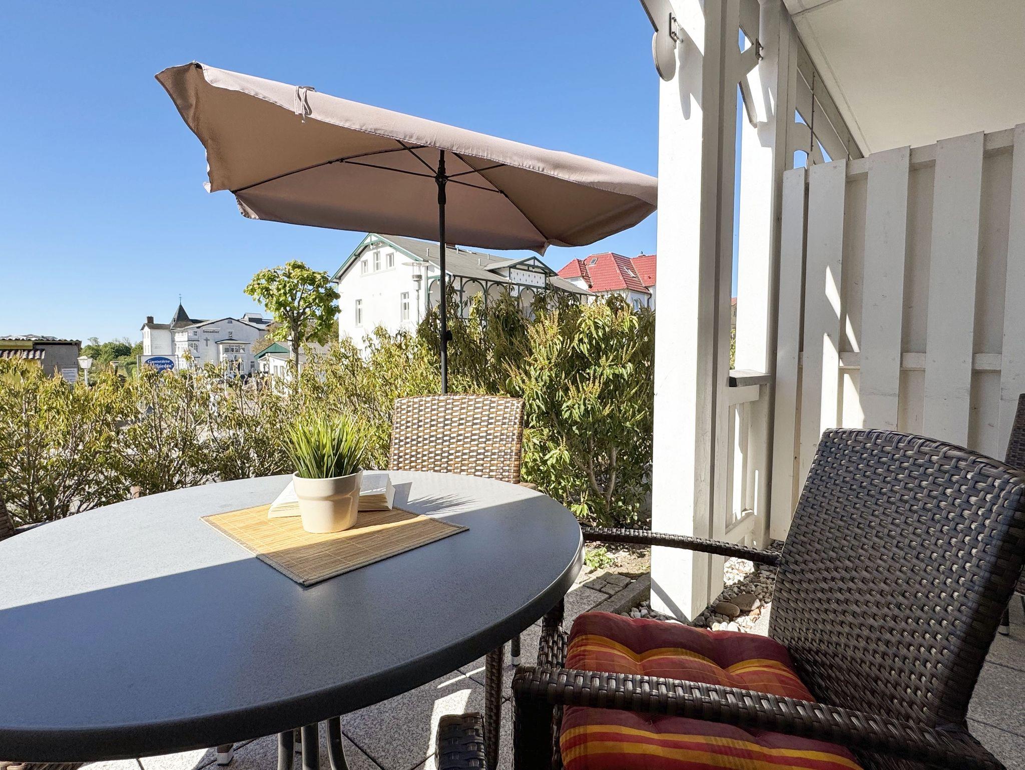 Hochwertige Ferienwohnungsanlage mit großem Komfort - Mitten in Sellin, befindet sich die Villa Annika mit Ihren 13 Komfortferienwohnungen, sowie einer hauseigenen Tiefgarage. Die Bäderarchitektur und die hervorragende Ausstattung erlauben Ihnen hier Urlaub auf hohem Niveau. Die Wohnung 01 befindet sich im Erdgeschoss und verfügt über eine eigene Terrasse mit Bestuhlung. Nur wenige Gehminuten von Ihnen entfernt befinden sich die Wilhelmstraße mit Geschäften, sowie die Seebrücke.