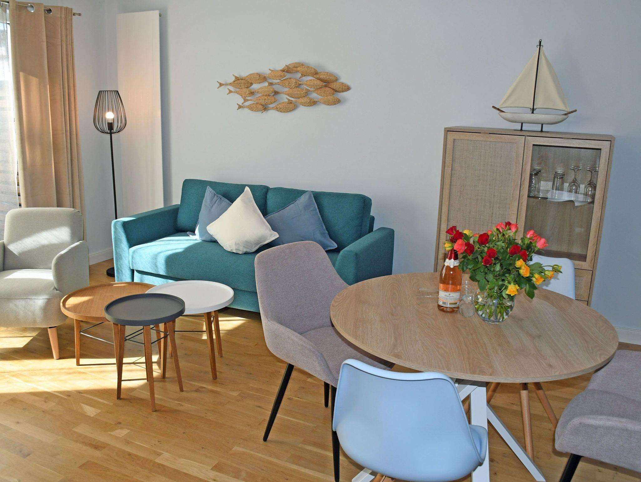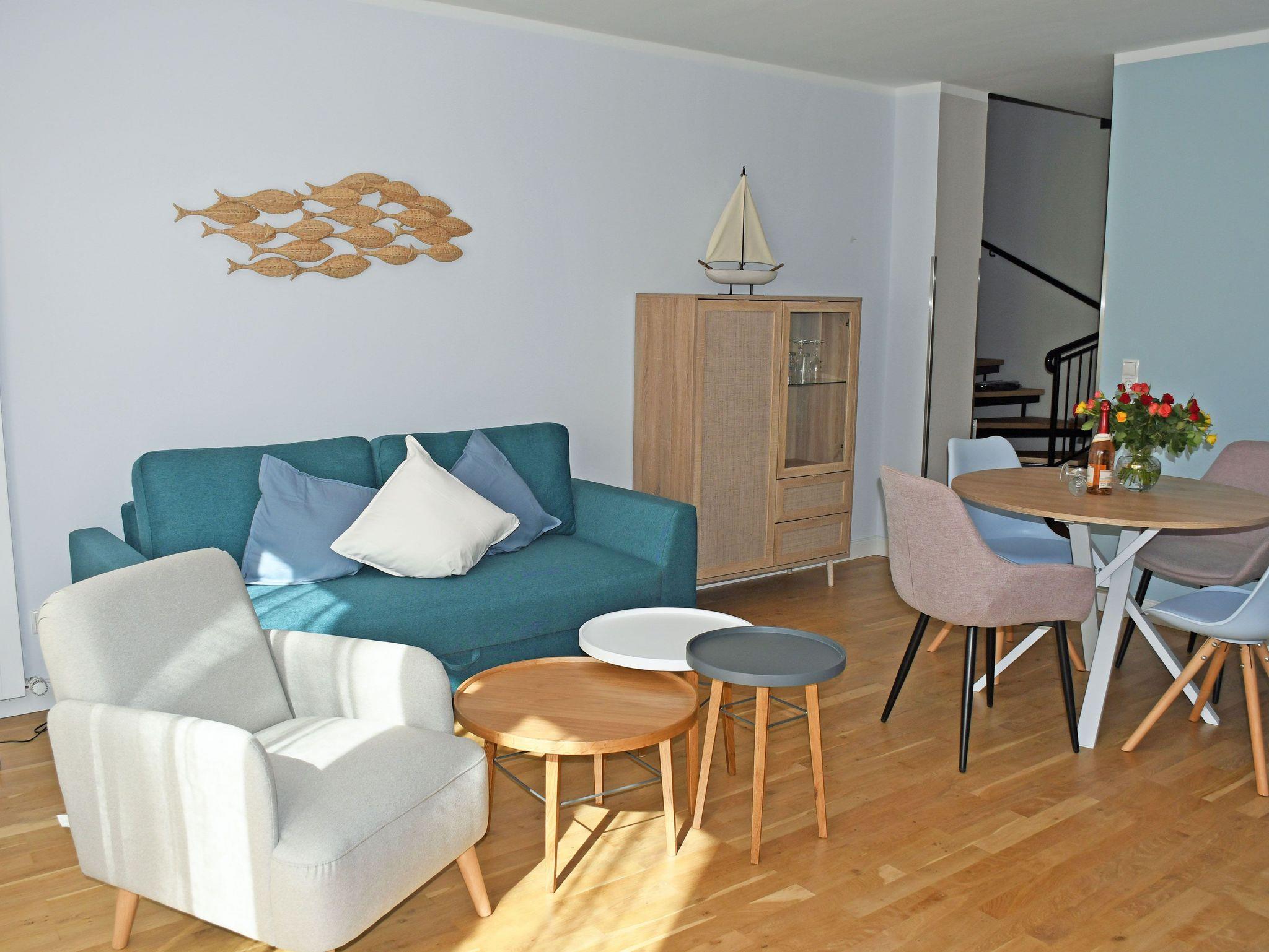 Unsere Maisonett-Ferienwohnungen bieten Platz für 5 Gäste und ein Kind bis 3 Jahre im Kinderreisebett, sie wurden 2022 komplett renoviert und neu im modernen nördlich maritimen Stil eingerichtet.