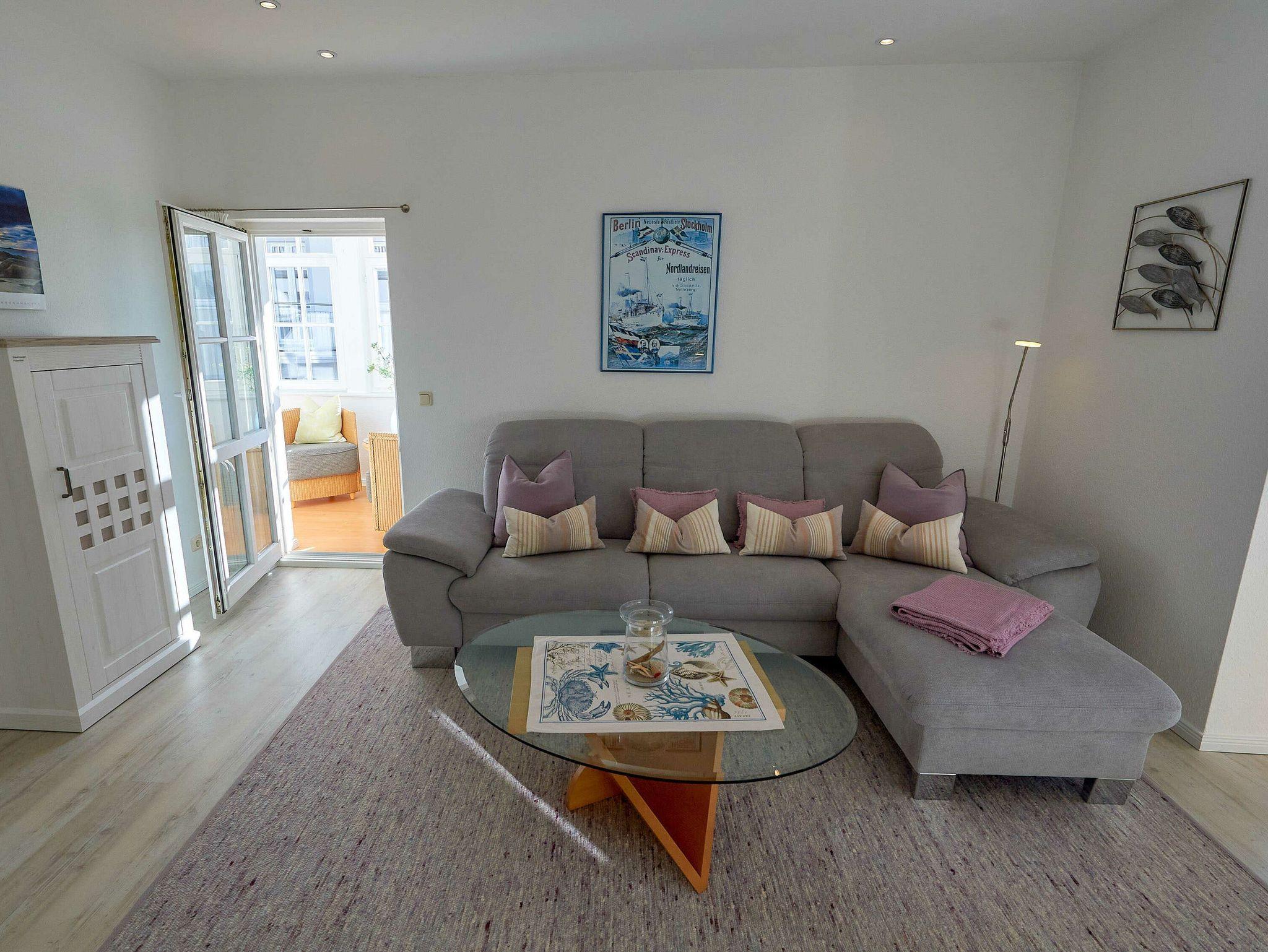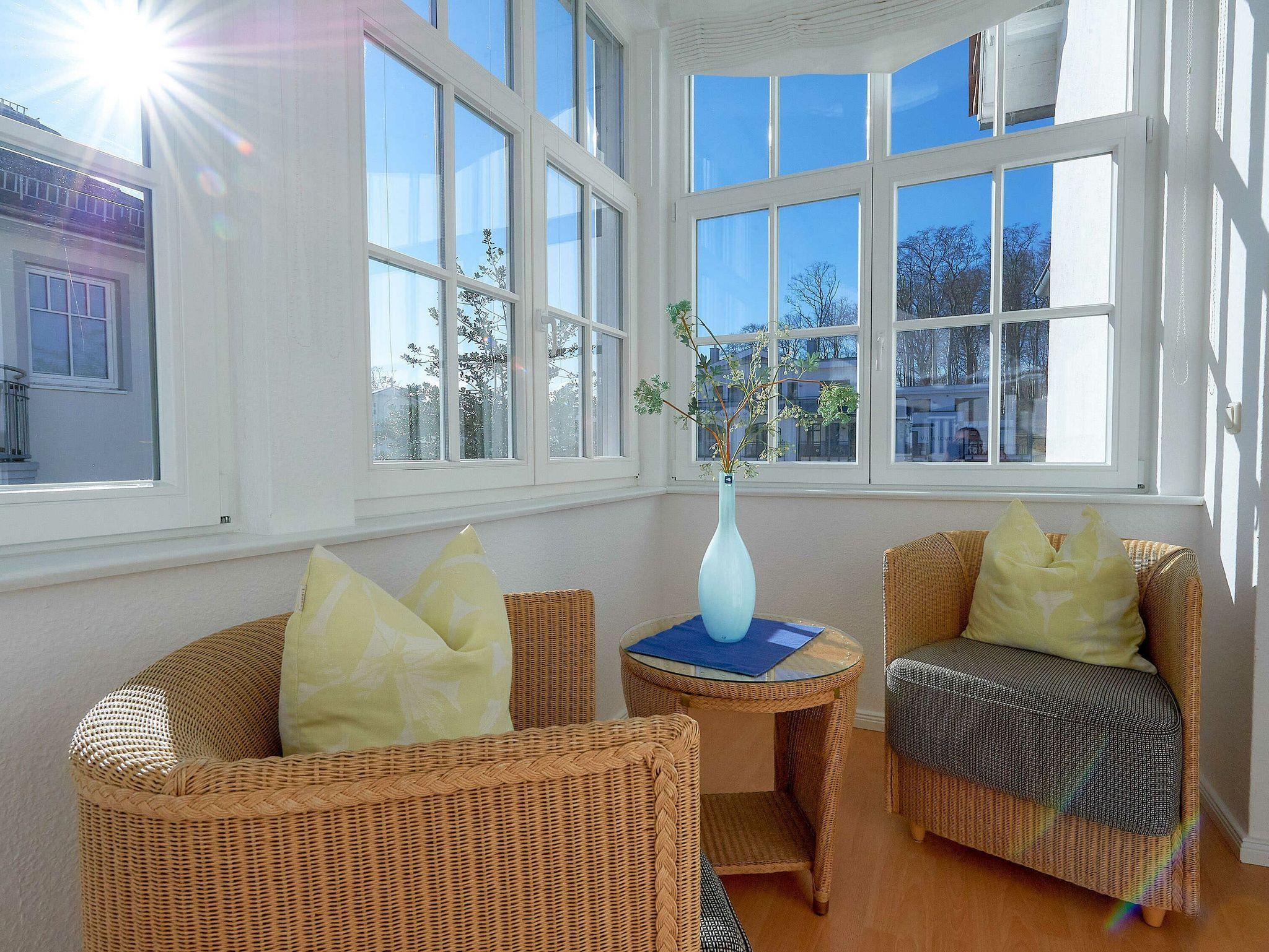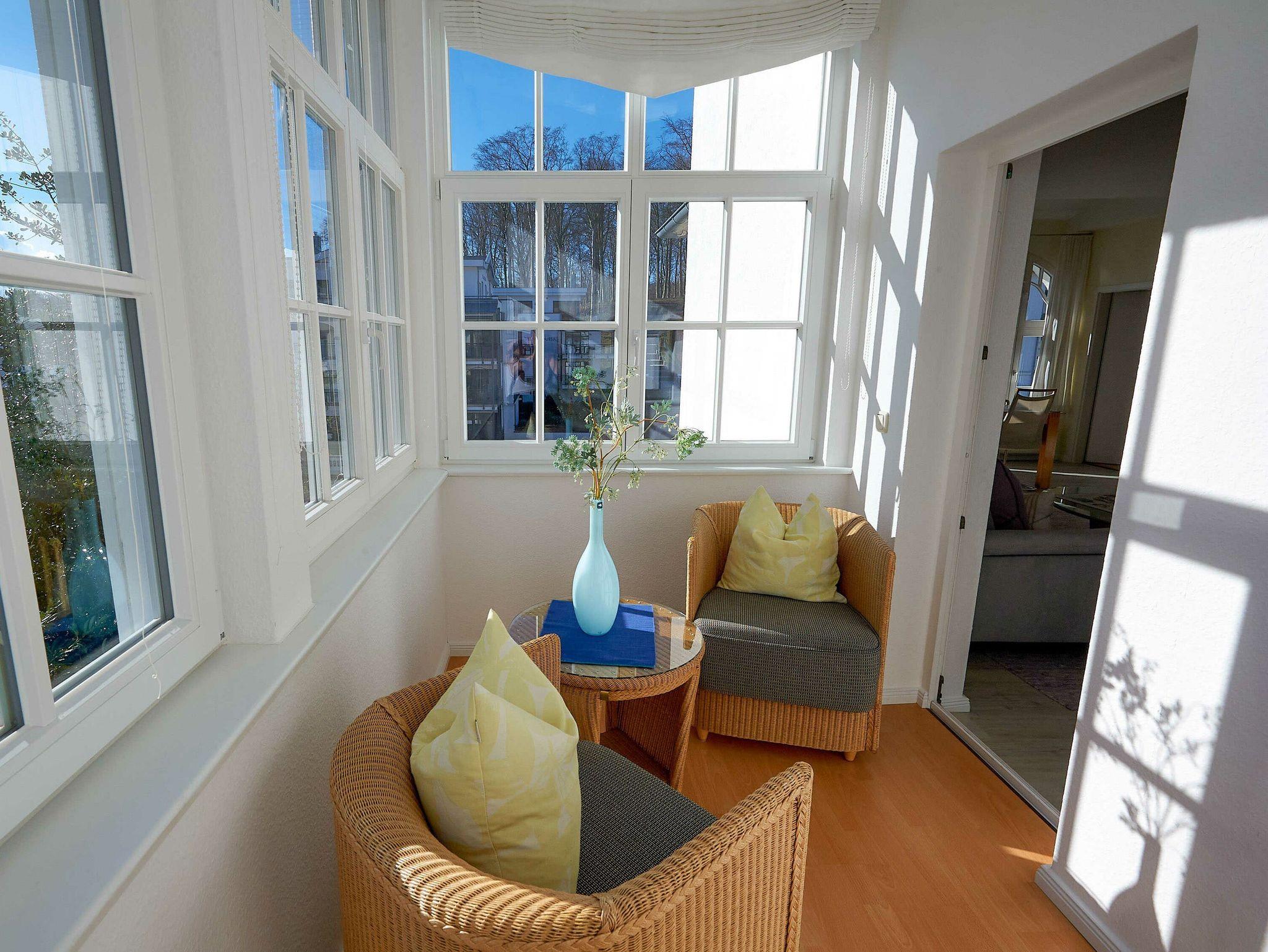 Ihr Urlaubsdomizil verfügt über eine tatsächliche Wohnfläche von ca. 65 qm, die großzügig über alle Wohnbereiche aufgeteilt ist. Sowohl die beiden Schlafräume als auch das Wohnzimmer bieten ausreichend Platz für entspannte Ferientage. Die Ausstattung besteht aus modernen, hochwertigen Möbeln und vielen kleinen Extras. Der mit zwei Sesseln und einem Tisch möblierte Wintergarten sowie der schöne Ausblick über die Wilhelmstraße gehören neben der bevorzugten Lage zum Strand zu den Highlights der Wohnung.