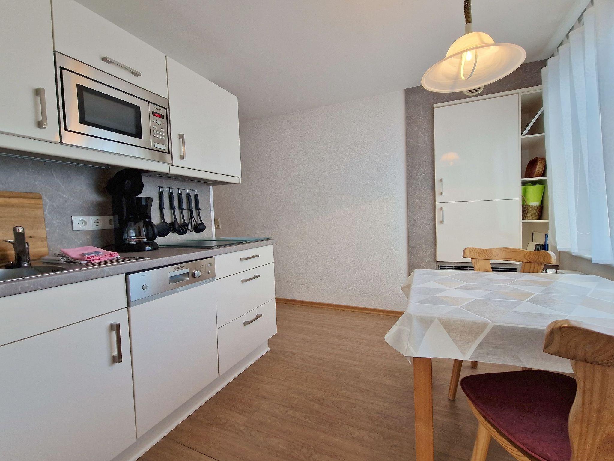 • KÜCHE: Separate Küche, 4-Felder Ceranherd, Kühlschrank, Spülmaschine, Mikrowelle, Wasserkocher, Kaffeemaschine, reichlich Besteck, Geschirr und Küchenutensilien
