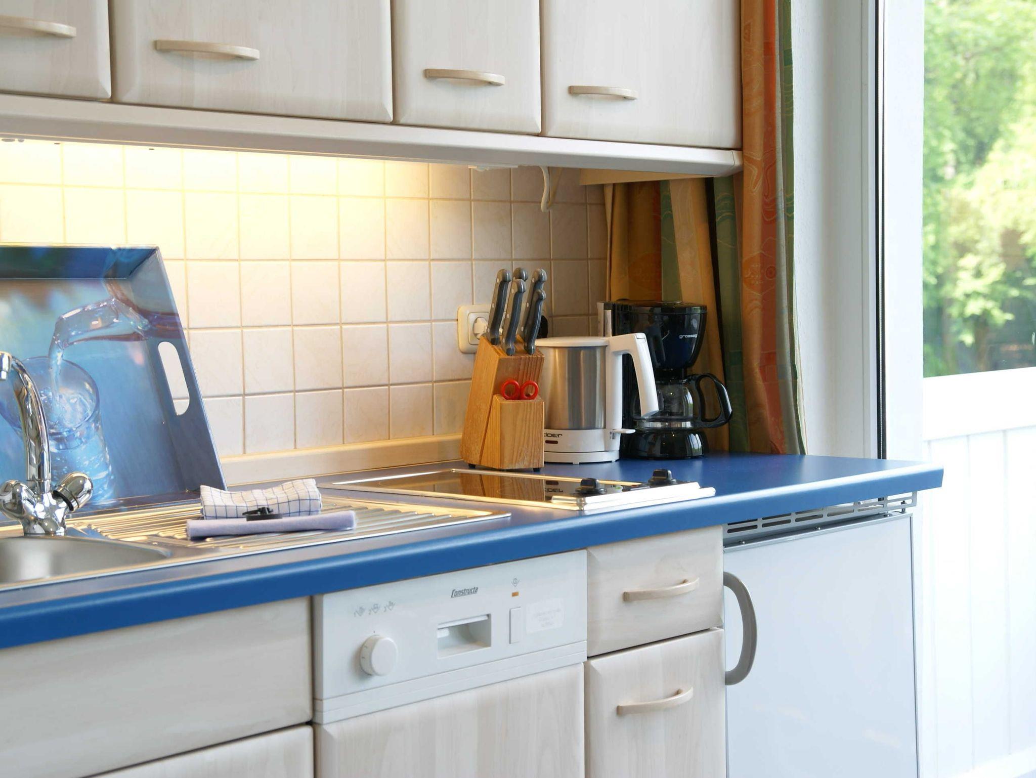 • gut ausgestatteter Küchenzeile mit Cerankochfeld,Geschirrspüler, Doppelbett