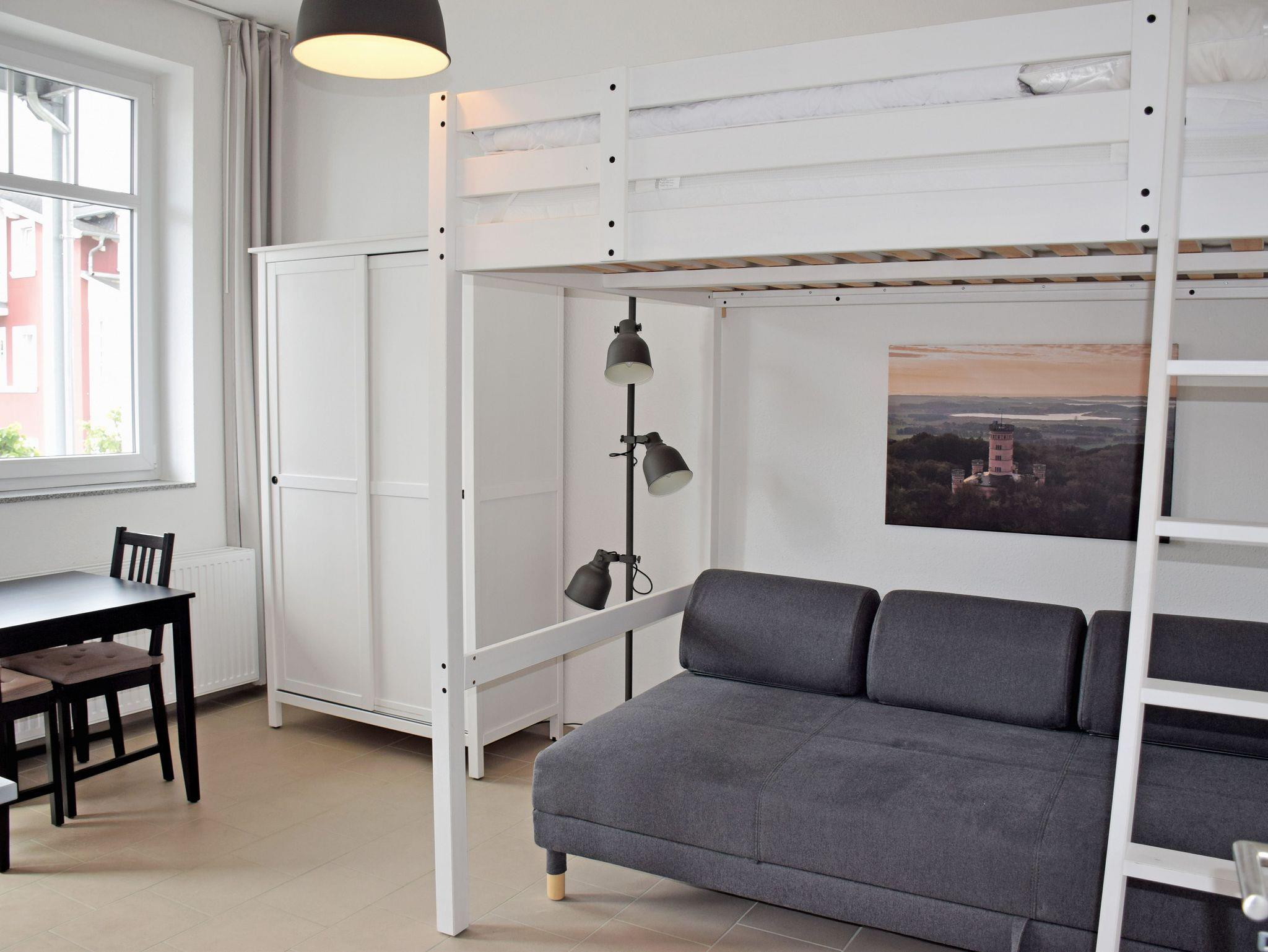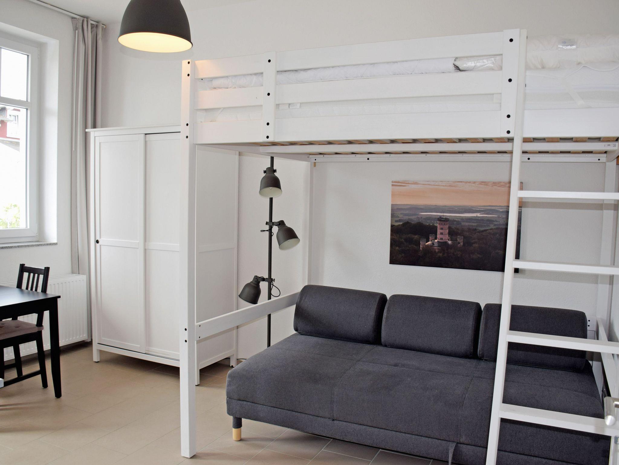 Diese hell und freundlich gestalteten 1-Raum-Ferienwohnungen sind ca. 30 qm groß und haben eine Deckenhöhe bis zu 3,10 Meter und wurden modern und komfortabel ausgestattet.