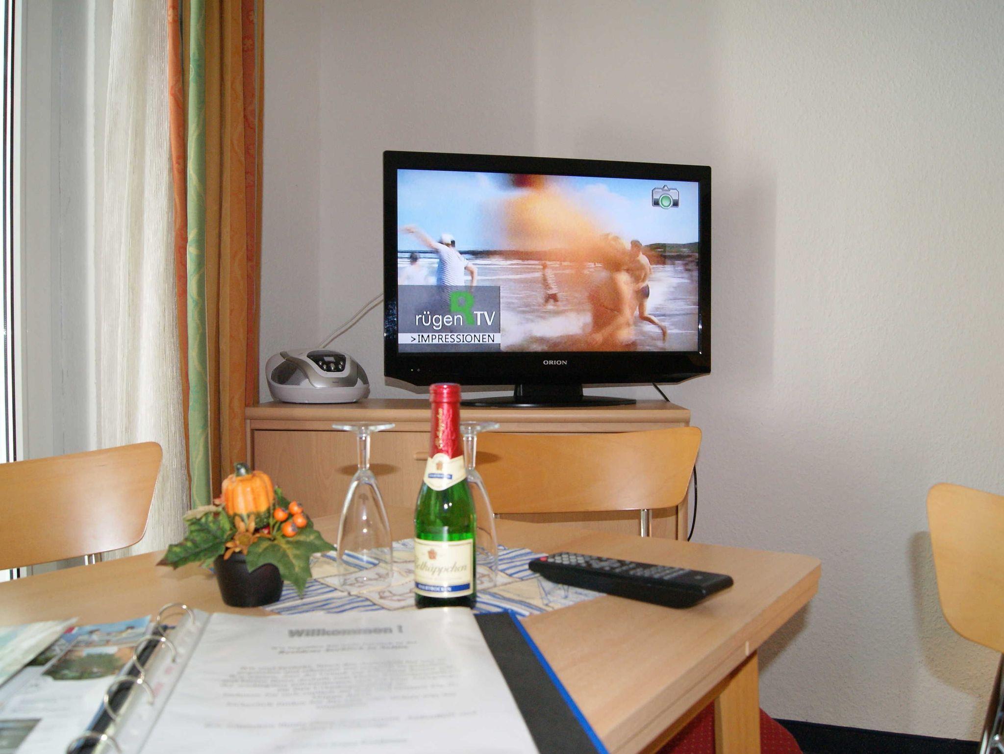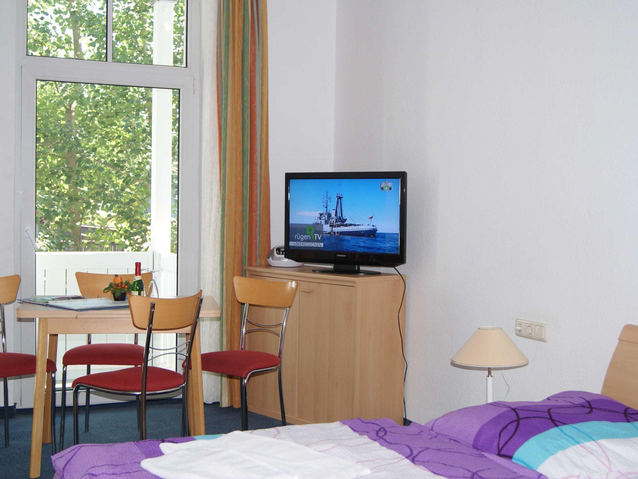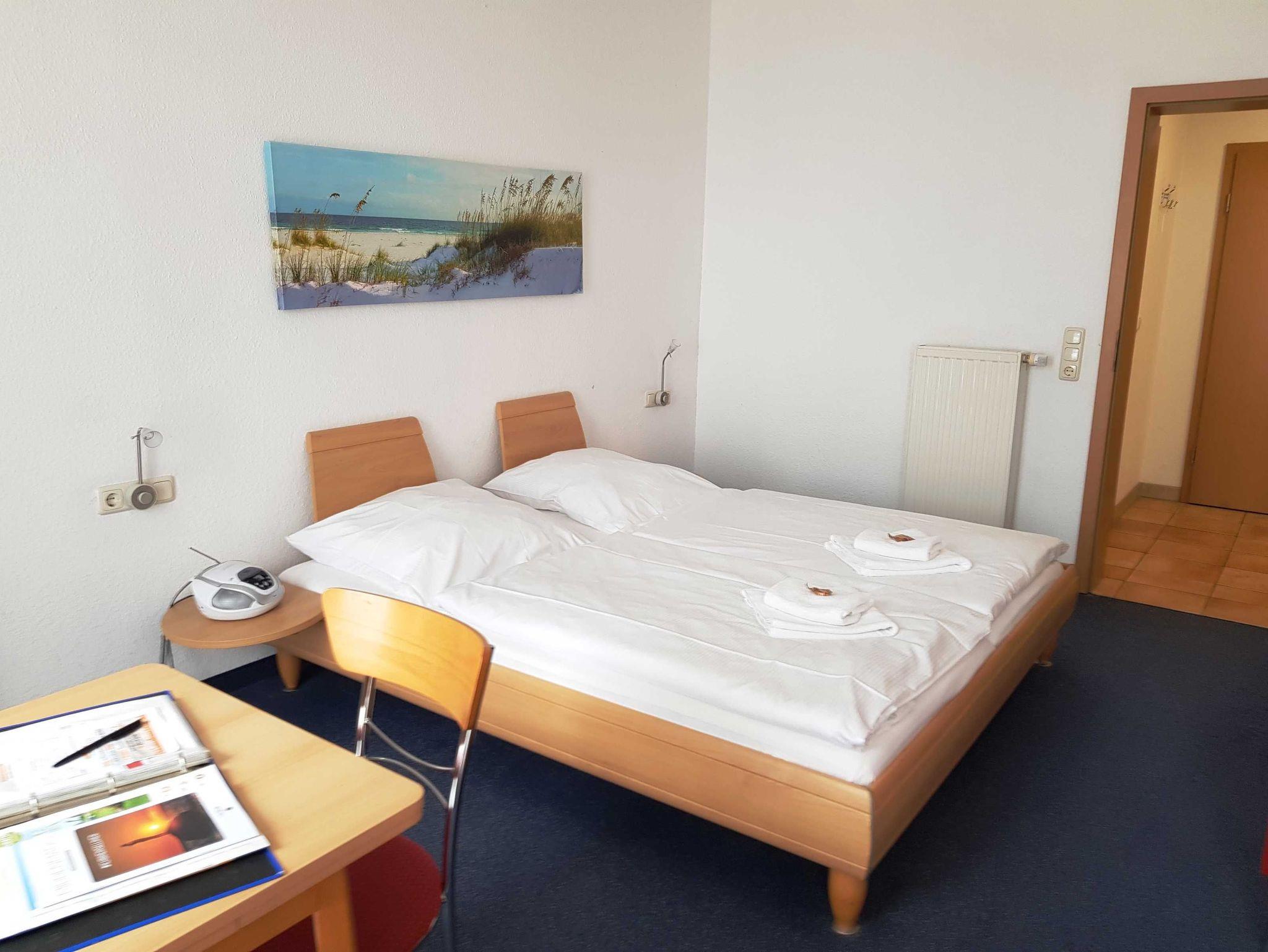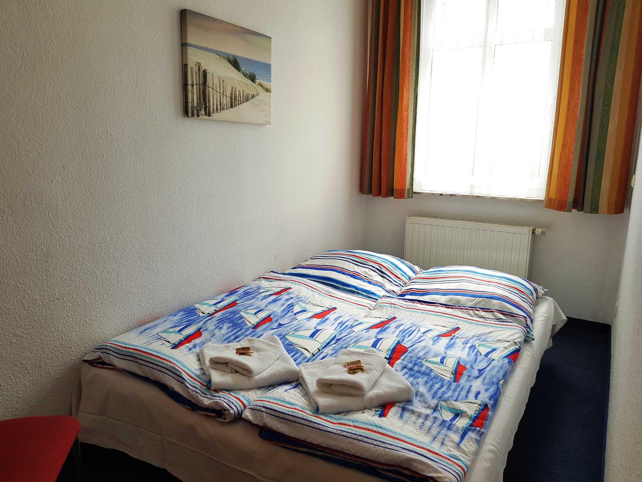 2 Raum Apartment mit Wohn-Schlafraum und Doppelbett und einem 2. Zimmer mit Ausziehcouch .Einem Esstisch im Wohnschlafraum für 4 Personen und gut ausgestatte Küche mit Geschirrspüer, Kaffemaschine, Wasserkocher etc. Babybetten ohne Wäsche können für einmalig 10 Euro gemietet werden. Bitte vorbestellen .