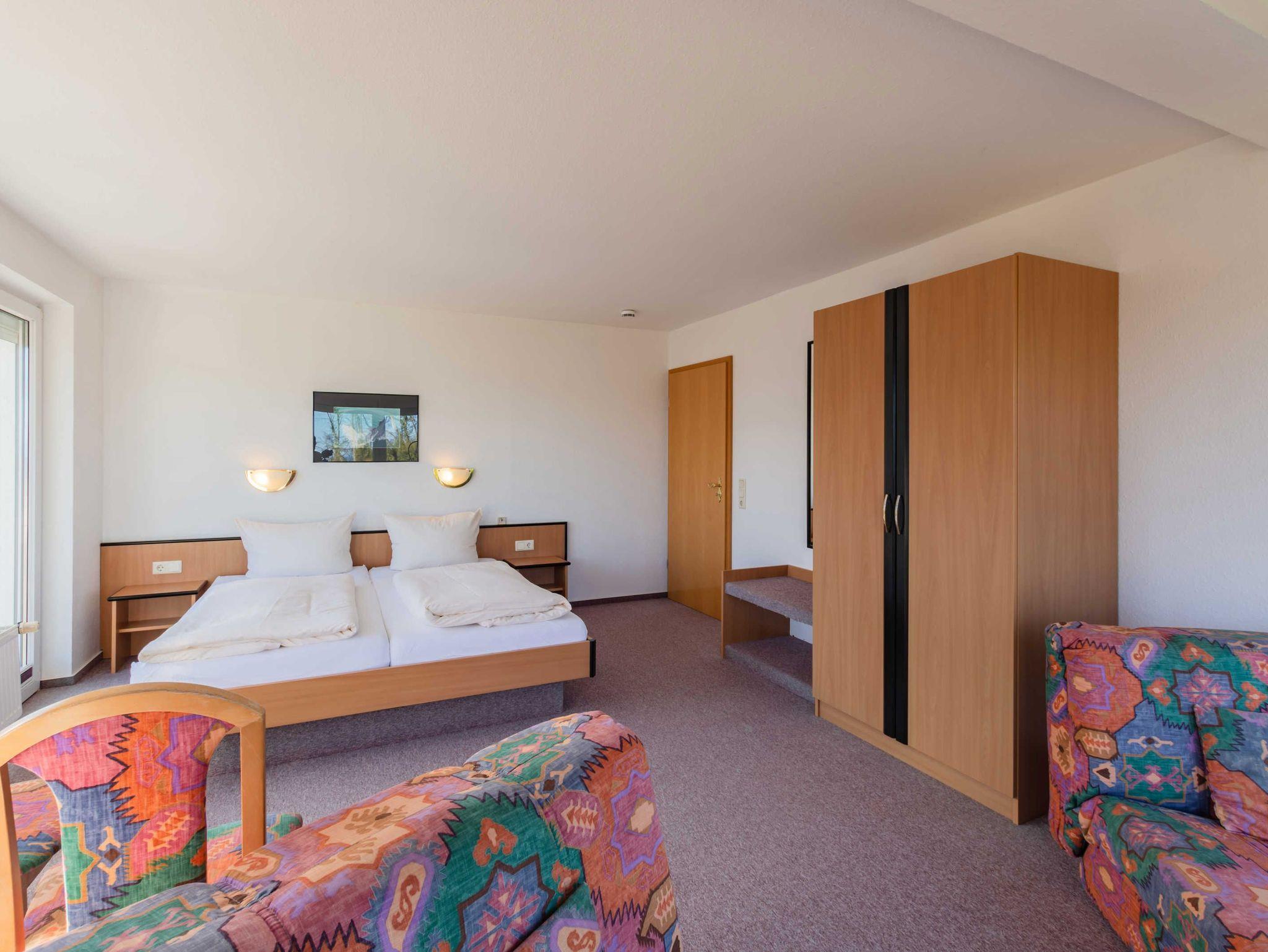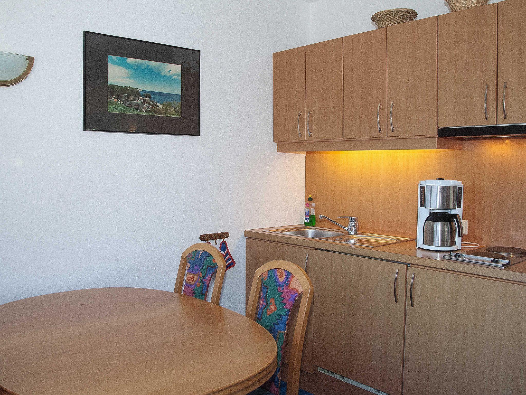 Das Maisonetten Ferienappartement „Meeresblick“ (ca.55 m²) befindet sich am Hochufer von Sellin. Der offene Wohn- und Küchenbereich sowie die Dusche mit WC sind im Erdgeschoss. Das Schlafzimmer ist im ersten OG mit einem Doppelbett. Ein Babybett kann auf Anfrage aufgestellt werden. Die offene Küche ist mit Kühlschrank (ohne Gefrierfach) und 2-Platten-Ceranfeld (ohne Backofen), ausgestattet. Kochutensilien, Kaffeemaschine, Eierkocher, Wasserkocher, ein Toaster, ausreichend Geschirr und Besteck, sind ebenso vorhanden.