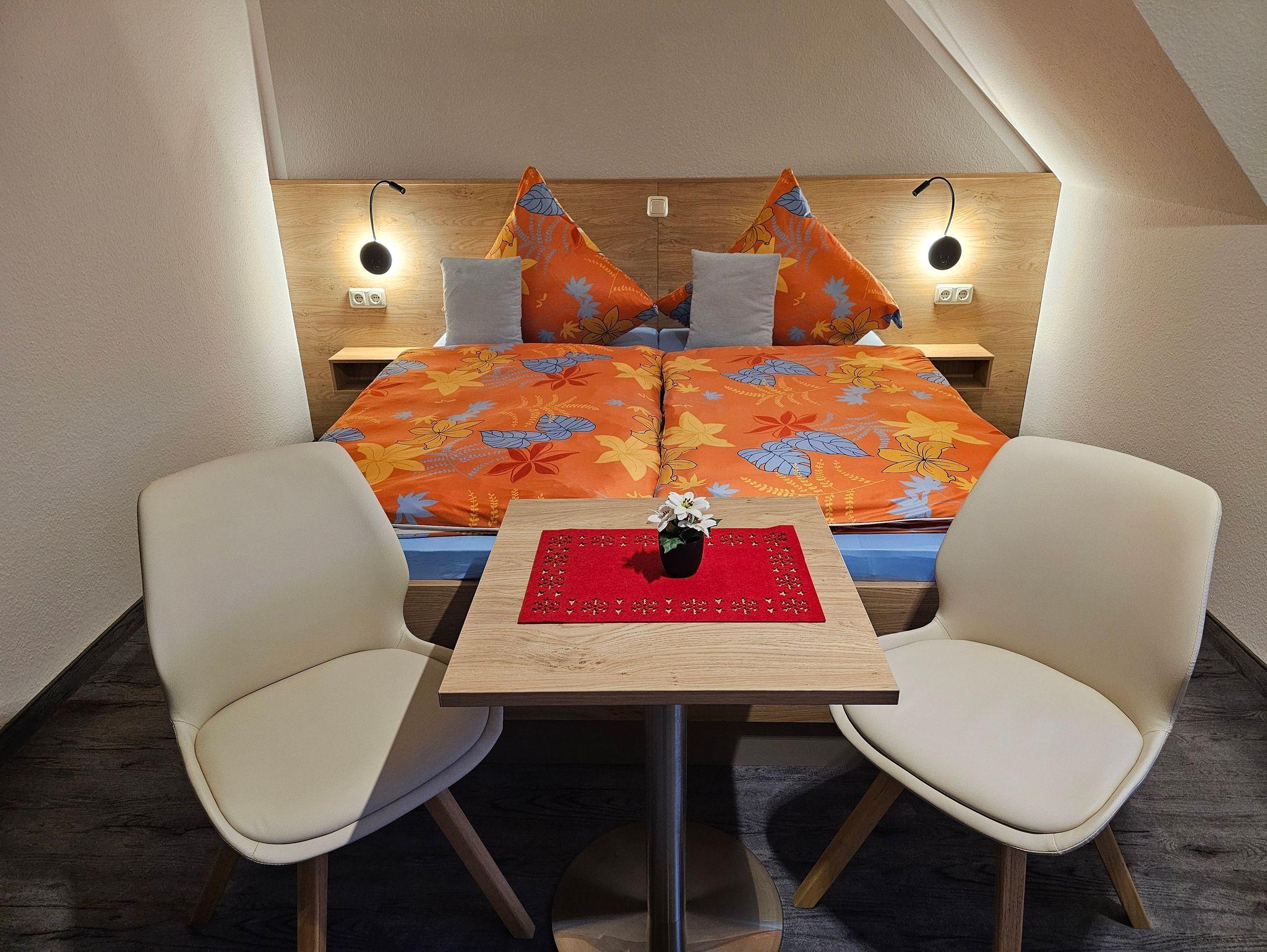 Heute erwarten Sie in unserer modernen Nichtraucher - Pension insgesamt acht sehr schön und komfortabel eingerichtete Doppelzimmer (21 qm), die auch als Einzelzimmer genutzt werden können. Alle Zimmer sind mit Dusche/WC, Flachbild-TV und Kühlschrank ausgestattet. Ab 2016 gibt es auch einen kostenlosen WLAN-Anschluss.