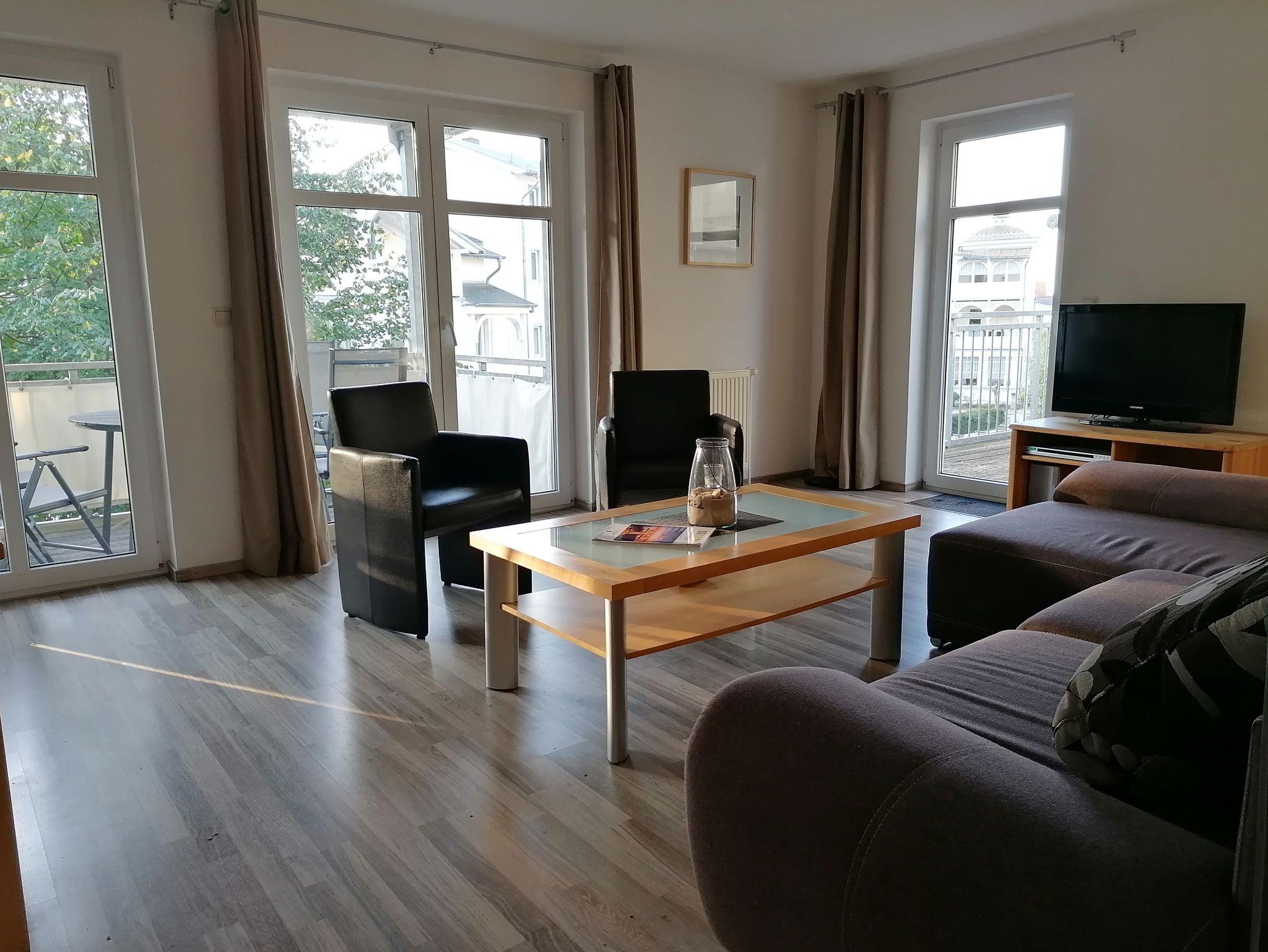 Die geräumige 2 Raum Wohnung mit Balkon und großer Dachterrasse unmittelbar am Kurpark von Sellin gelegen ist nur wenige Minuten zu Fuß vom feinsandigen Ostseestrand entfernt. Von der ruhigen Nebenstraße sind Restaurants und Einkaufmöglichkeiten bequem zu erreichen. Der sonnige Balkon und die großzügige Dachterrasse laden zum Sonnenbaden ein. Die Wilhelmstraße mit Ihren Geschäften und Restaurants ist nur wenige Minuten von der Unterkunft entfernt.