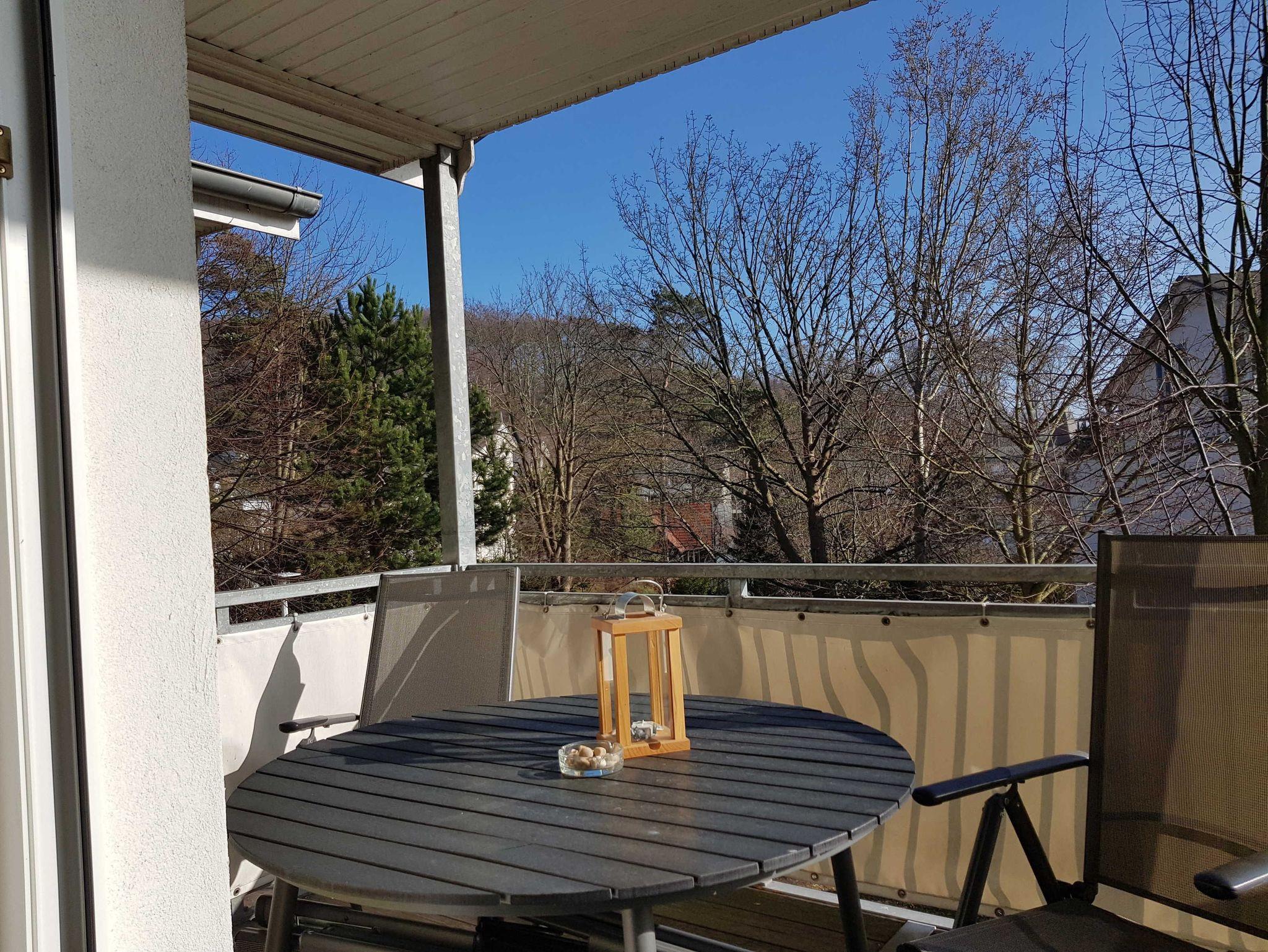 Große 2 Raumwohnung mit möbliertem Balkon und großer Sonnenterrasse. Parkplatz vor der Haustür.