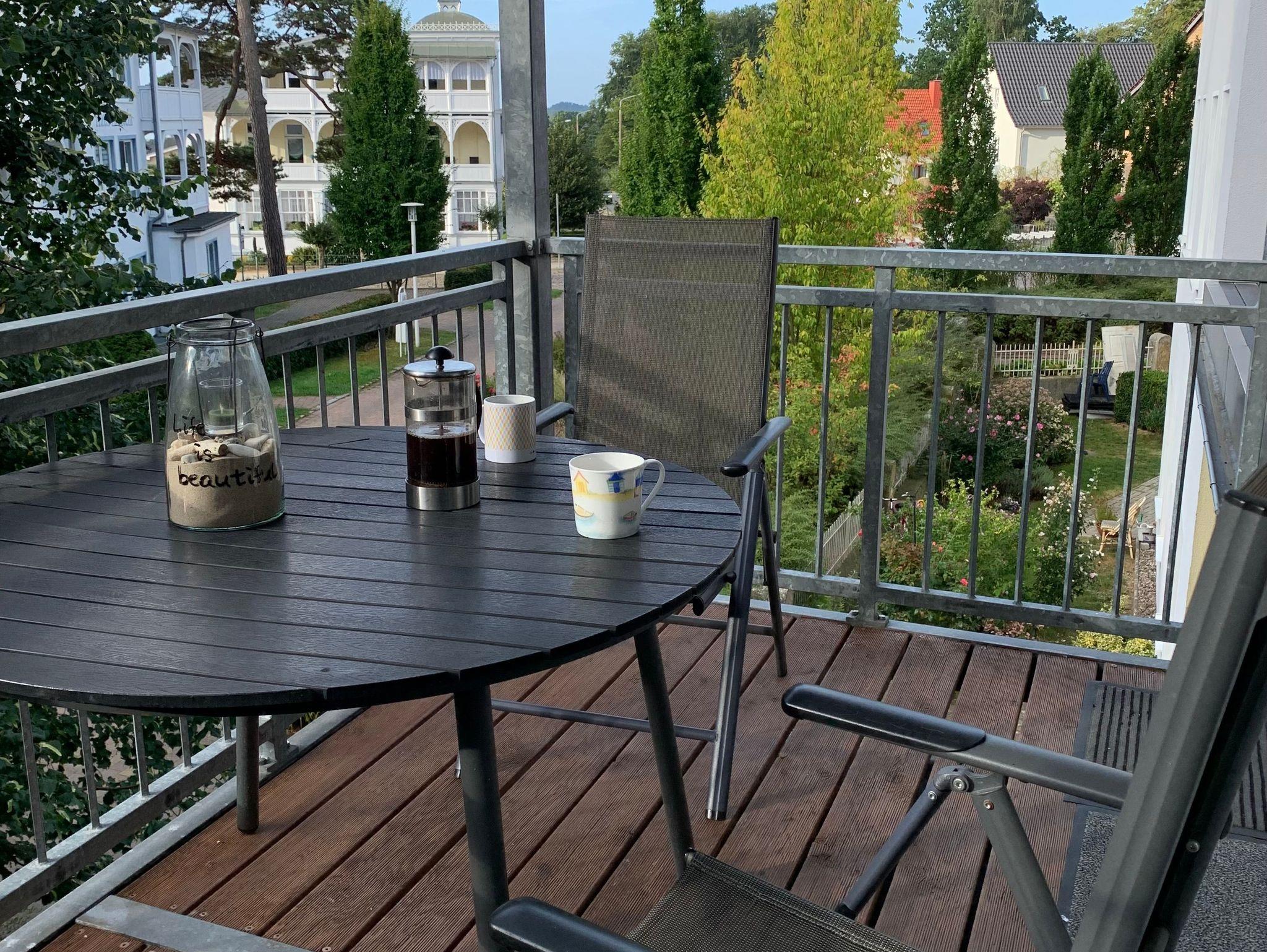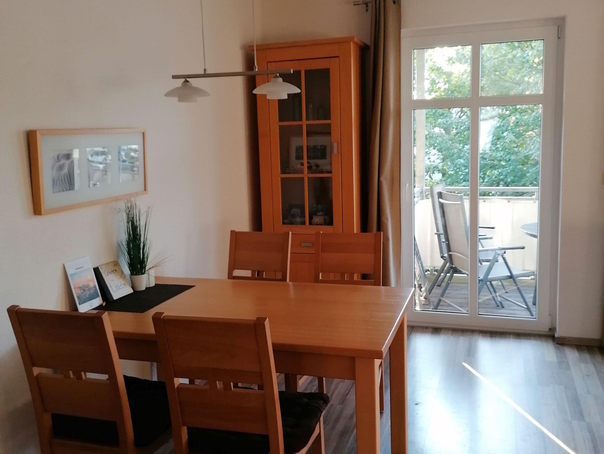 Diese 2 Raum Wohnung in der Nähe der Wilhelmstraße , der Flaniermeile von Sellin hebt sich durch einen Balkon und einer großen Terrasse hervor. Sie haben ein Schlaffzimmer mit Doppelbett und im Wohnzimmer eine Schlafcouch mit Esstisch für 4 Personen.
