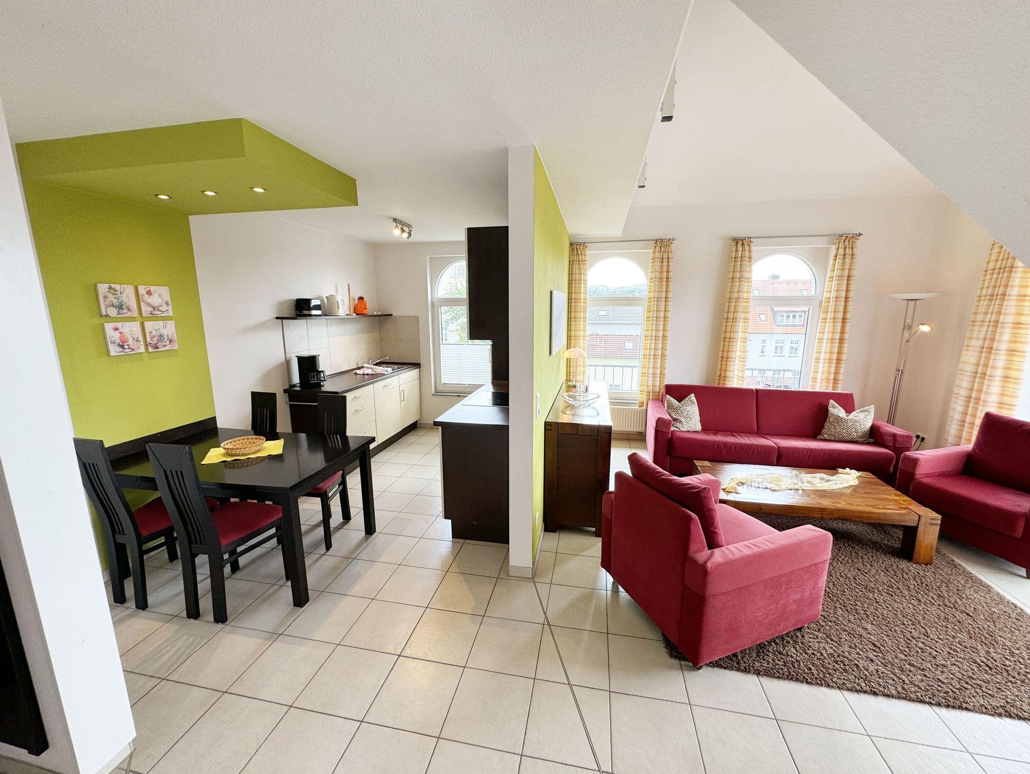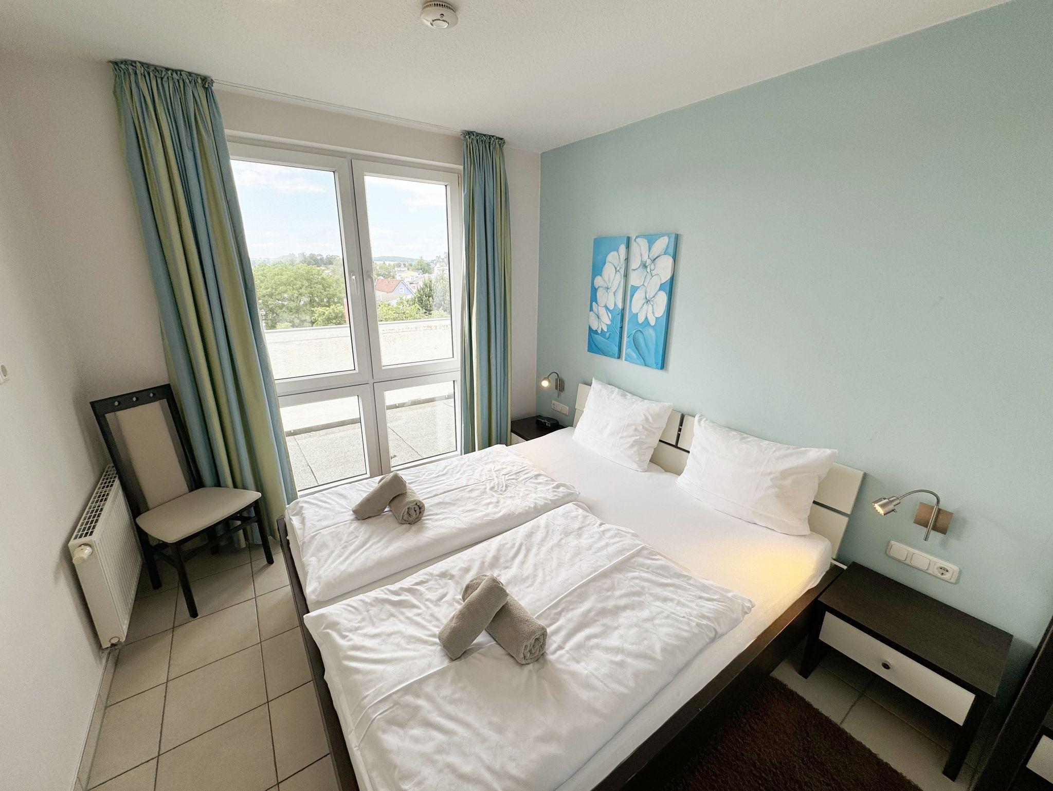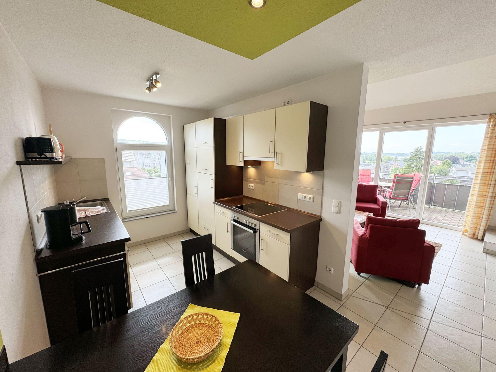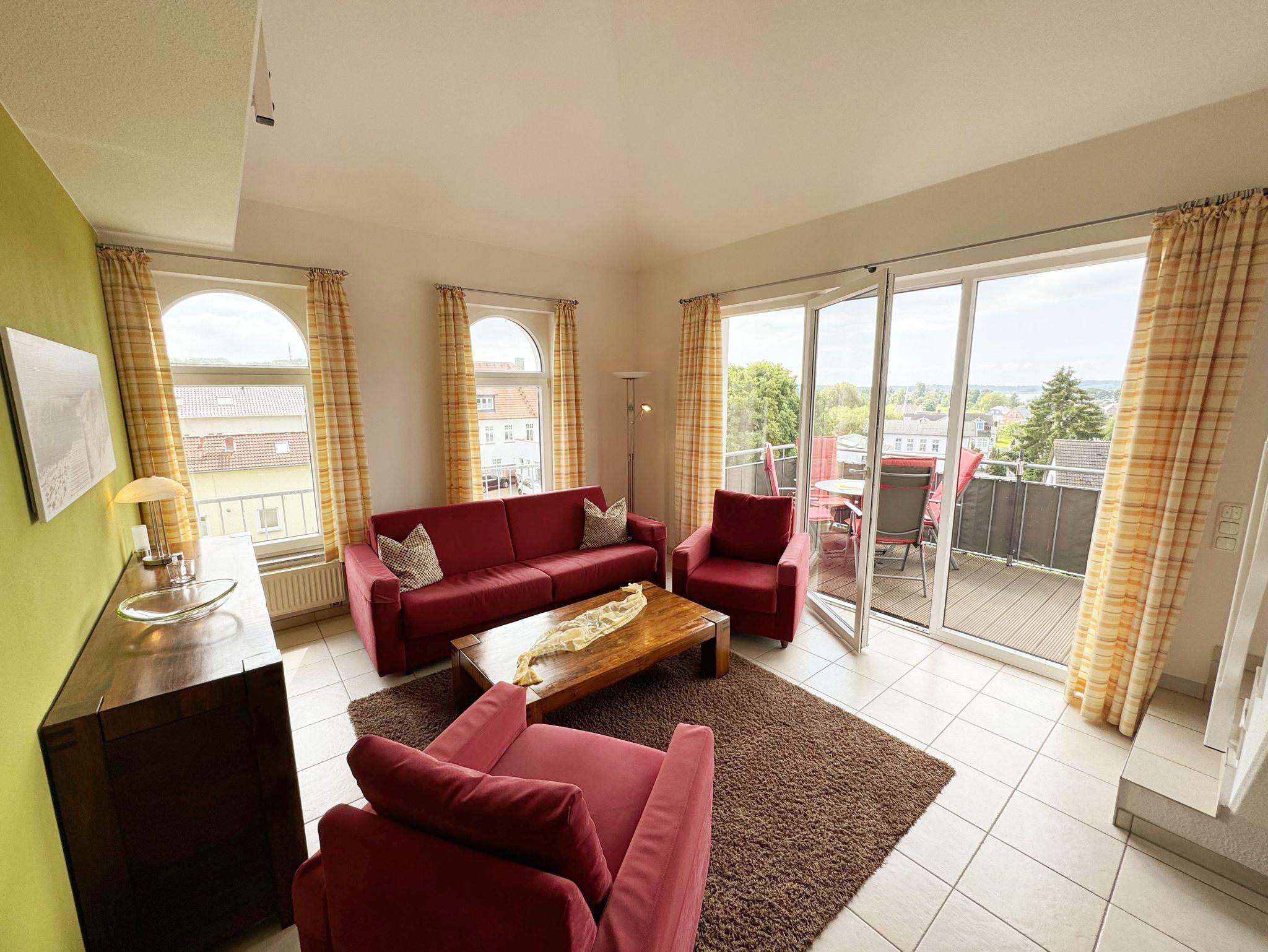 Das Ferienapartment Wohnung 10 selbst, dass Sie bequem über einen Aufzug erreichen, befindet sich im zweiten Obergeschoss der Dependance. Vom großzügigen Balkon der Wohnung haben Sie einen wunderschönen Panoramablick über das Ostseebad.
