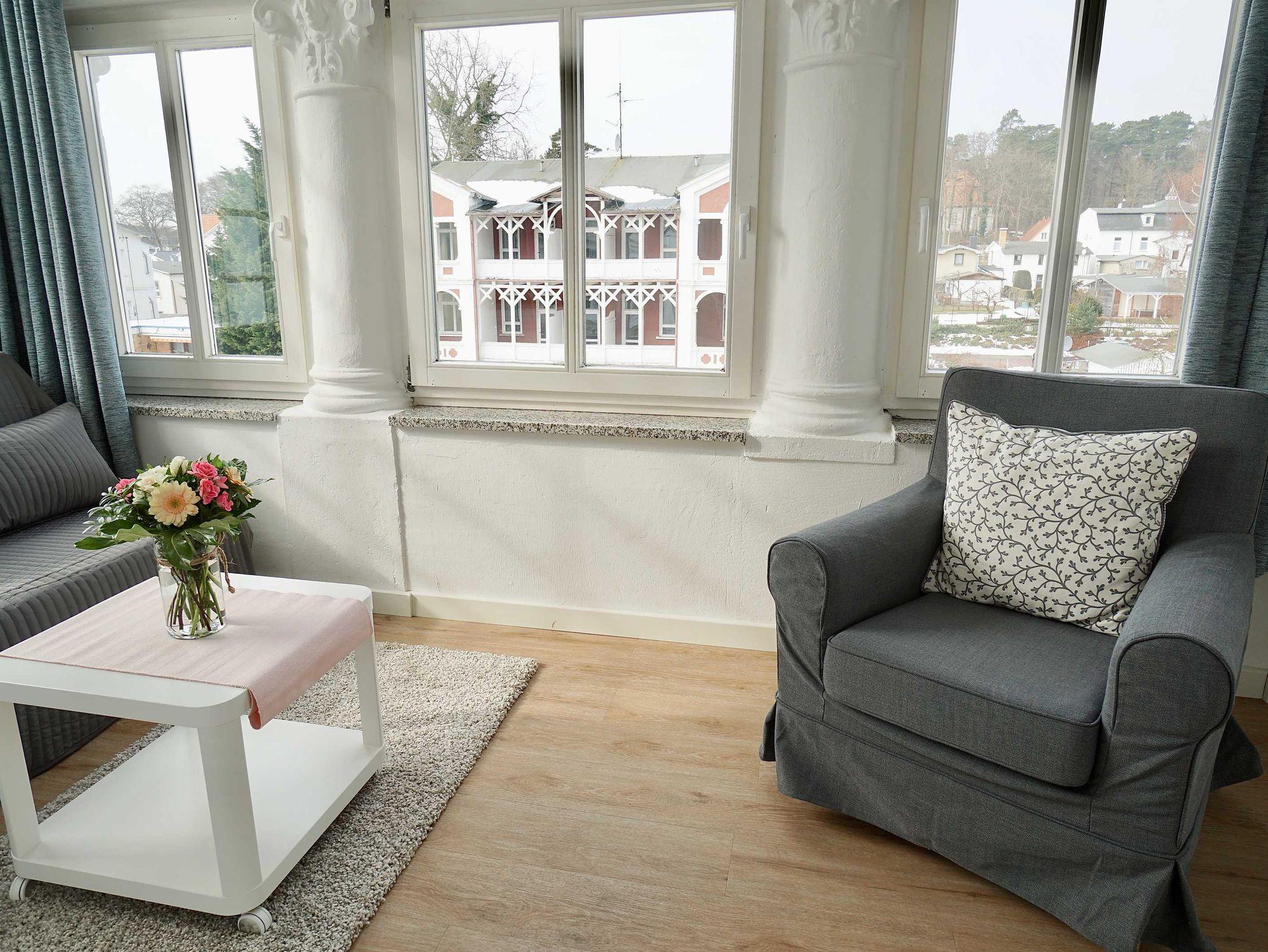 Unser Appartementhaus ist eine im Stil der Bäderarchitektur sanierte, wunderschöne alte Villa. Sie befindet sich ruhig gelegen an der Hauptpromenade des Ostseebads Sellin, der historischen, zur Seebrücke und zum feinsandigen Badestrand führenden Wilhelmstraße. Wir bieten mit vier verschiedenen Appartementgrößen gemütliche Ferienunterkünfte. Unsere Gäste können einen WLAN-Internetanschluss im ganzen Haus kostenlos nutzen. Pkw-Stellplätze befinden sich direkt am Haus.