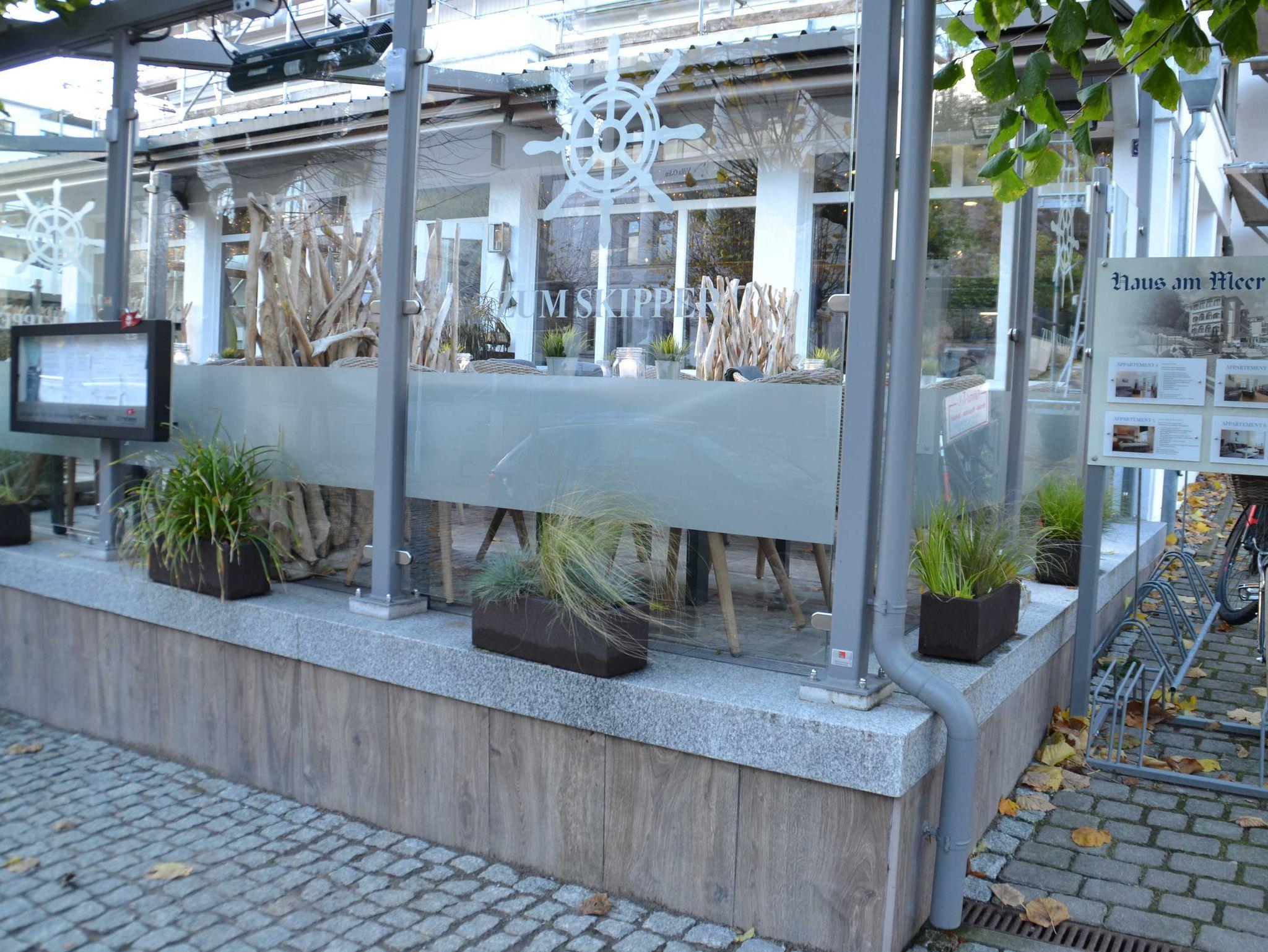 Vom schicken Wohnbereich aus gelangt der Gast in den vorgelagerten und verglasten Wintergarten, der einen traumhaften Blick auf die pittoreske Promenade der Wilhelmstrasse bietet. Es sind Vorhänge als Sonnenschutz vorhanden. Genießen Sie Ihre Urlaubszeit in der wundervollen Atmosphäre des Wintergartens mit seinen gemütlichen Sitzmöbeln. Die Fenster lassen sich alle öffnen und zu jeder Jahreszeit spürt man hier besonders den Charme des Wohnens in einer Urlaubsvilla aus den Anfängen des letzten Jahrhunderts.