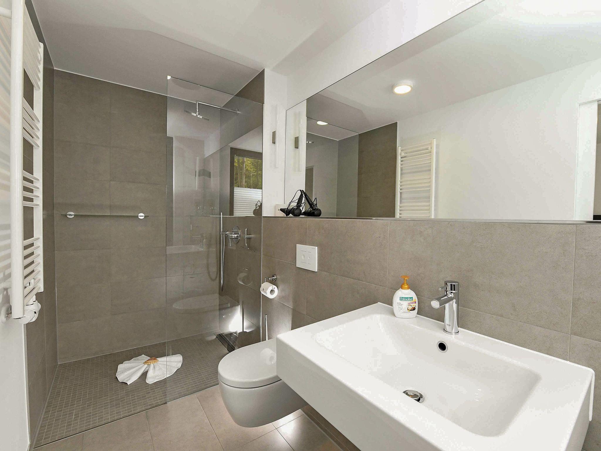 Zwei Schlafzimmer mit komfortablen Doppelbetten sowie zwei jeweils von den Schlafzimmern aus zu begehende Duschbäder sind vorhanden. Darüber hinaus steht Ihnen ein privater Saunabereich mit Dusche und WC zur Verfügung. Für die kleine Urlaubswäsche zwischen durch gibt es im Hauswirtschaftsraum eine Waschmaschine.