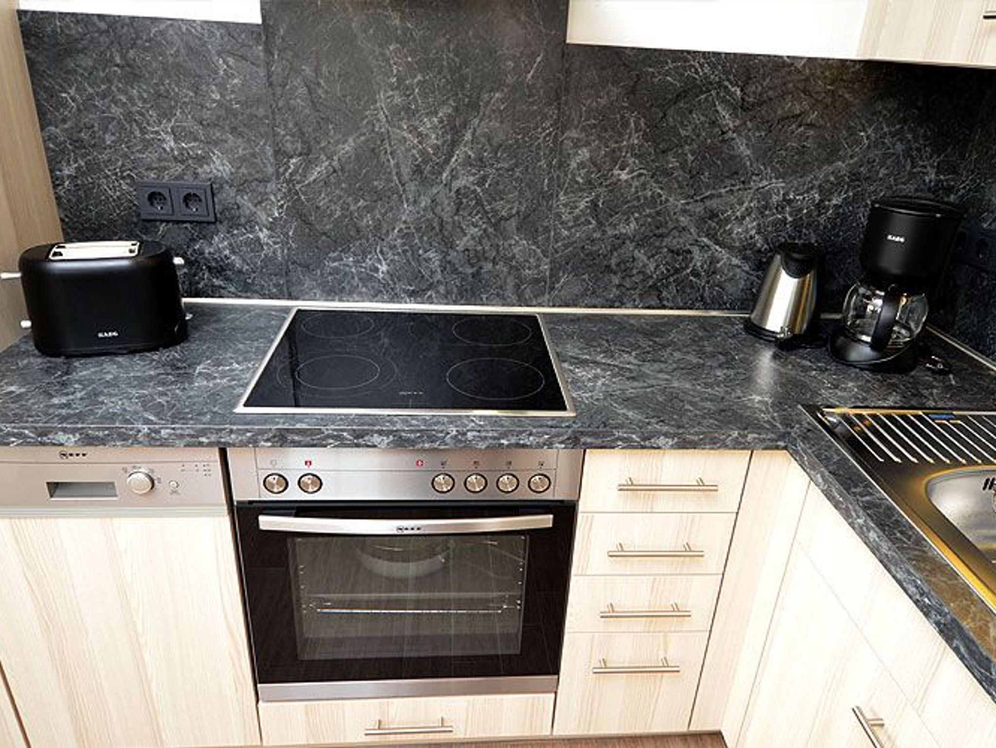 Vom Eingangsbereich gelangen Sie in den modern und freundlich eingerichteten Wohn- und Essbereich, der mit einem LCD- Fernseher sowie einer Stereoanlage mit CD-Player und Ipod-Dockingstation ausgestattet ist. Die in den Wohnbereich harmonisch integrierte Küche ist mit einem großen Kühlschrank, einem Backofen, einem Ceranfeld mit 4 Kochfeldern sowie einer Spülmaschine und diversem Kleininventar, das die Küchenausstattung komplettiert, eingerichtet.