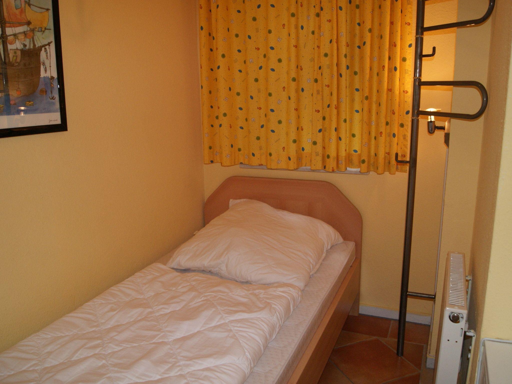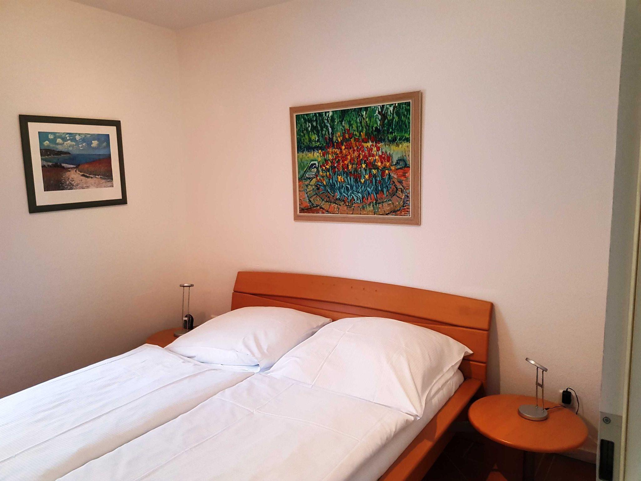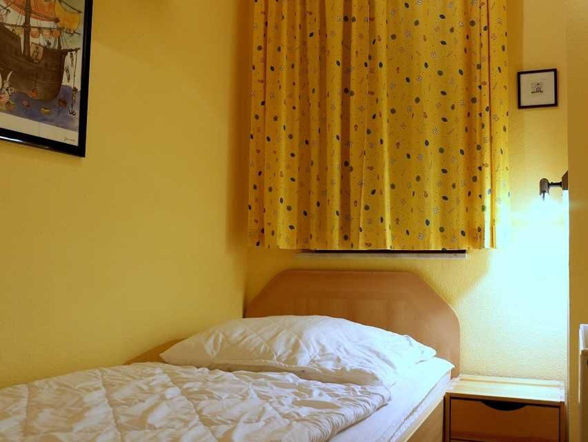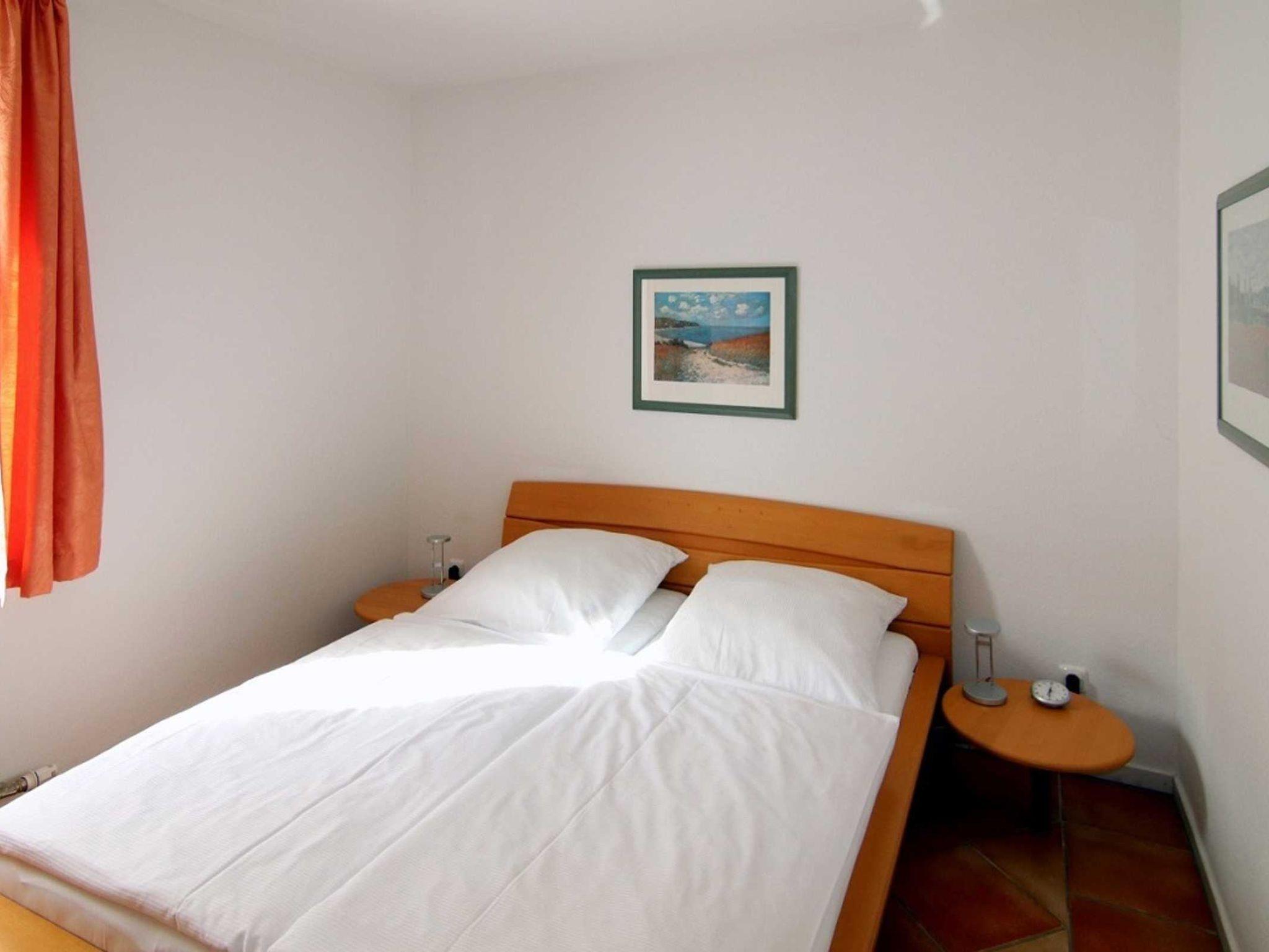 • 1 Schlafzimmer mit großem Doppelbett. 1 kleines Zimmer mit Einzelbett.