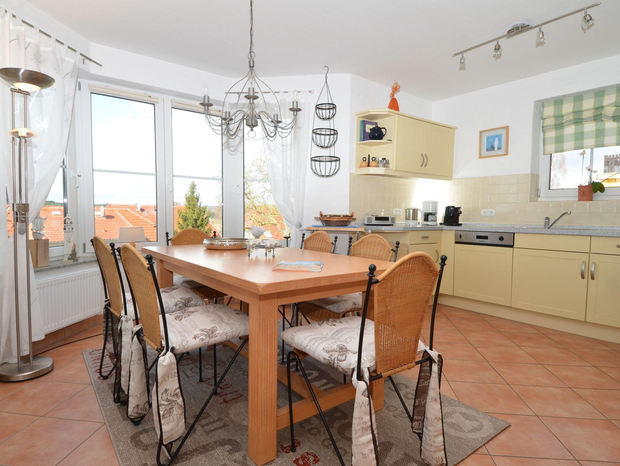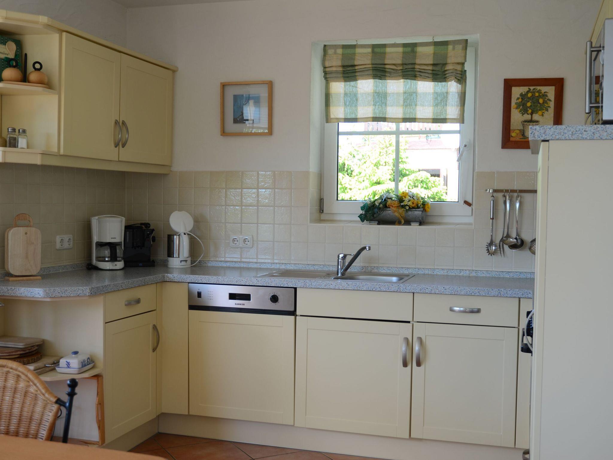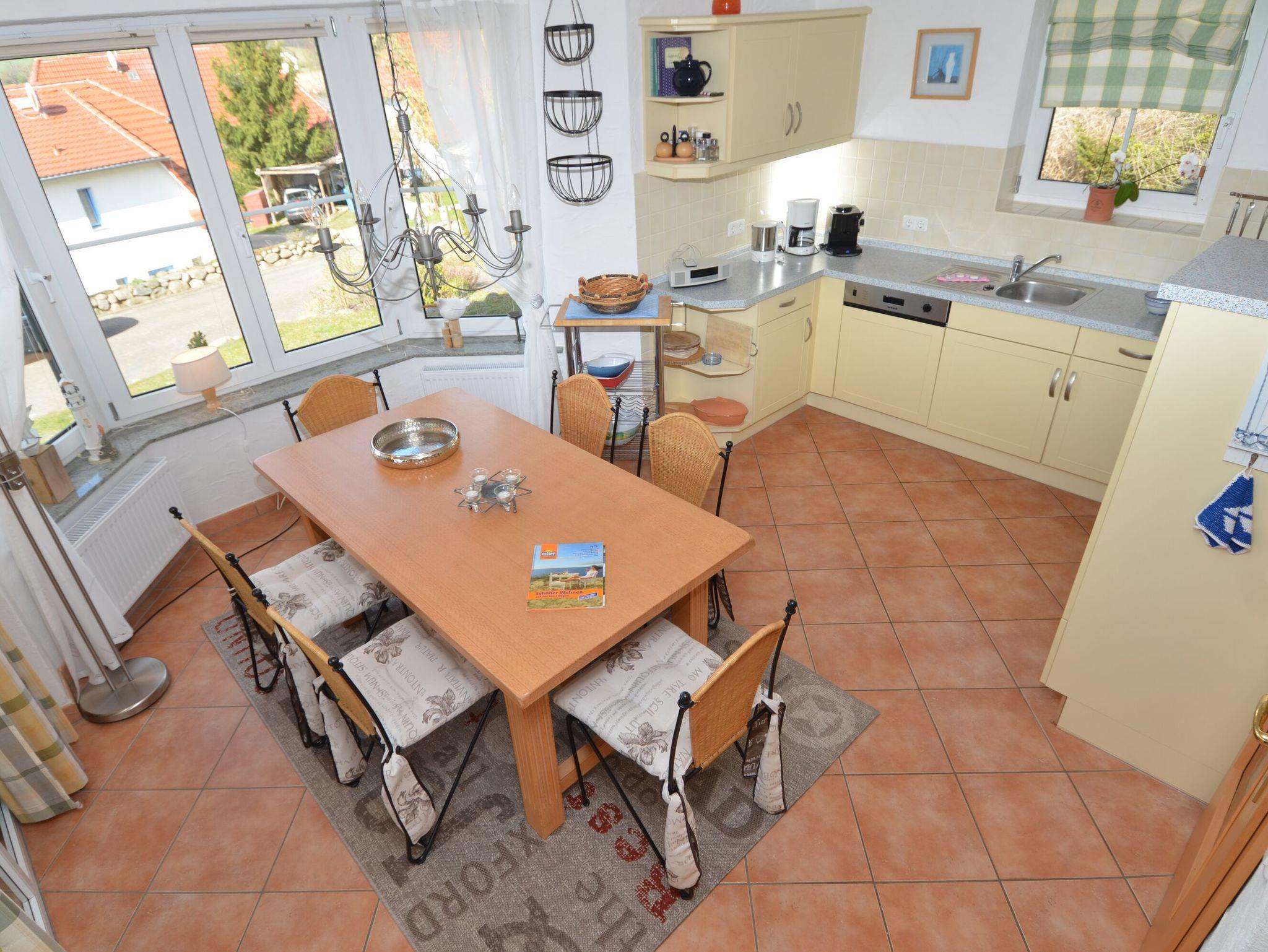 Die gut ausgestattete, offene Küche verfügt u.a. über einen Backofen, ein 4-Zonen-Ceranfeld, eine Mikrowelle, einen Kühlschrank und eine Spülmaschine. Selbstverständlich ist auch das nötige Koch- und Essgeschirr vorhanden. Speisen können Sie wahlweise am großen Esstisch drinnen oder natürlich auch gern draußen auf der Terrasse.
