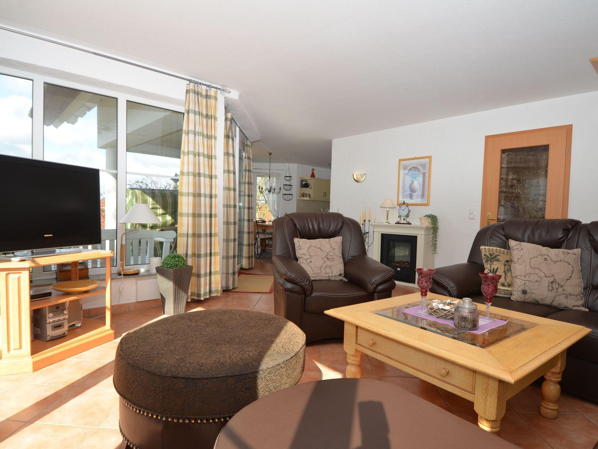 Im Wohnzimmer befinden sich eine große Couchgarnitur, ein Flachbild-Fernseher, eine Stereoanlage mit CD-Player und ein elektrischer Kamin für die besonders romantischen Stunden. W-LAN ist kostenfrei verfügbar.