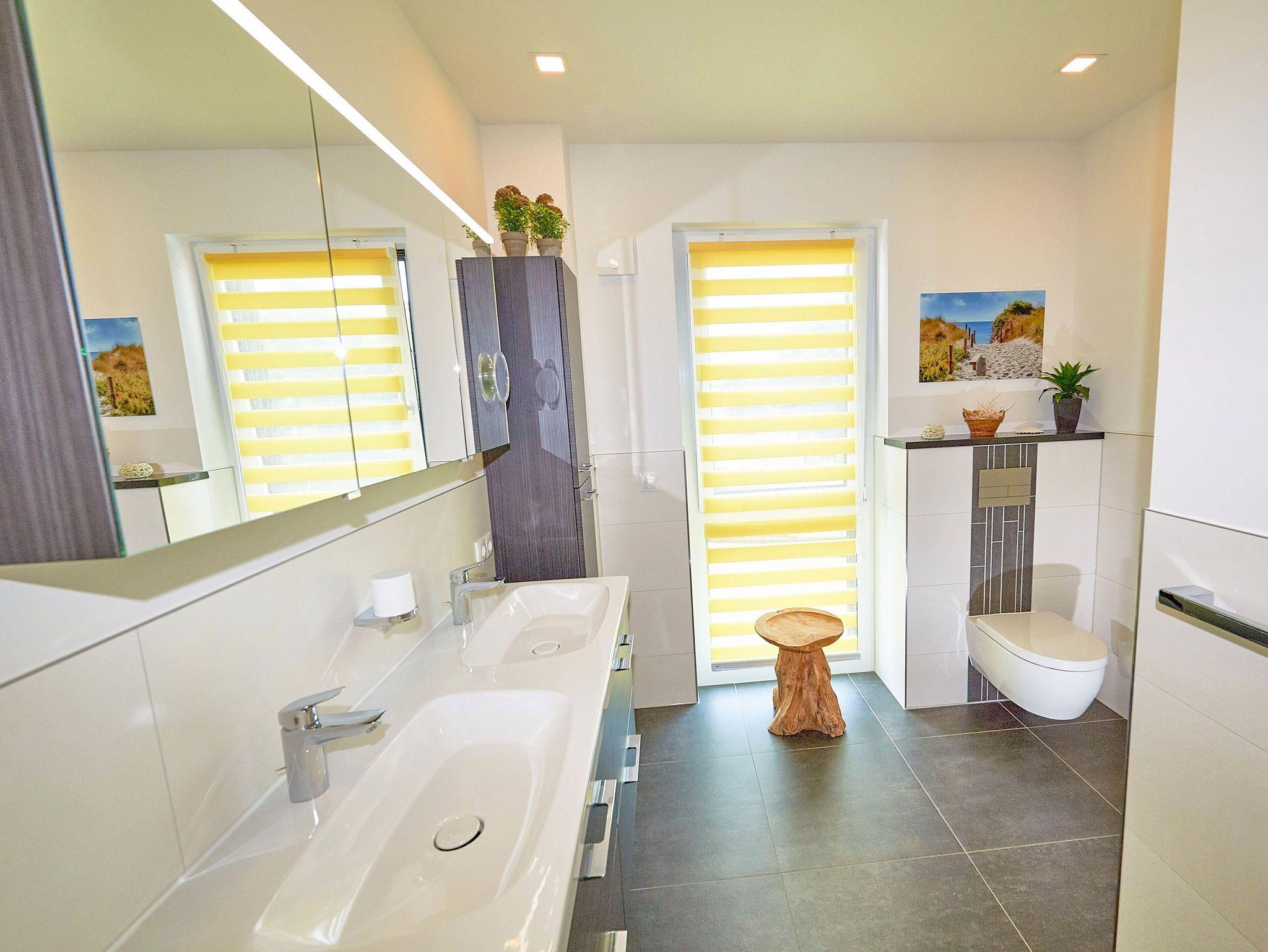 • ein Bad mit Doppelwaschtisch, WC und großer Dusche mit Rain Shower