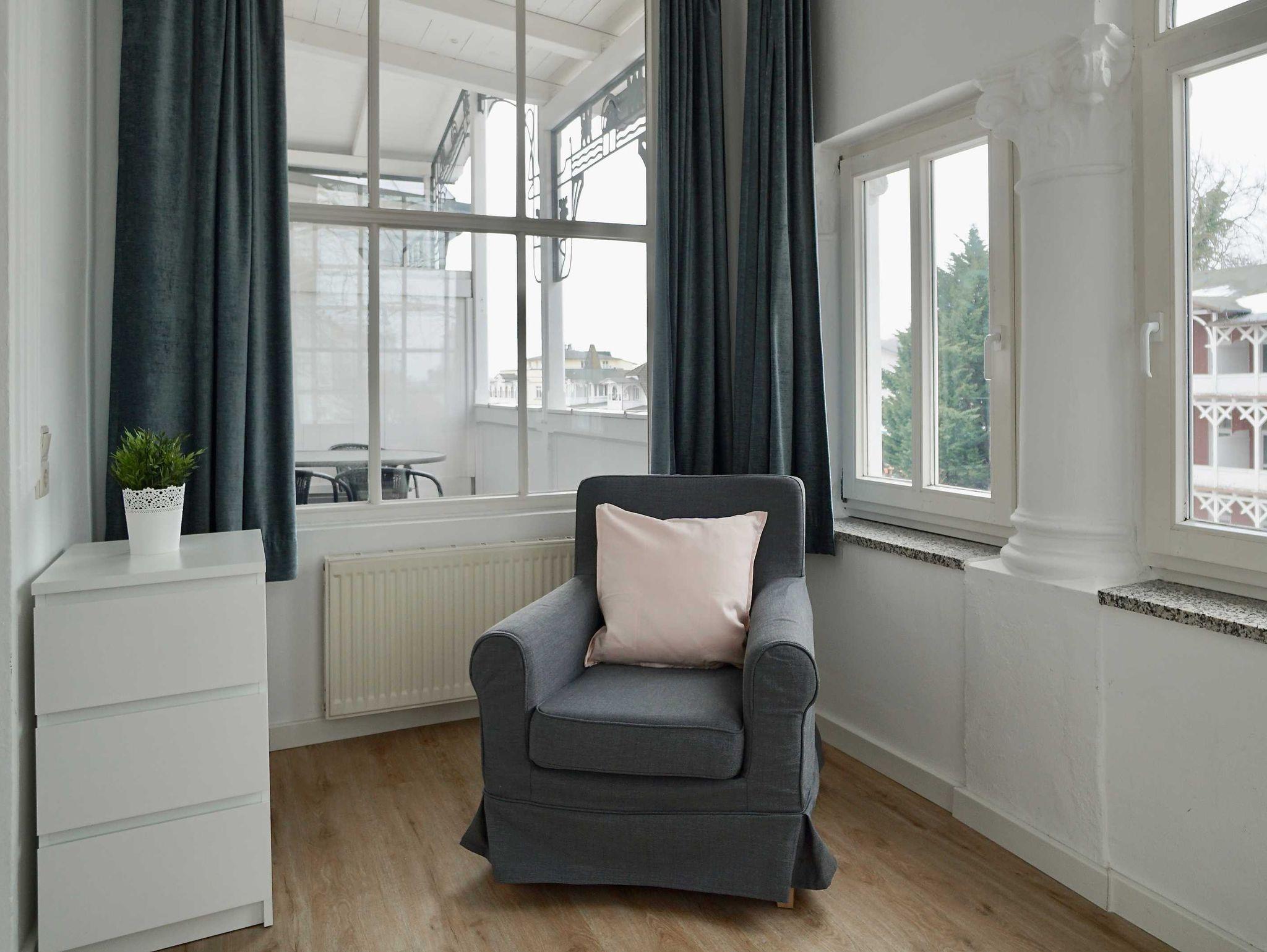 Unser Appartementhaus ist eine im Stil der Bäderarchitektur sanierte, wunderschöne alte Villa. Sie befindet sich ruhig gelegen an der Hauptpromenade des Ostseebads Sellin, der historischen, zur Seebrücke und zum feinsandigen Badestrand führenden Wilhelmstraße. Wir bieten mit vier verschiedenen Appartementgrößen gemütliche Ferienunterkünfte. Unsere Gäste können einen WLAN-Internetanschluss im ganzen Haus kostenlos nutzen. Pkw-Stellplätze befinden sich direkt am Haus.