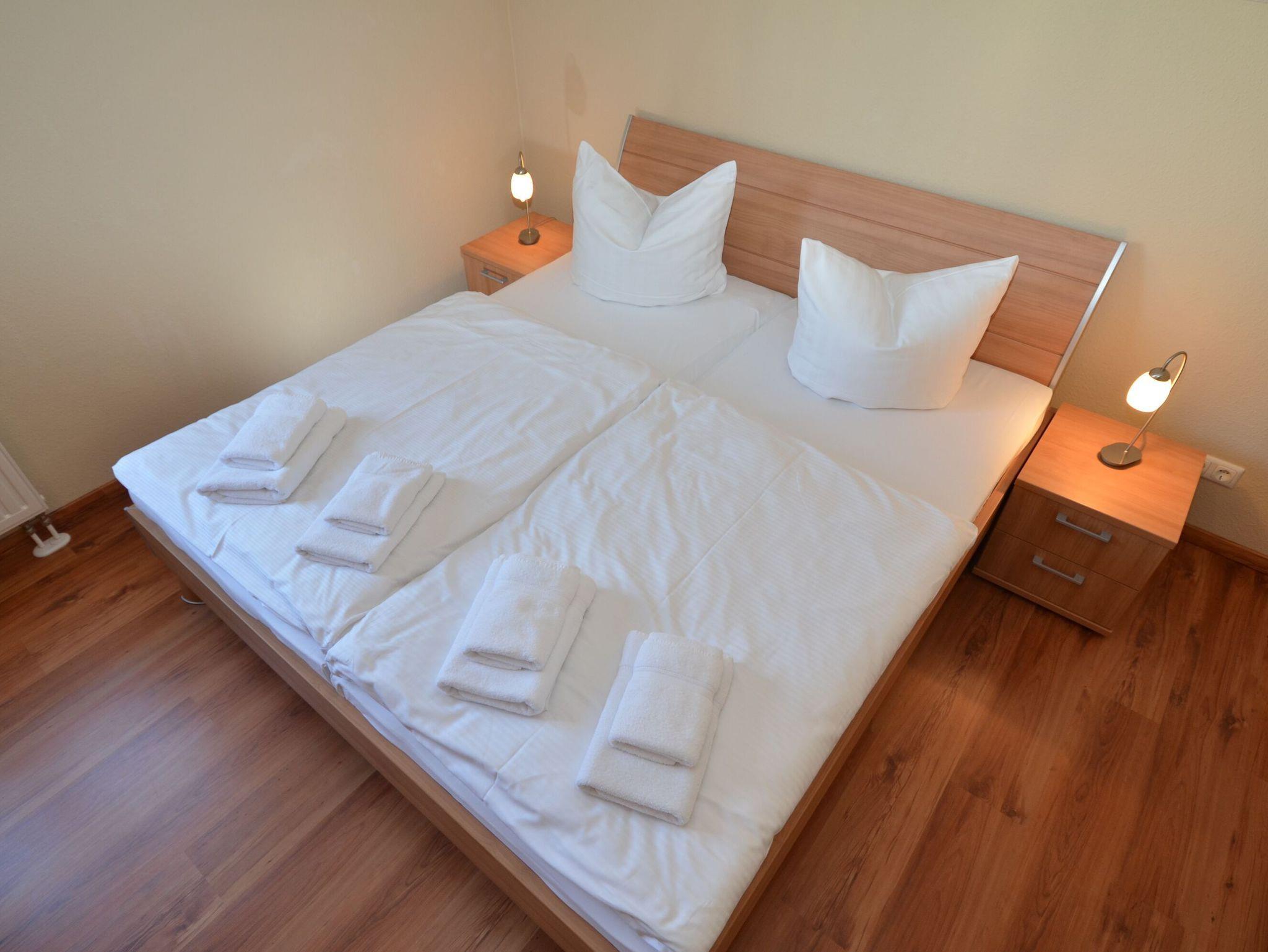 Zwei Schlafzimmer mit jeweils einem bequemen Doppelbett und ausreichend Platz für Ihre Garderobe sowie ein modernes Badezimmer mit Dusche/WC, einem beleuchtetem Waschtisch und einem Haartrockner komplettieren Ihr Zuhause auf Zeit.