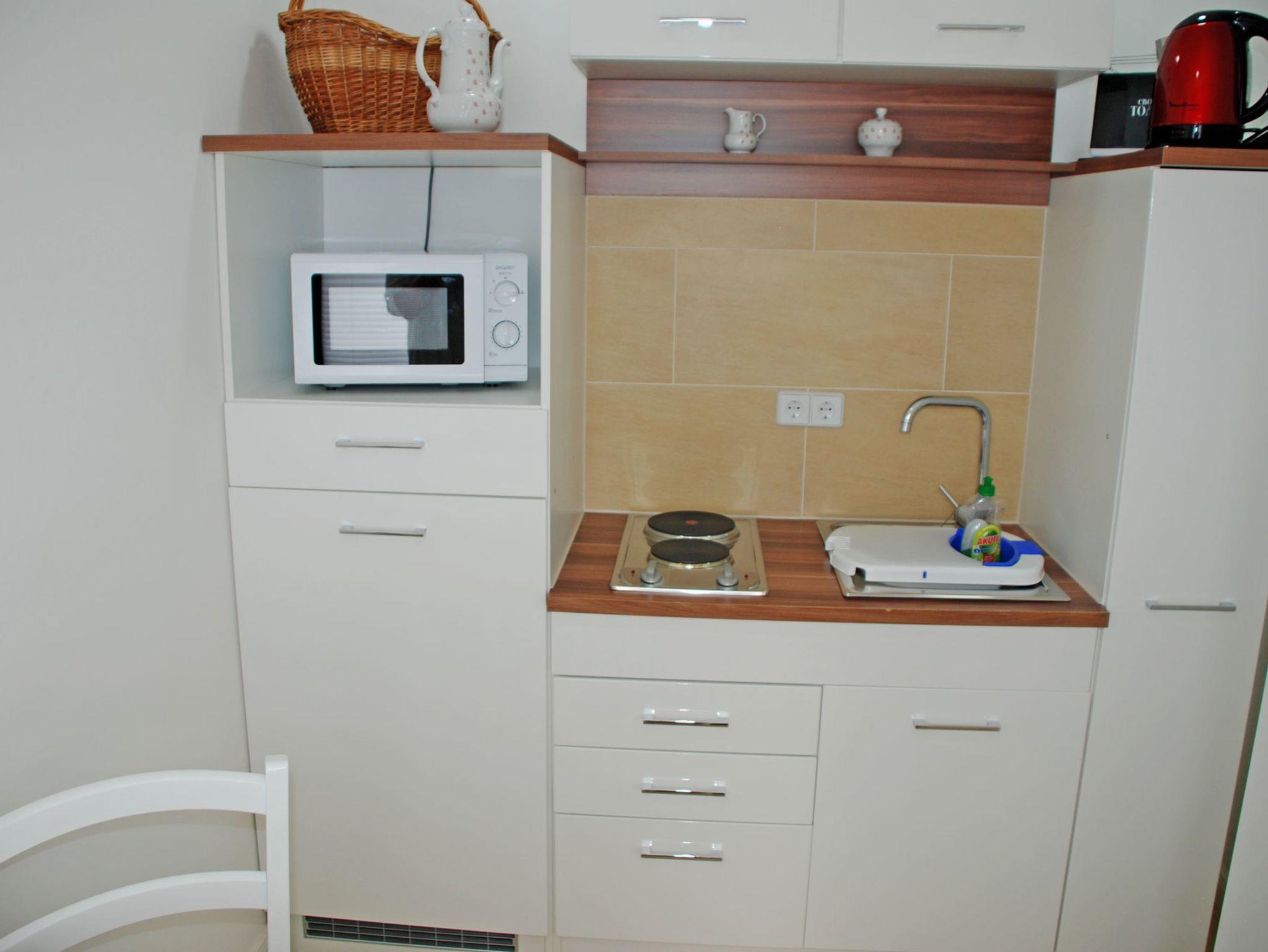 Im zweiten Schlafzimmer steht ein Etagenbett und ein Kleiderschrank. Die separate, kleine Küche ist mit einem 2-Plattenherd, Mikrowelle, Abzugshaube, Wasserkocher, Kaffeemaschine, Toaster und Kühlschrank komplett ausgestattet. Gegen einmaligen Aufpreis je Gast werden zu Ihrer Anreise Bettwäsche (Selbstbezug) und Handtücher bereitgelegt. Bitte dies vor Anreise schon bei einer Buchung mitbestellen!