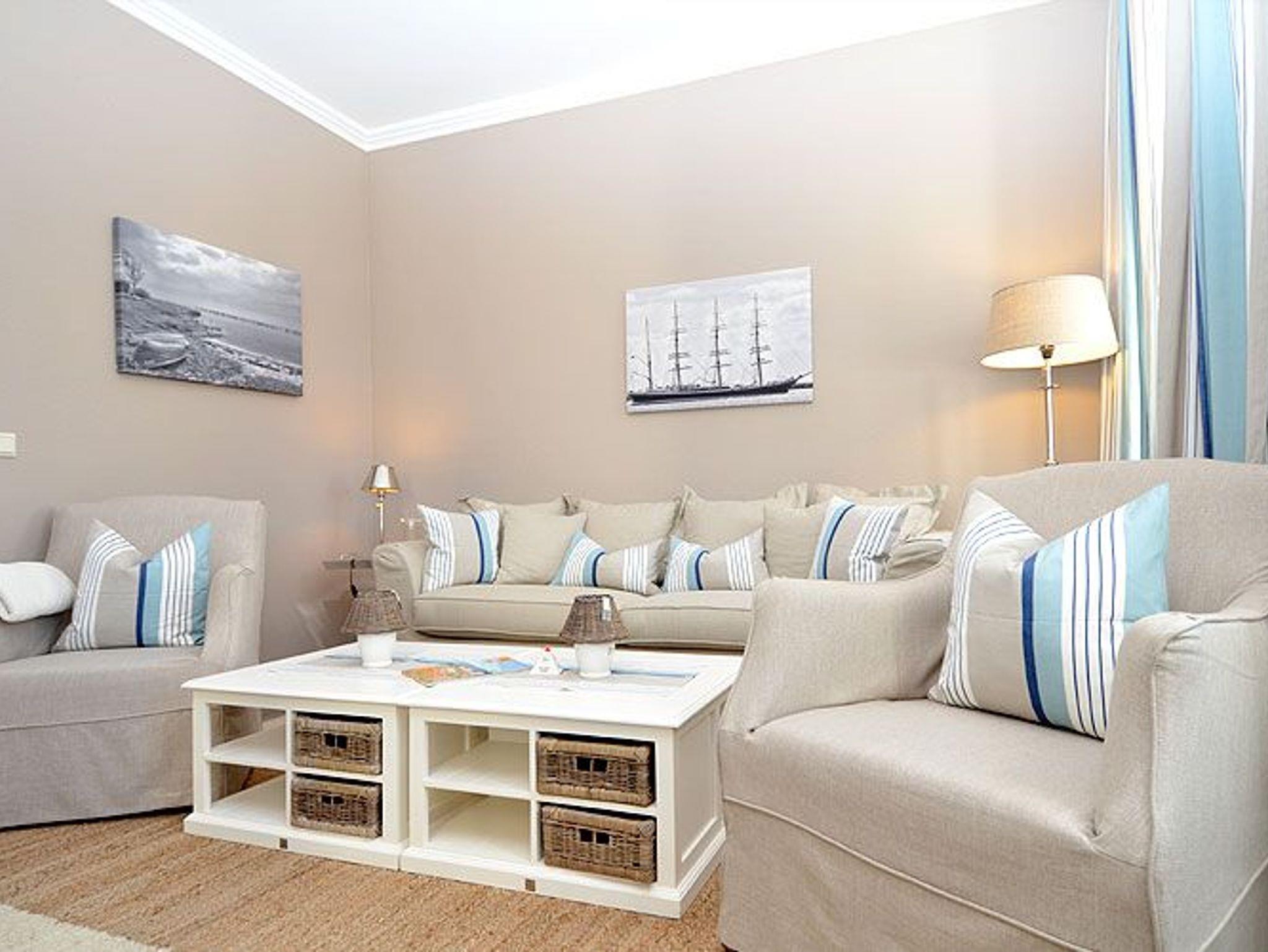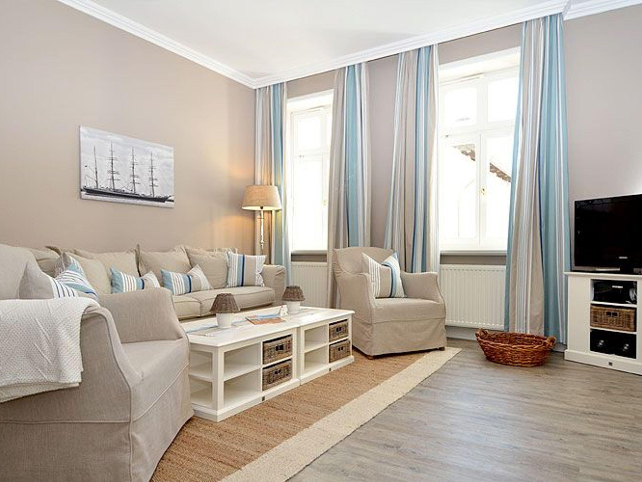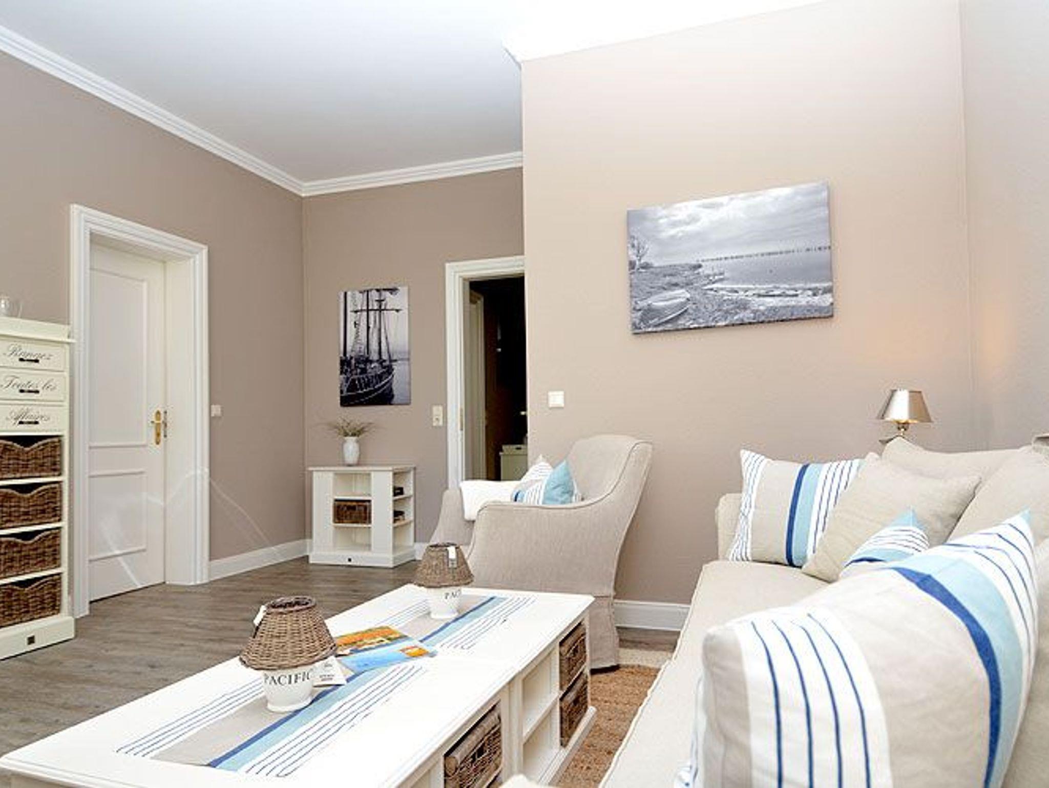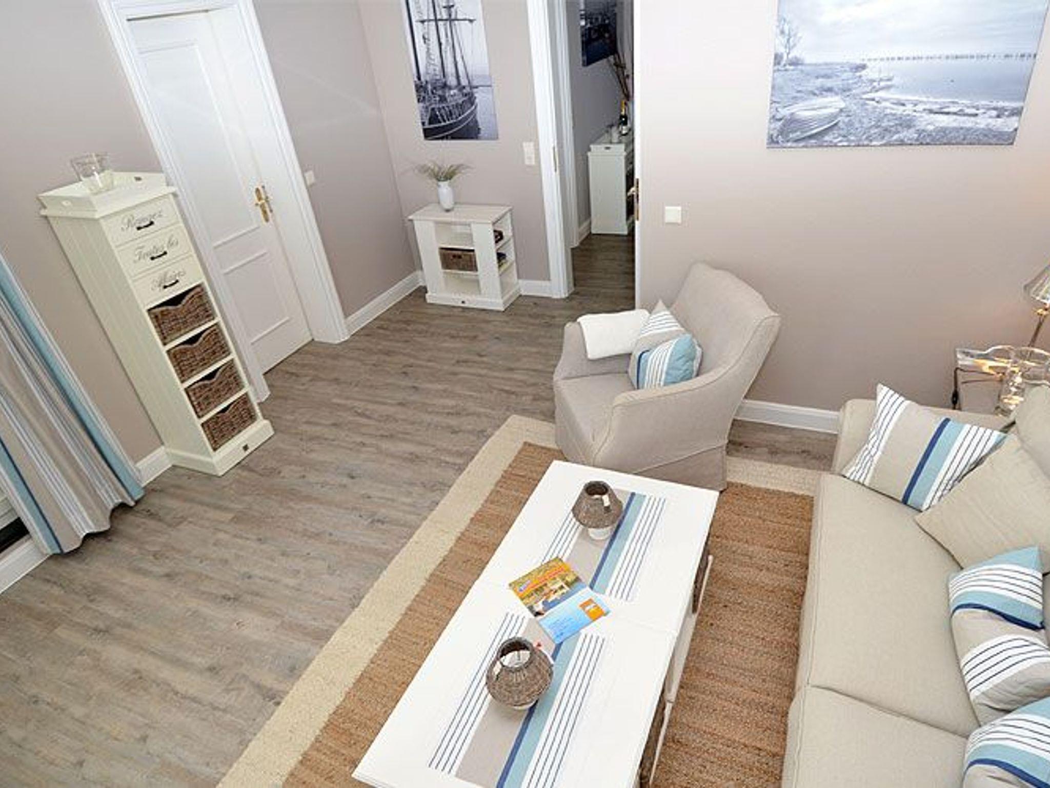 Dieses ca. 50 m² große und stilvoll eingerichtete 2-Raum-Appartement befindet sich im 1. Obergeschoss und hat zusätzlich einen 5 m² möblierten Balkon Richtung Westen, der vom Wohnzimmer aus zu betreten ist. Die wunderschönen Landhausmöbel, ausgesuchte Stoffe und die warmen Erdtöne schaffen mit den leicht maritimen Akzenten ein ganz einzigartiges Wohlfühlambiente.