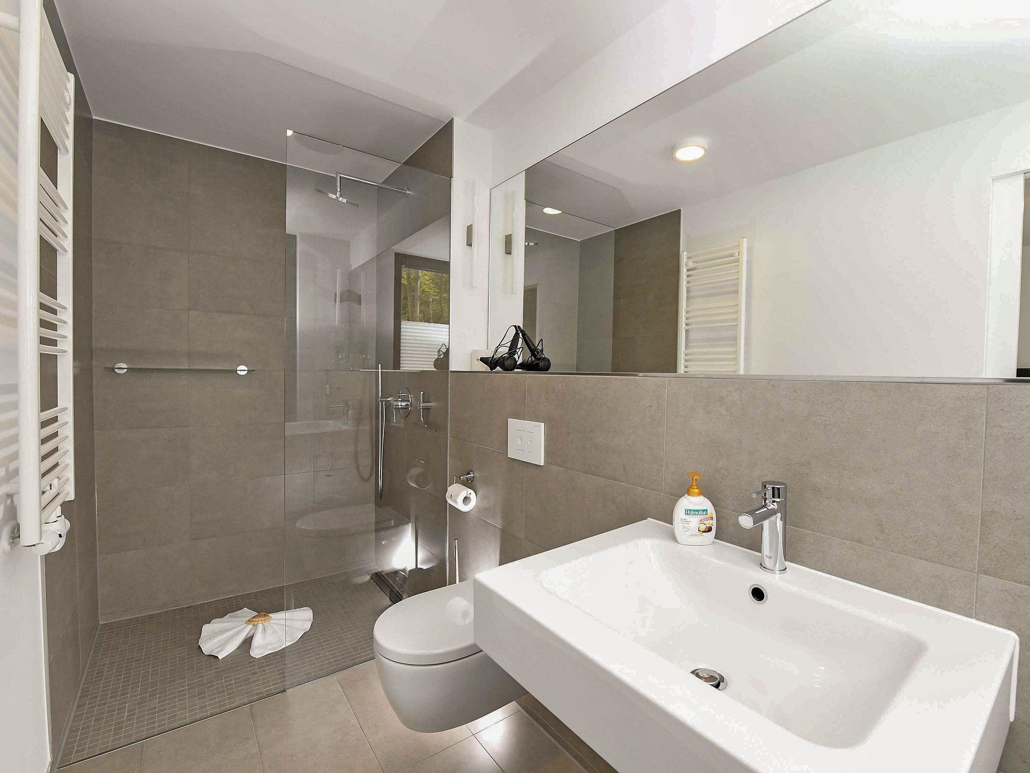 Zwei Schlafzimmer mit komfortablen Doppelbetten und jeweils eigenen Duschbädern bieten Rückzugsräume und Privatsphäre. Darüber hinaus steht Ihnen ein eigener Saunabereich mit Dusche und WC zur Verfügung.