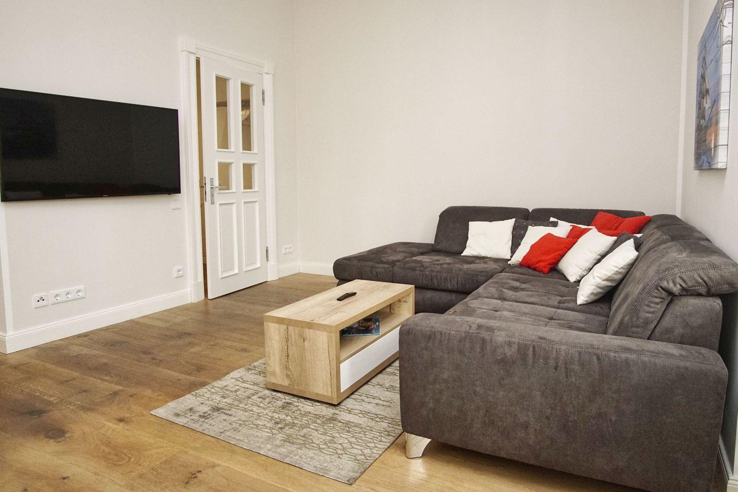 WOHNEN // Wohnraum mit Essbereich, Sitzgarnitur mit bequemer Schlafcouch, Kabel-TV, ++