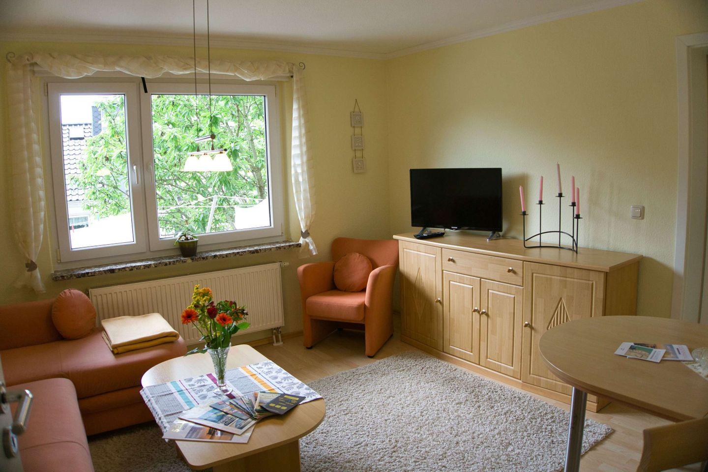 WOHNEN // Wohnraum, Essbereich, Couchgarnitur, Flachbild-TV, CD-Player ++