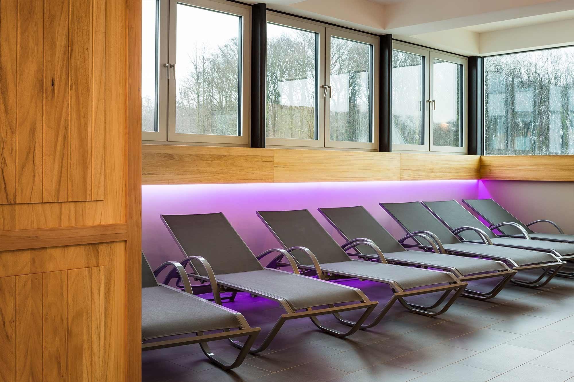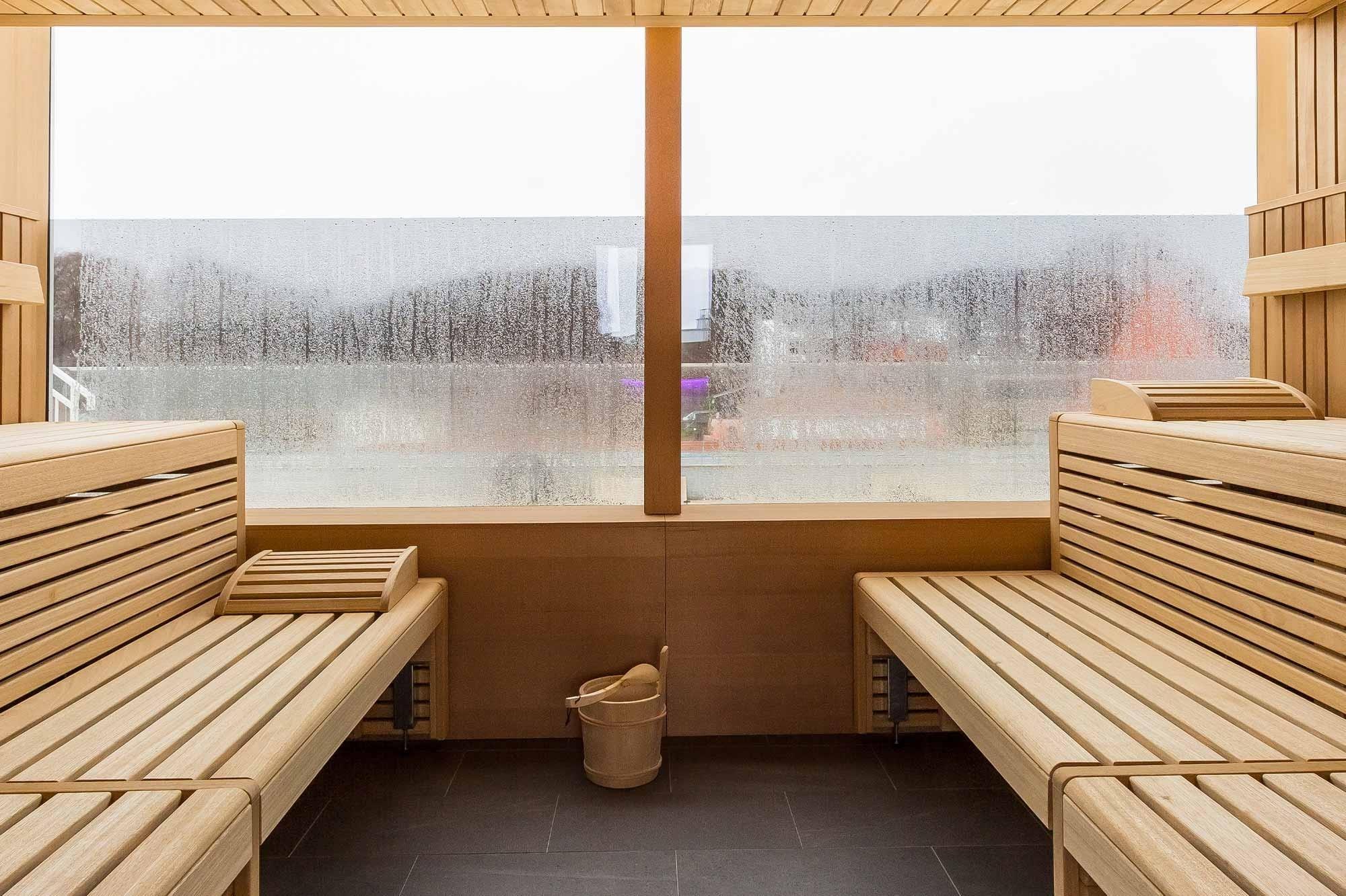 Als weiteres Highlight verfügt die Luxus Ferienwohnung über eine eigene Finnische Klafs- Sauna: Hier entspannen Sie nach einem aufregenden Tag am Strand und genießen selbst von hier den Blick auf den zugehörigen solarbeheizten Außenpool, der den Gästen der Villa Claire saisonal auf der windgeschützten Landseite zur Verfügung steht.
