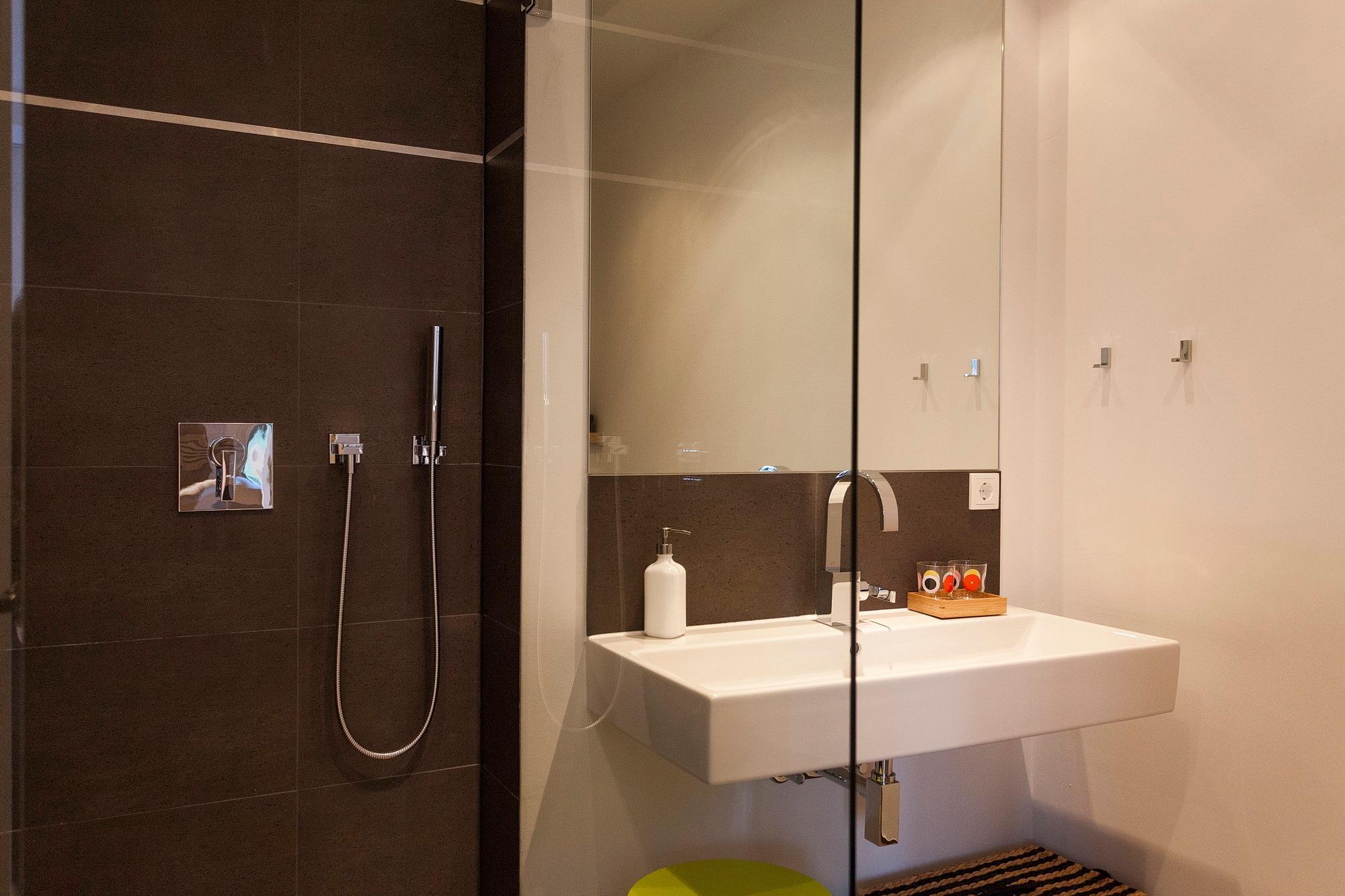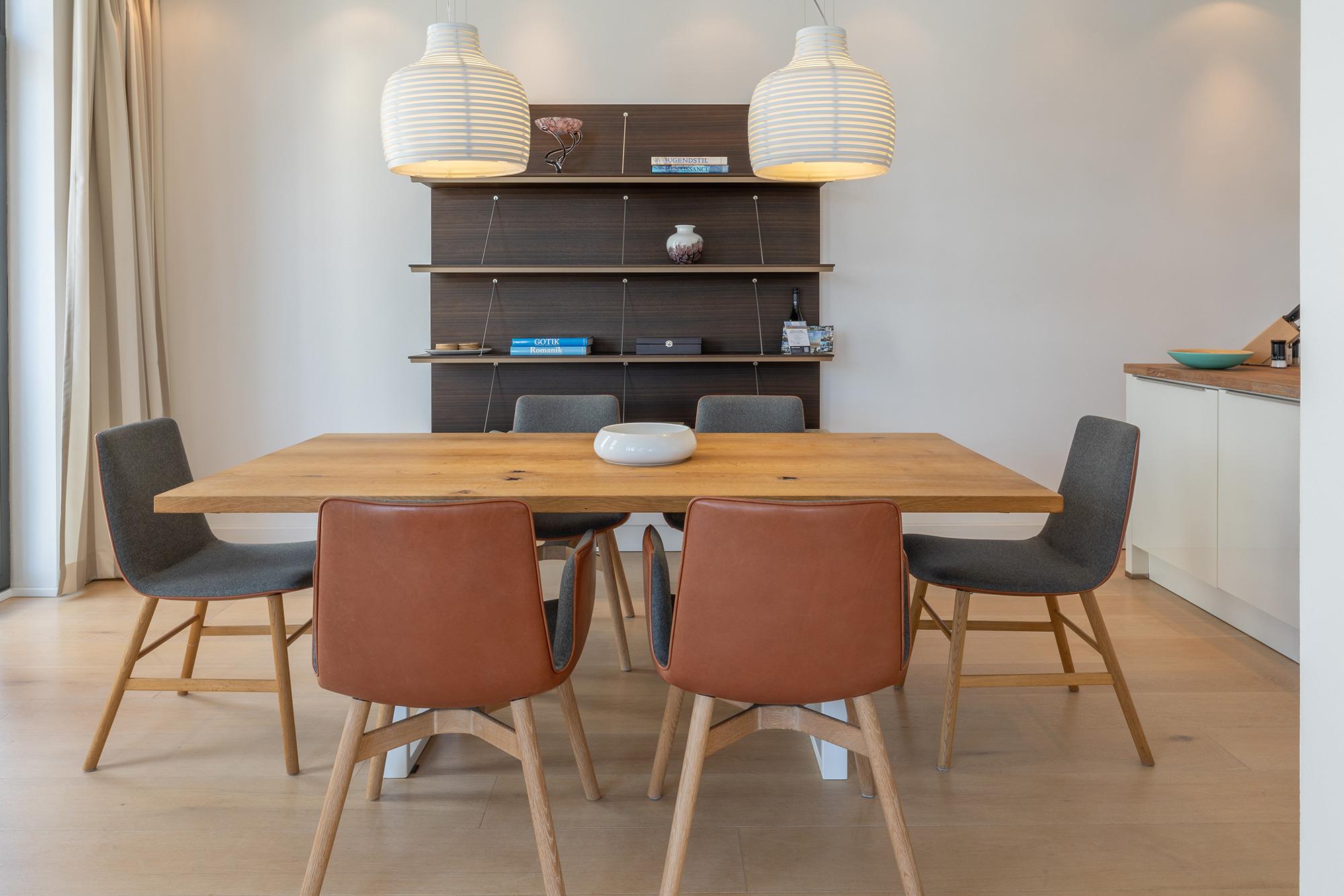 Alles wirkt sehr edel und gediegen, angefangen von den hellen Eichendielen über die Manufakturfliesen, Designermöbel und Leuchten bis hin zu den bodentiefen Fenstern - dem stimmigen Konzept aus Licht, Farbe und Formen.