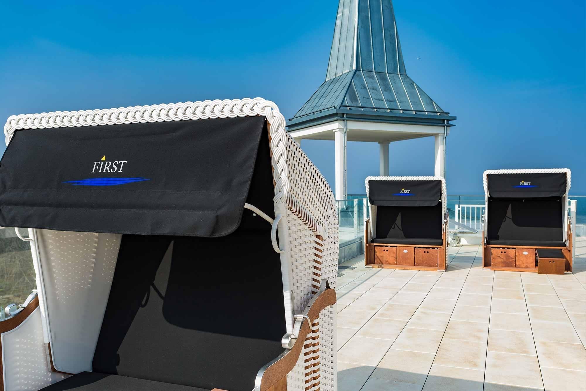 Jetzt mit Zugang zur Wellnessoase im Dachgeschoss der Villa First , Infinity-Innenpool mit 28 grad Wassertemperatur und atemberaubende Aussicht auf die Ostsee, 2 Saunen mit Blick auf die Kreidefelsen und Zugang zu der Dachterrasse mit Strandkörben (separat zubuchbar).
