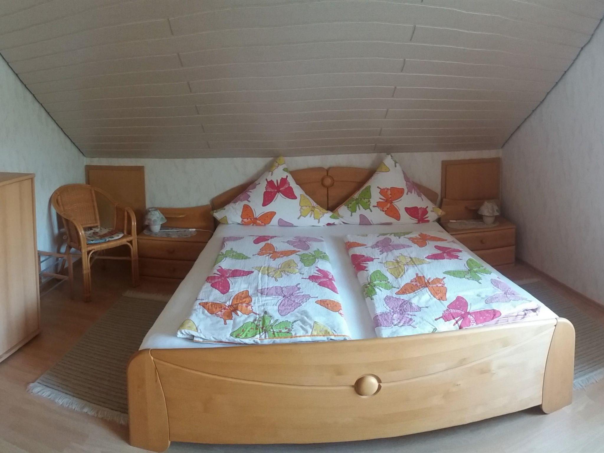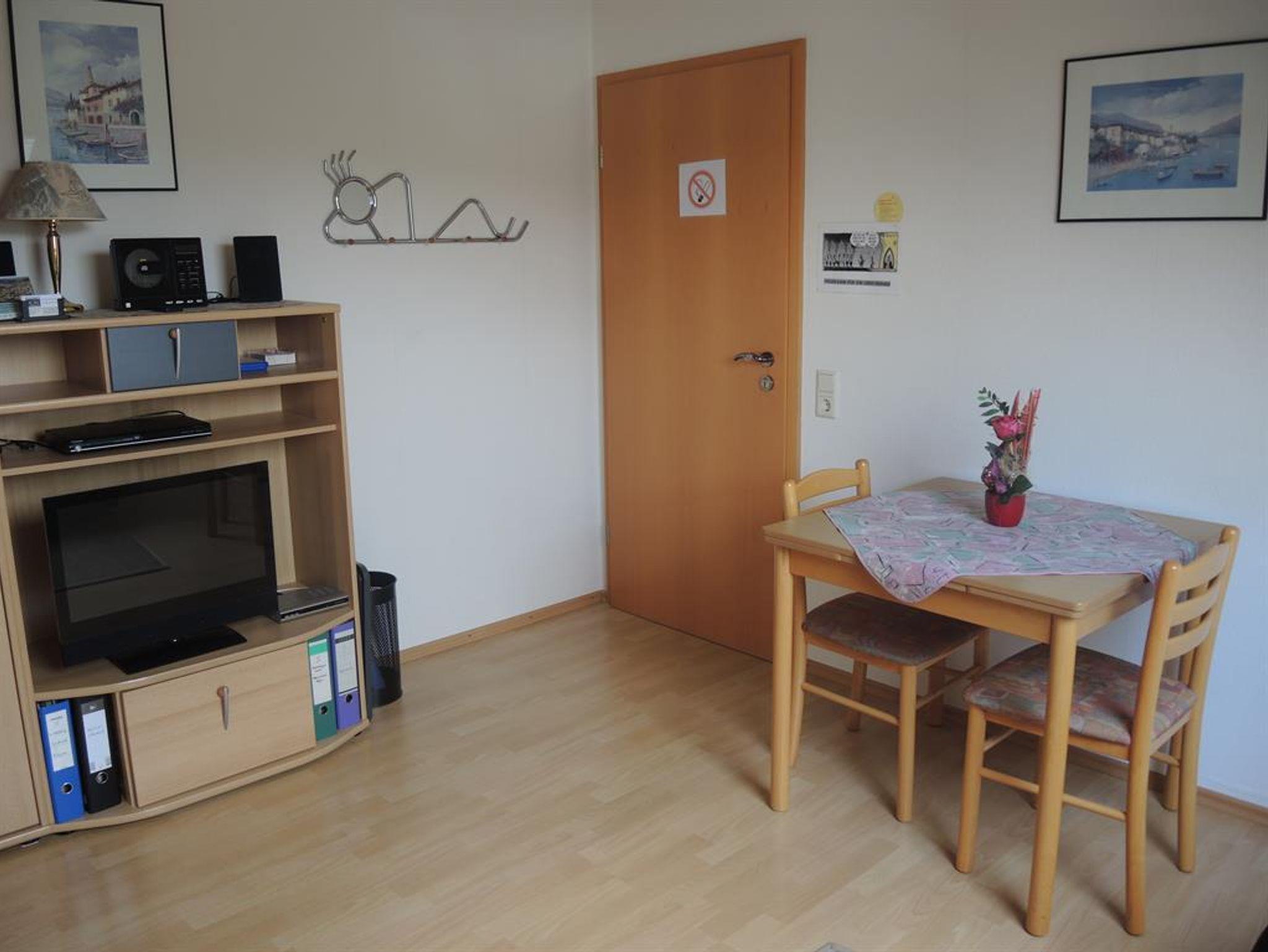 Komfortable Nichtraucher-Ferienwohnung für 1-2 Personen, ca. 40 qm, sep. Schlafzimmer, Wohnzimmer mit Essecke und integrierter Küchenzeile, Bad mit Dusche und WC, PKW-Parkplatz und Fahrradgarage vorhanden, Liegewiese mit Sitzplatz im Garten. Ideal für Rad- und Wanderurlaub im Dreiländereck.