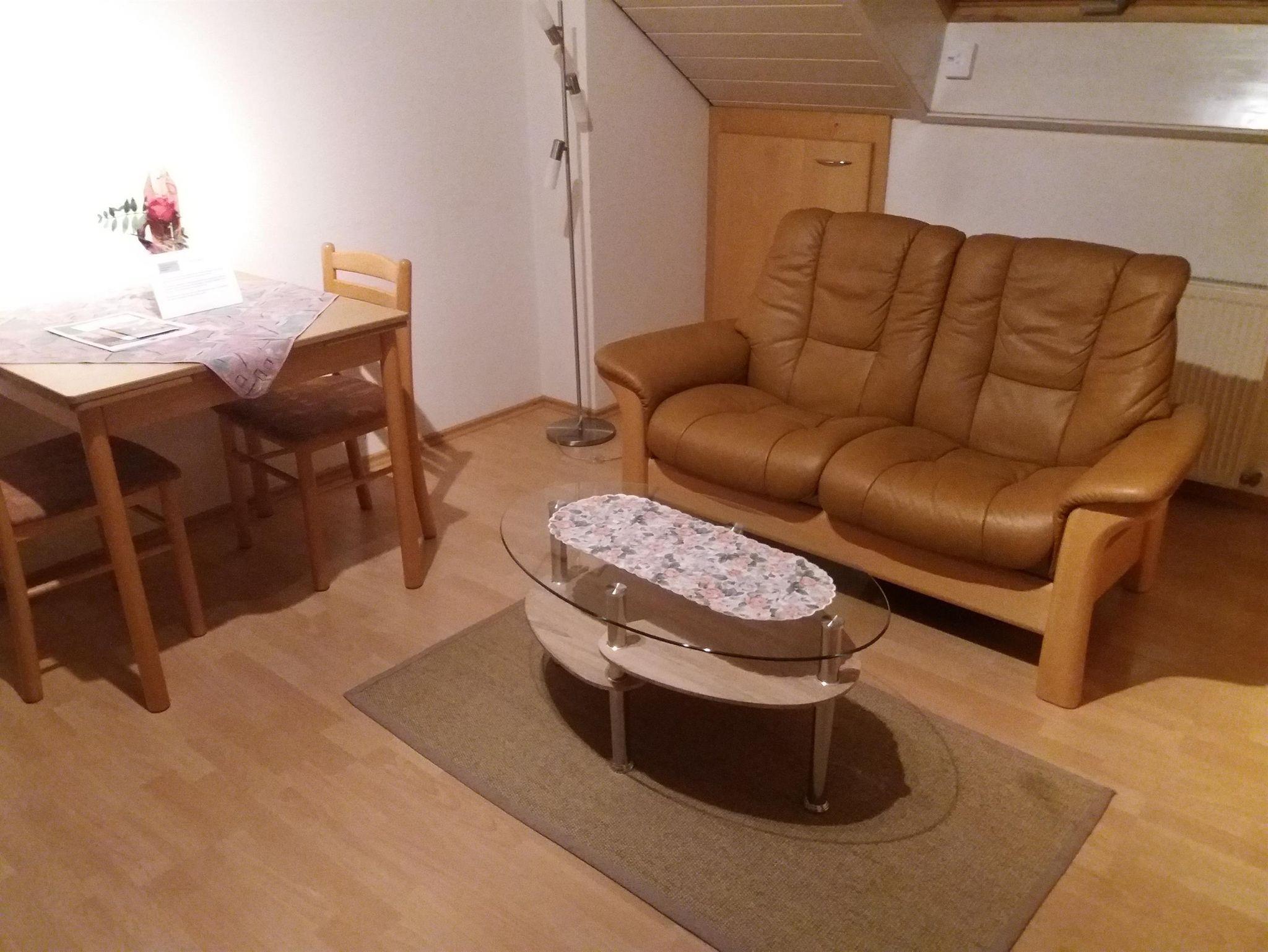 Komfortable Ferienwohnung, 40 qm, 1-2 Personen, 1 sep. Schlafzimmer mit Doppelbett, Wohnzimmer mit komplett eingerichteter Küchenzeile (Backofen, Mikrowelle, Wasserkocher, Toaster), Sat-TV und Radio, WLAN-Anschluss, Bad mit Dusche und WC.