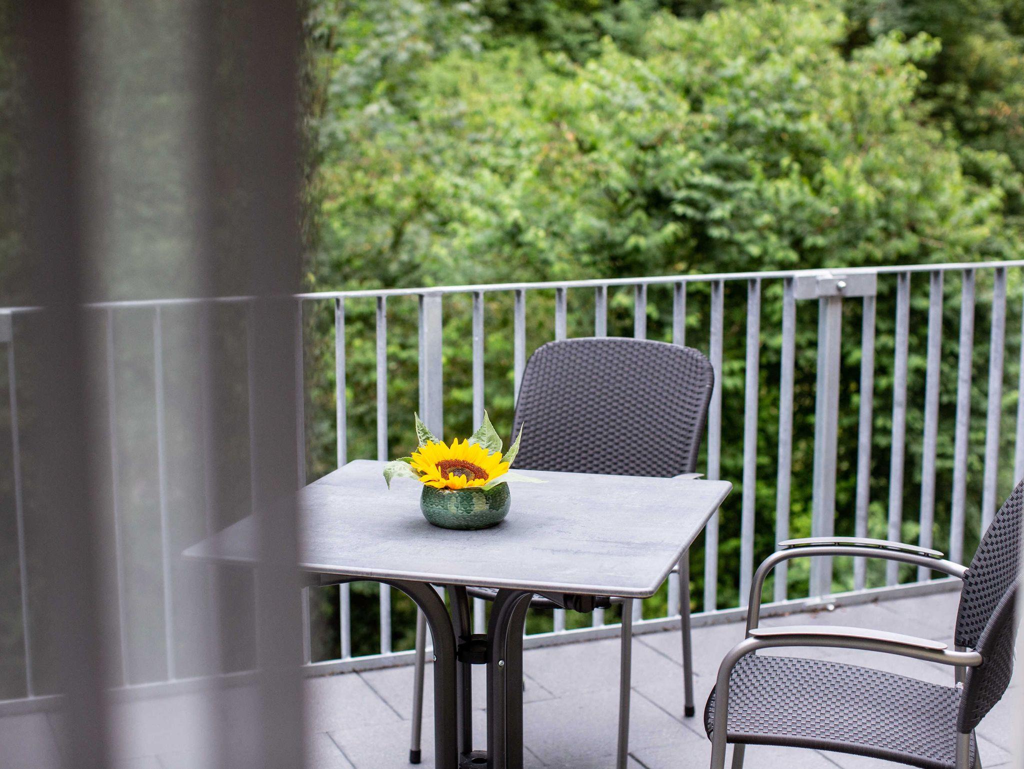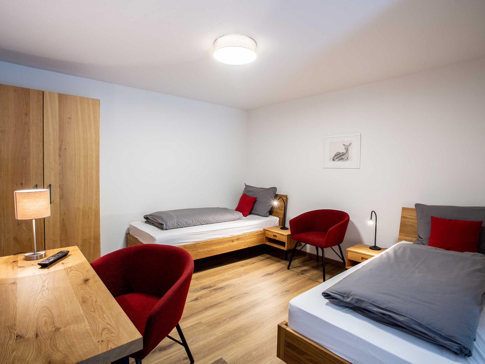 Nussbaum ist eine schöne Wohnung mit Balkon. Die zwei Einzelbetten können auf Wunsch auch zusammengeschoben werden.