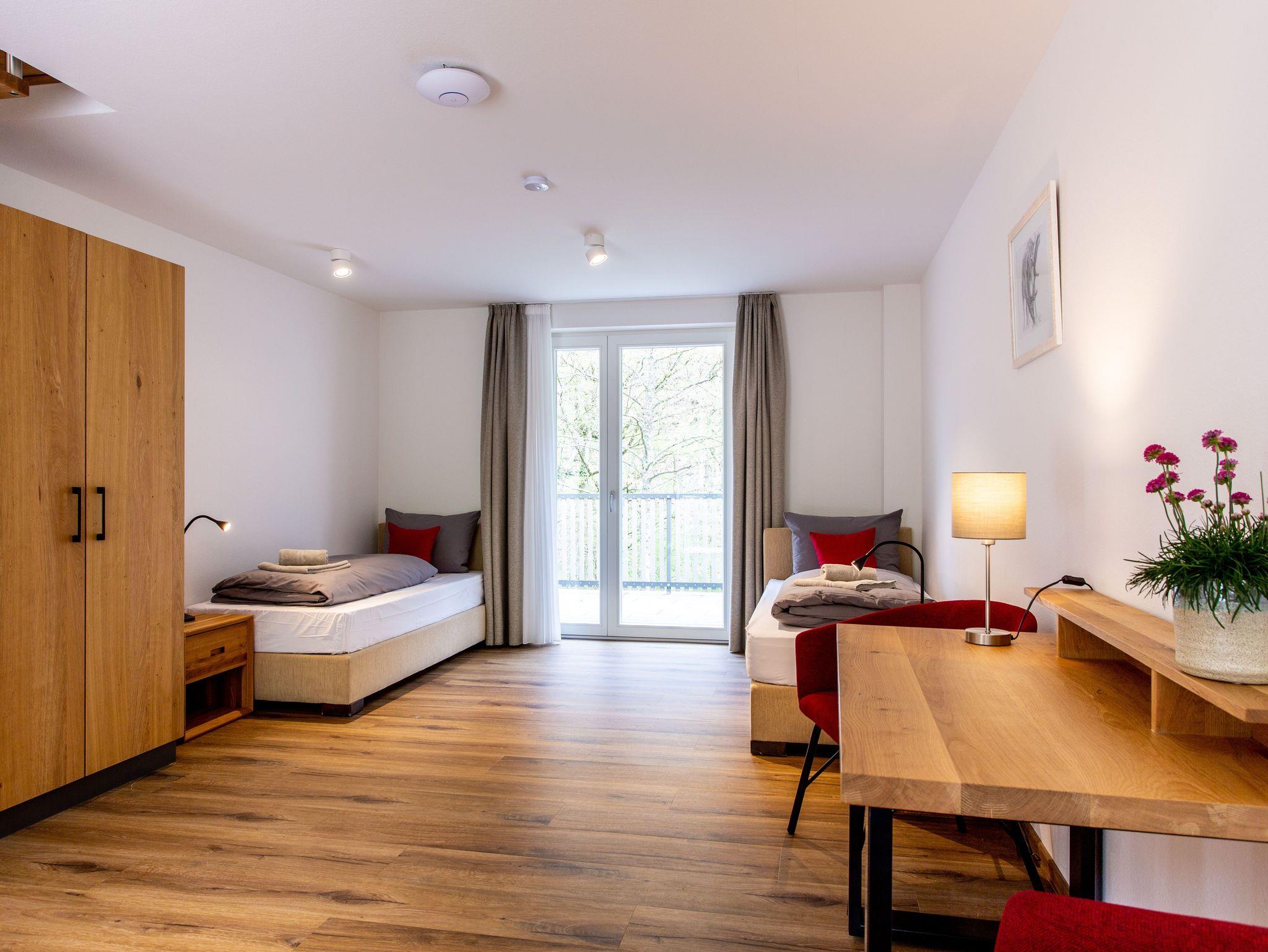 Die Wohnungen befinden sich in zwei großen Ferienhäusern mit Blick auf den Wald. Ob eine Terrasse, einen Balkon, einen separaten Eingang, den Charm im Dachgeschoss oder eines Maisonette-Apartments - jede der Wohnungen hat ihr eigenes besonderes Kennzeichen und somit ist sicherlich für jeden Geschmack etwas dabei!