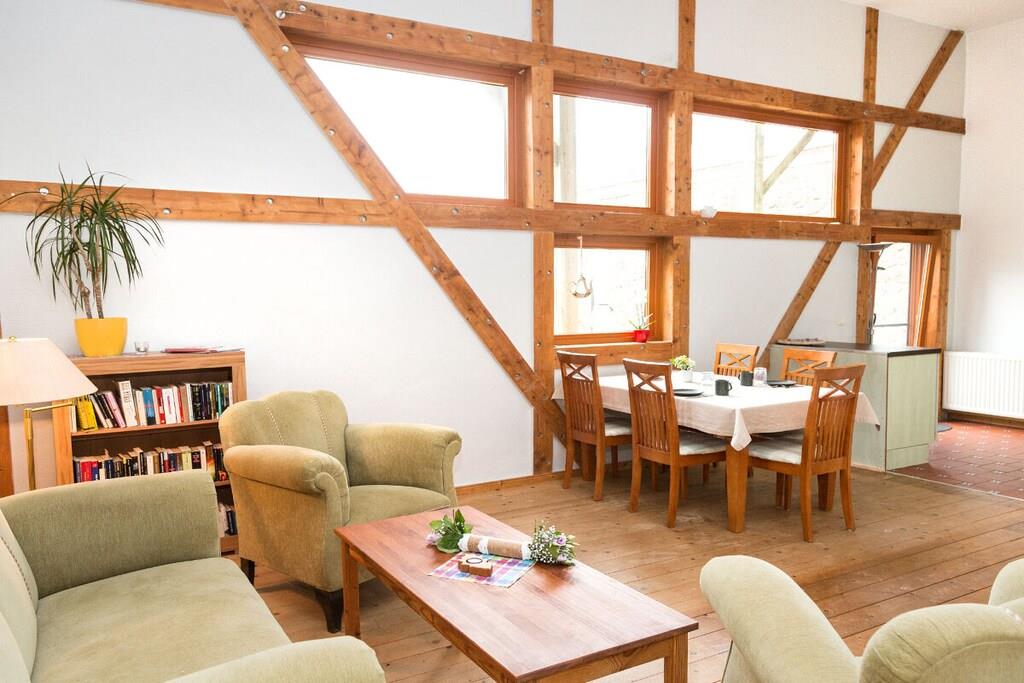 Spacious accommodation in a fieldstone barn for family reunions, class reunions, etc. In our "Tenne" celebrations for up to 70 people are possible.