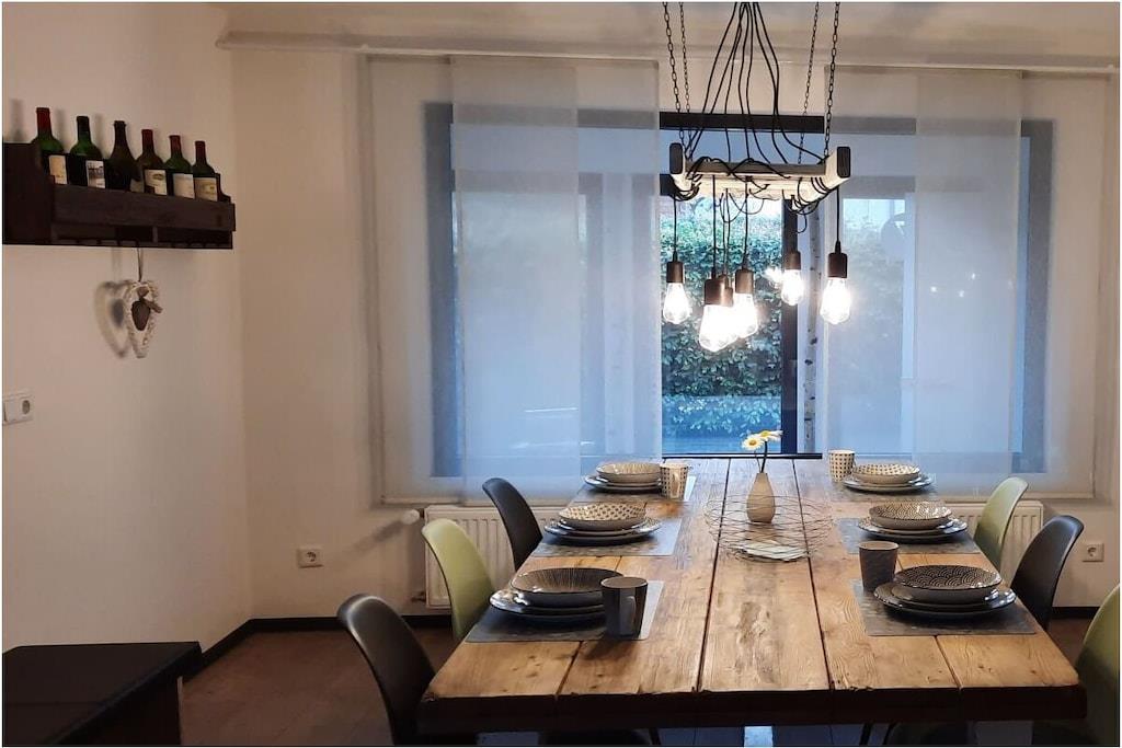 Du kan forvente 2 soveværelser med dobbeltsenge, stor spisestue med åbent køkken og 2 åbne stuer med sovesofa og satellit-tv, badeværelse med bruser og toilet, høj stol, rejseseng, stor sydvestlig altan med møbler og garage samt som WiFi fordelt på ca 120kvm boligareal. Foran huset er der en gårdhave med siddepladser, der inviterer til at blive hængende. Bag huset er der en stor, ikke helt indhegnet have. Du kan også spille her! MAKSIMAL BElægning: 4 voksne + 1 barn Vigtigt for alle vinelskere: Den 1. januar 2023 åbnede vi en lille - men hyggelig - vinbutik lige ved huset! Der kan du købe vin, smage den og også købe vingaver efter aftale.