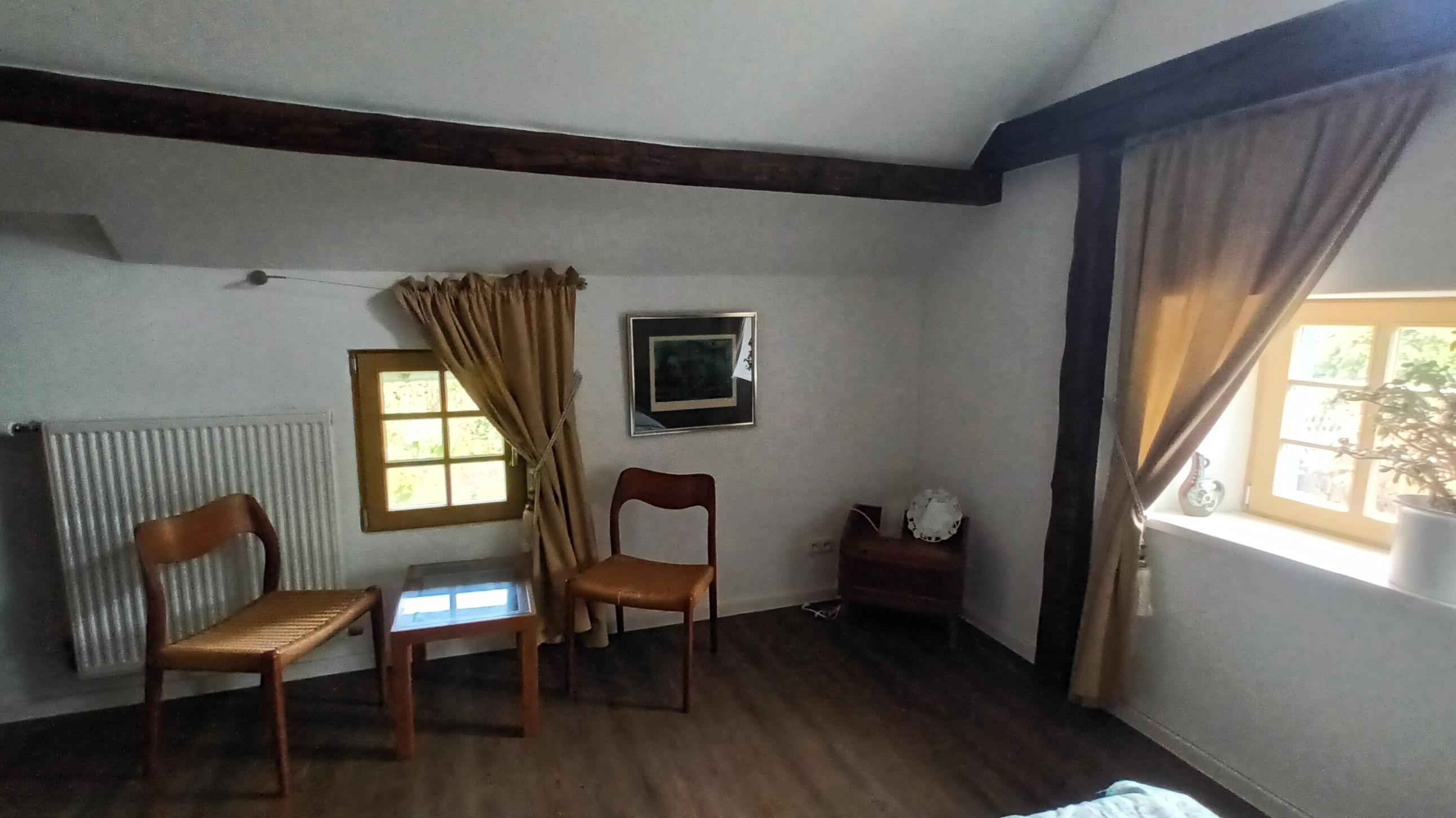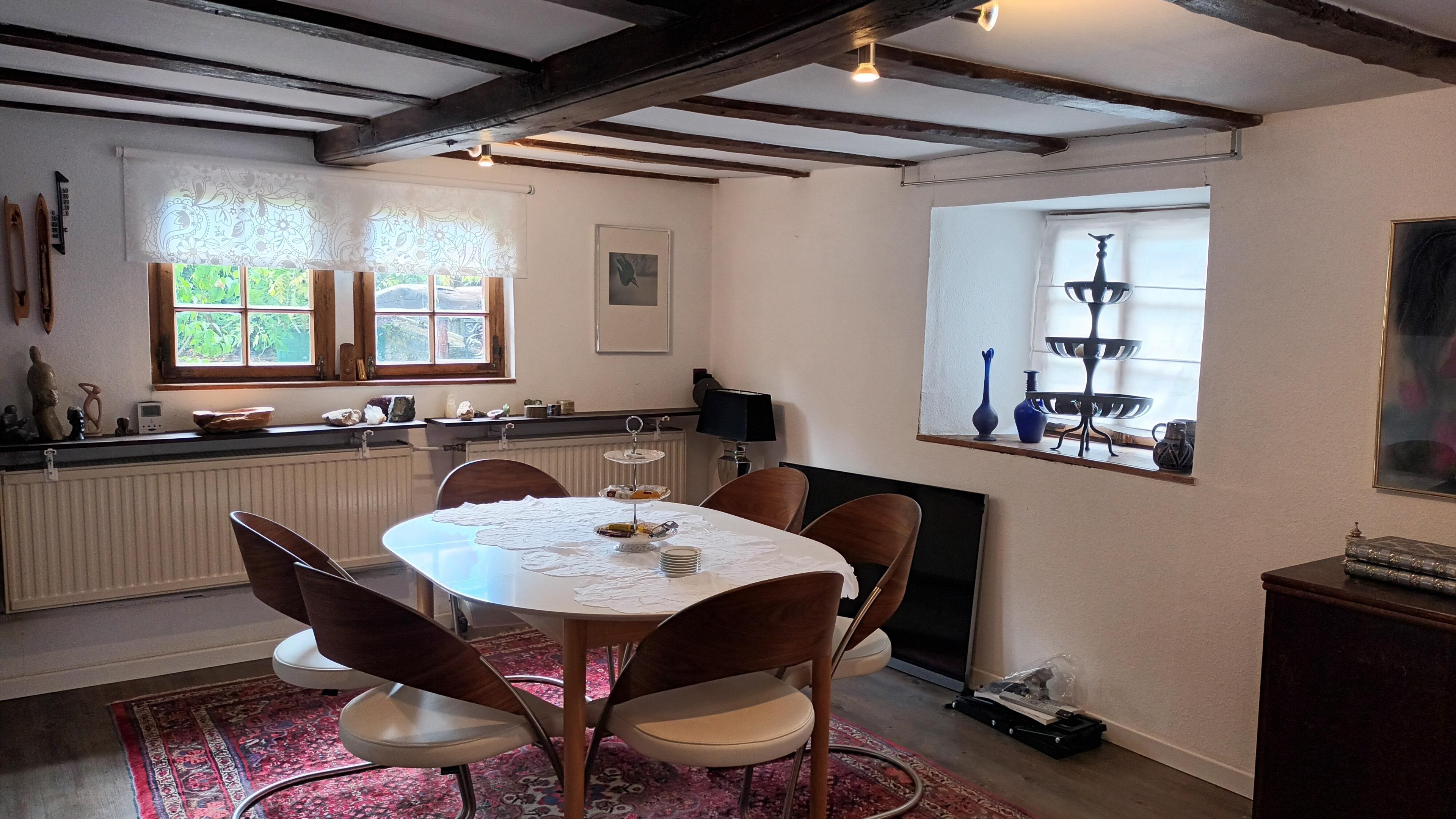 Ein eigener Stellplatz sowie ein separater Außenbereich mit Sitzgelegenheit laden zum Entspannen ein. Die Wohnung hat einen eigenen Eingang und ist somit unabhängig und privat. Viele Elemente sind im Original erhalten, verleihen dem Haus seinen historischen Charme und Charakter.