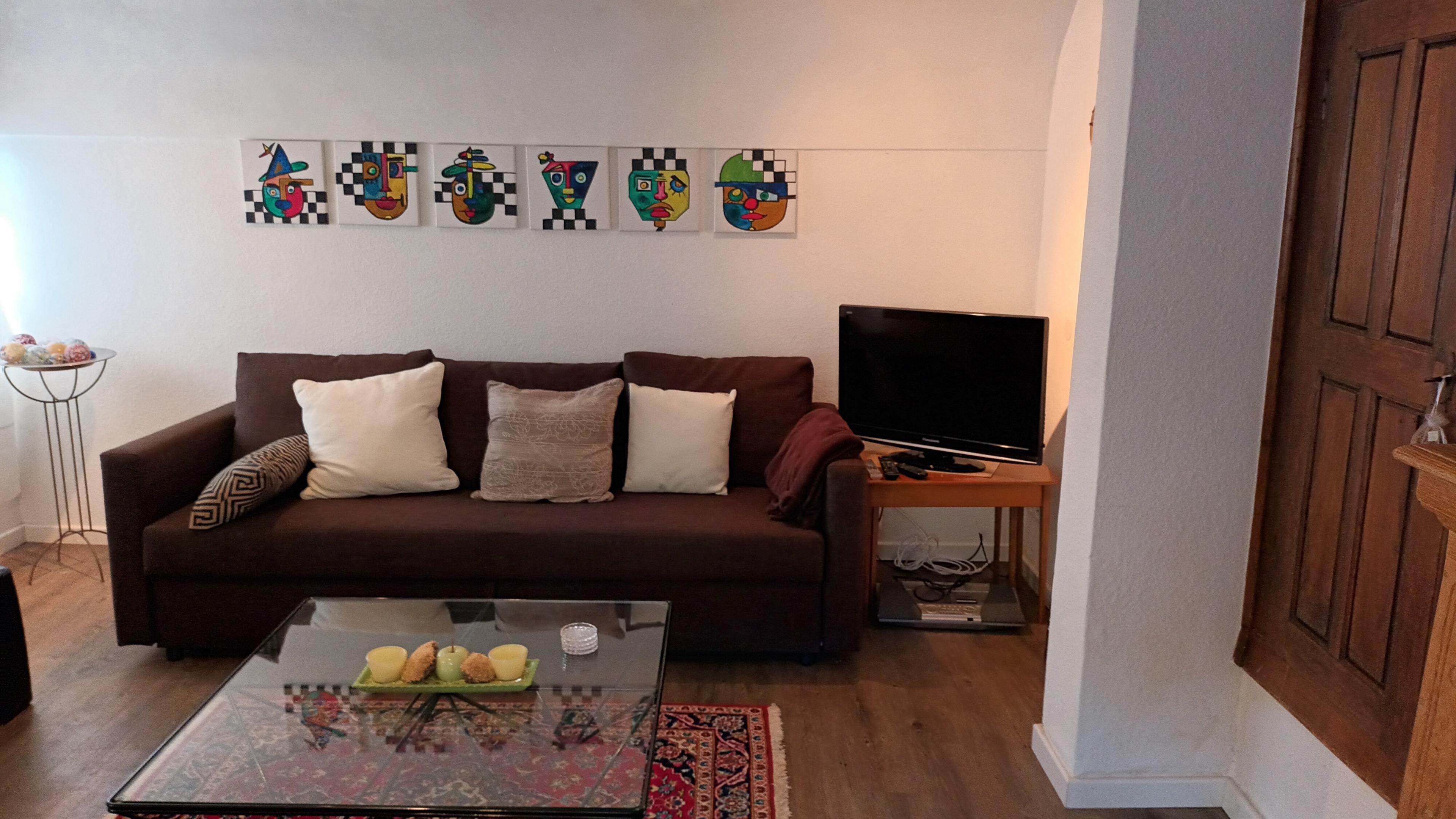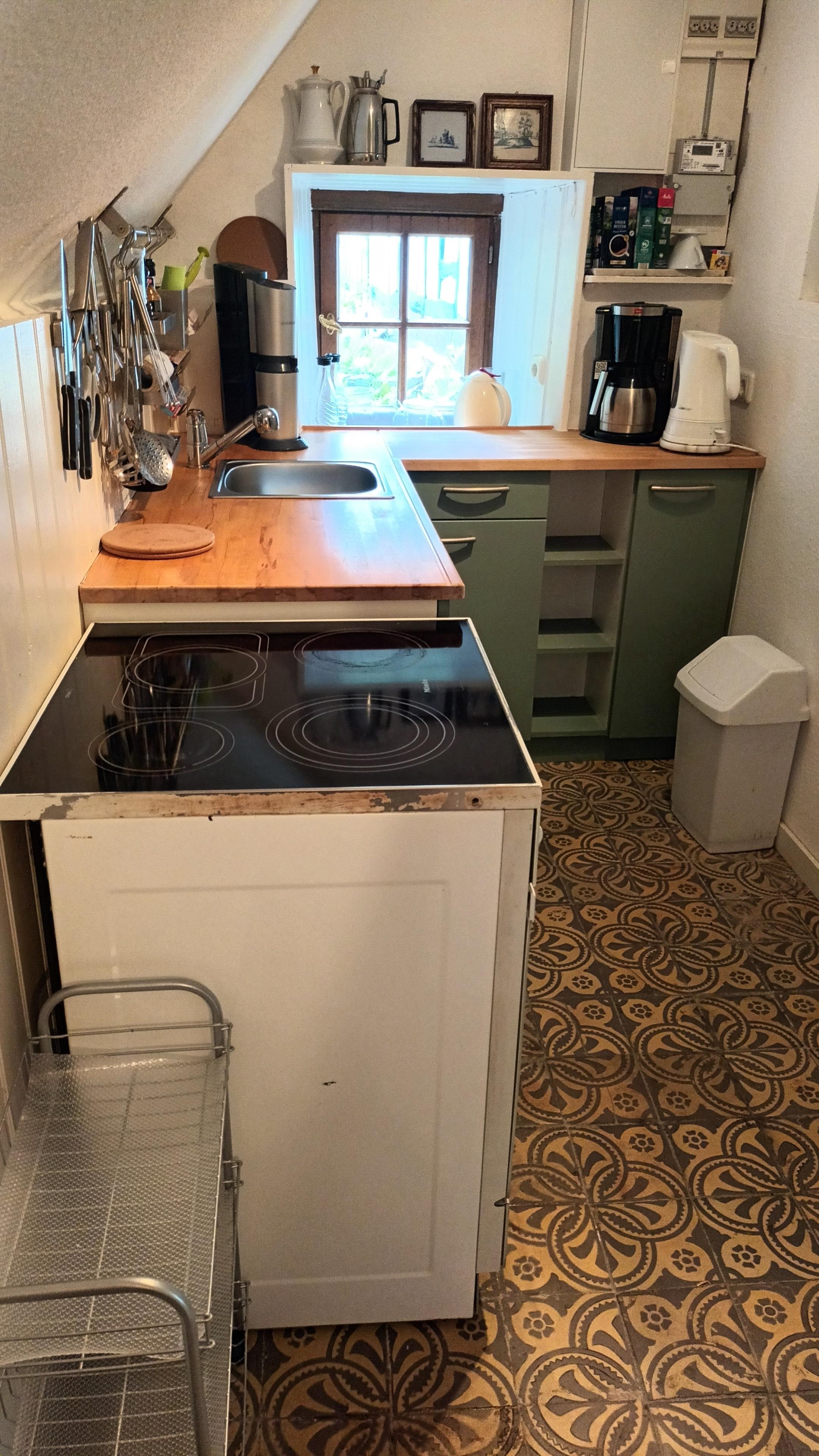 Die Wohnung befindet sich im Erdgeschoss und verfügt über eine gemütliche Wohndiele, ein Wohnzimmer sowie eine komplett ausgestattete kleine Küche - perfekt für Selbstversorger. Über eine schmale Treppe gelangen Sie ins Obergeschoss, das zwei ruhige Schlafzimmer zur Straße und zum Innenhof hin bietet. Das große Schlafzimmer mit Doppelbett ist mit einem separaten Duschbad ausgestattet, während das zweite Schlafzimmer ein Badezimmer mit Badewanne hat.