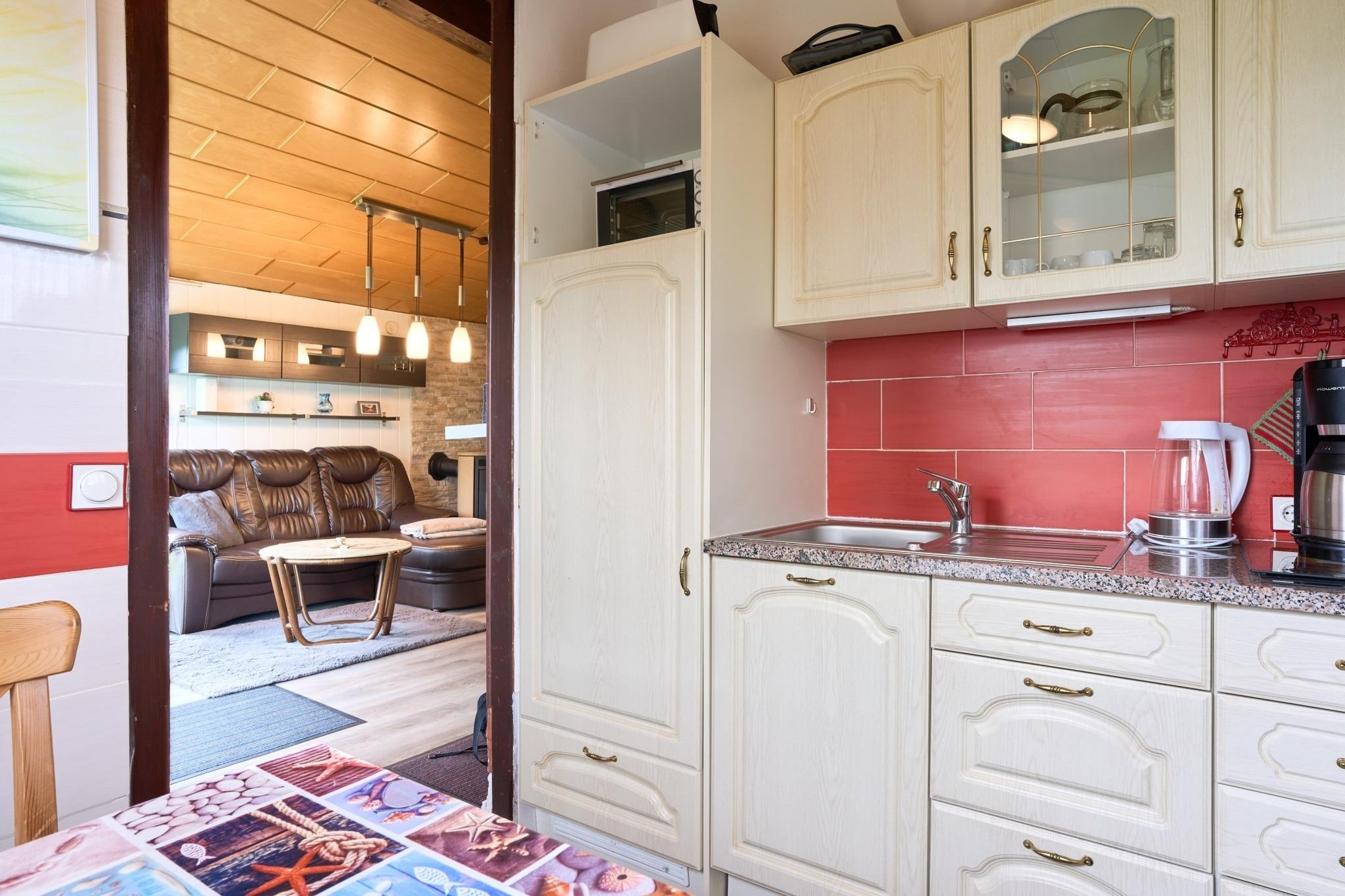 Der helle Wohnbereich mit offener Küche ist das Herz des Hauses. Hier können Sie gemütlich frühstücken, zusammen kochen