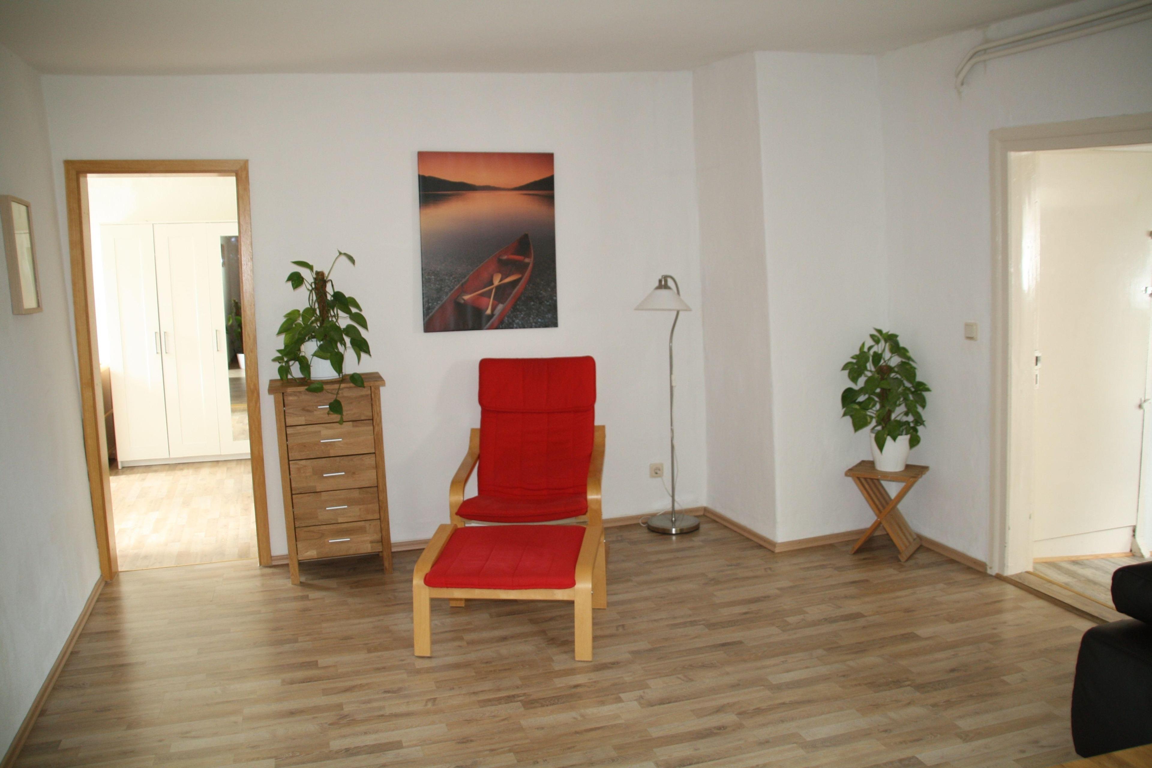 Über den Flur gelangen Sie in das große Wohnzimmer mit Farb-TV.Vom Wohnzimmer kommen Sie sowohl in die Küche als auch in das Schalfzimmer.